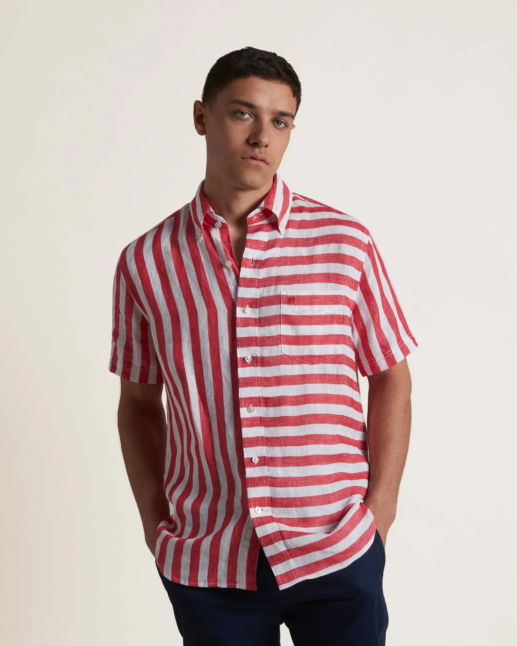 Be the first to review “B By Ben Sherman Candy Stripe Linen Short Sleeve Shirt – Red/Ecru” Cancel reply