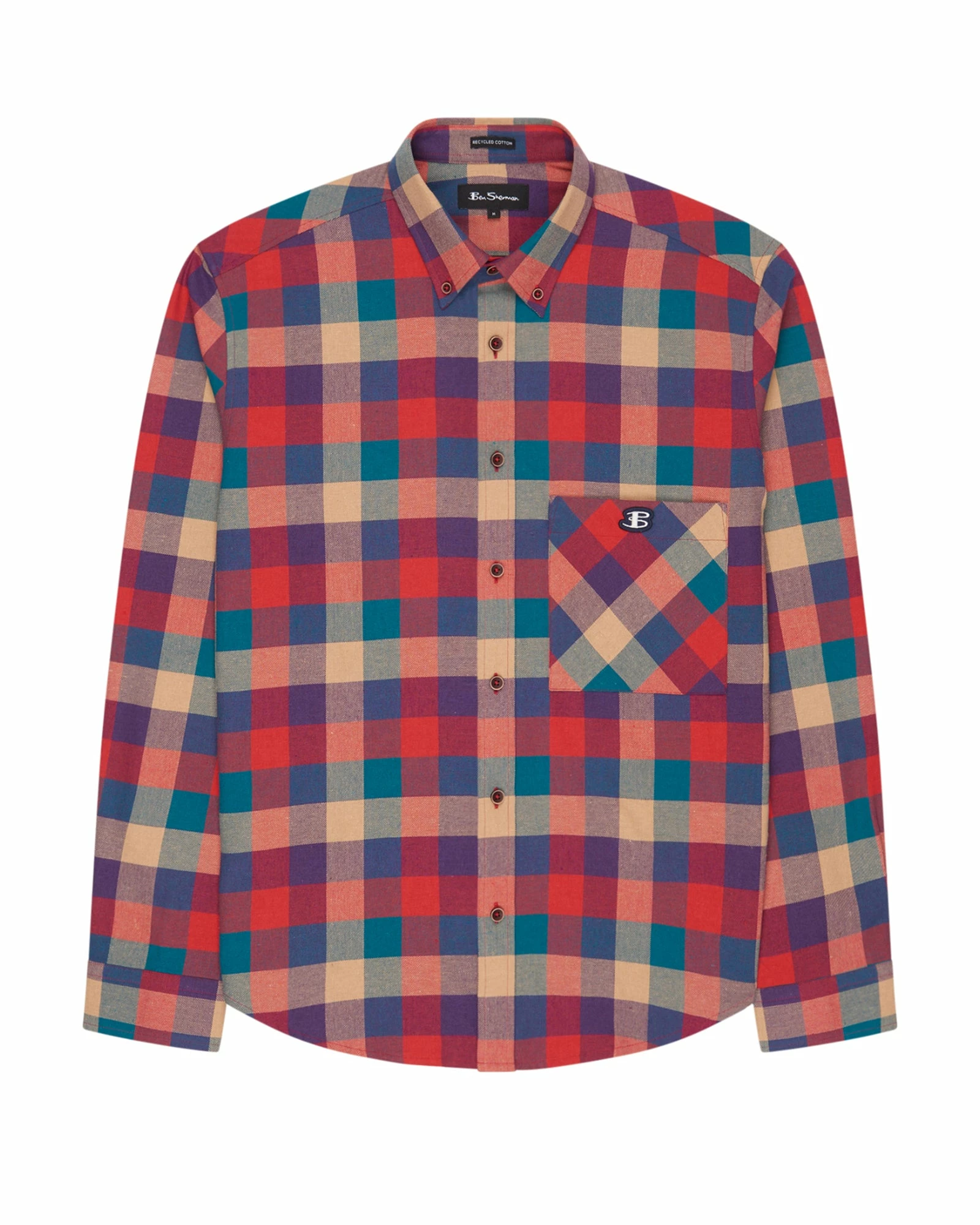 From the “B by Ben Sherman” range, this relaxed fit check shirt is made with recycled cotton and polyester fibers and features long sleeves, a classic two-finger button-down collar and finished with the B logo on the chest.