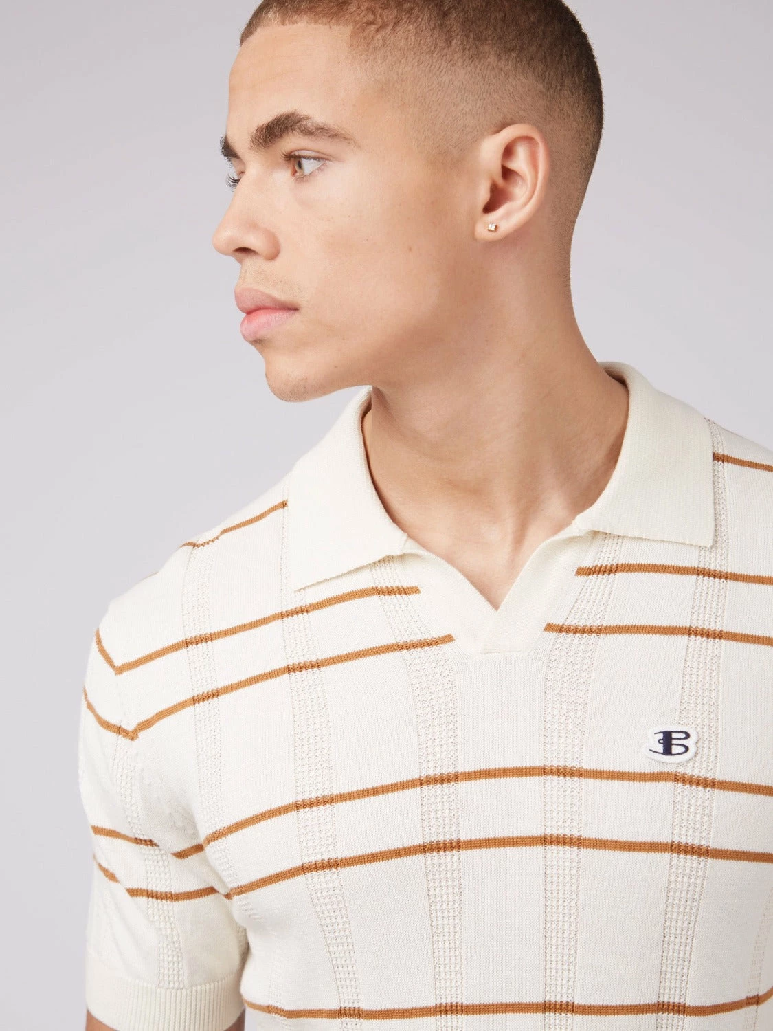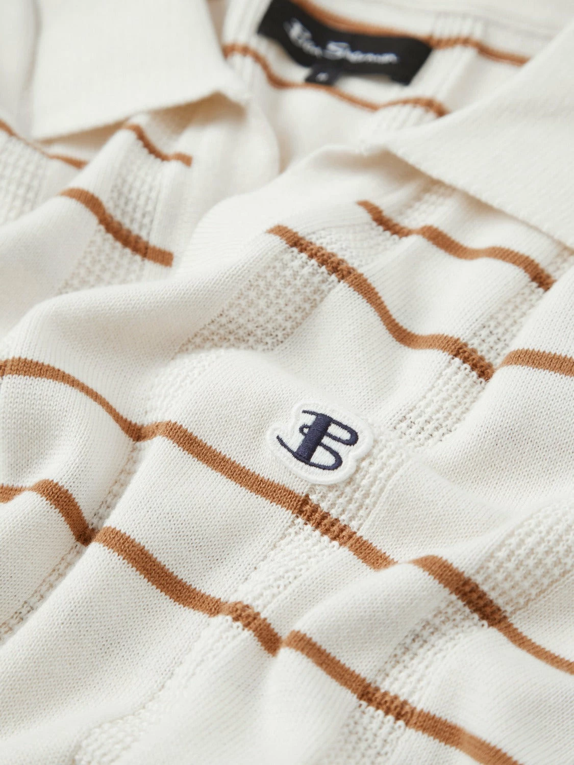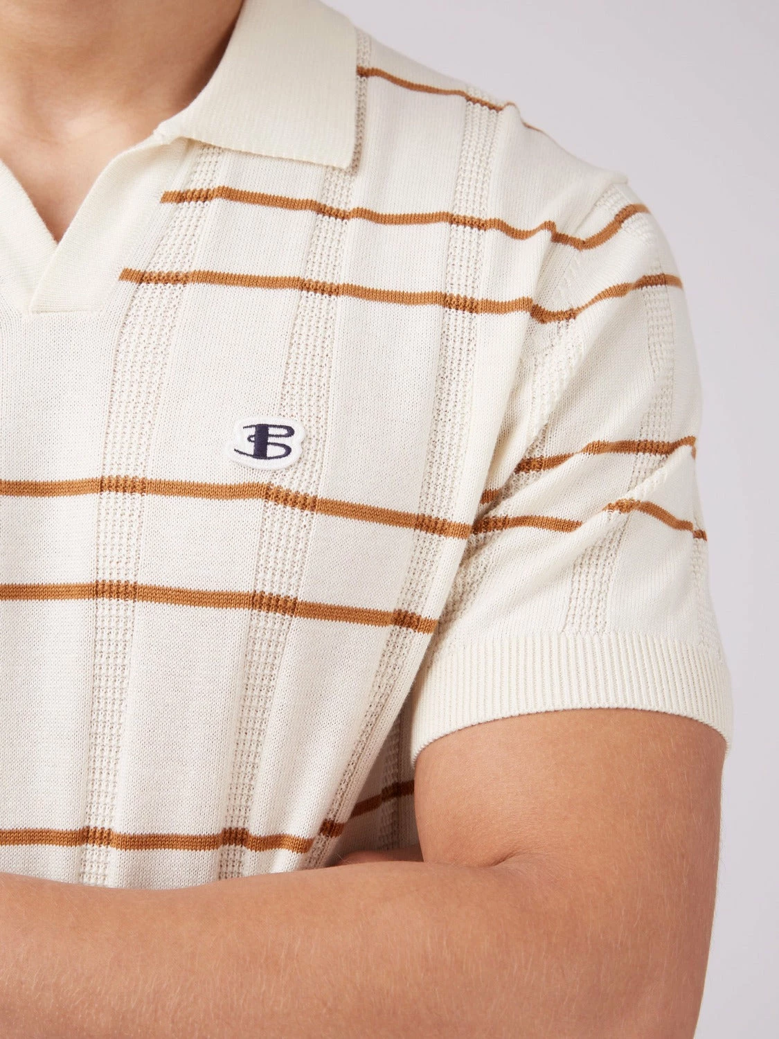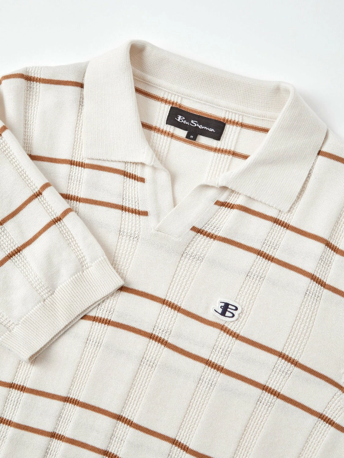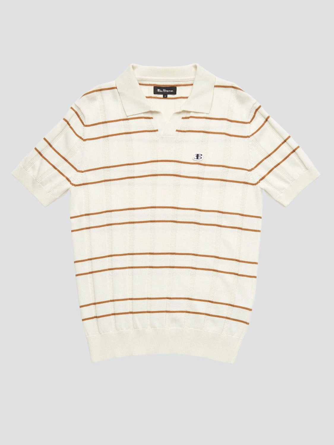 A sleeve short knitted polo designed with an open neckline in a relaxed fit. With an all over open texture, this polo is perfect for Spring/Summer. As part of our “B by Ben Sherman” range, this polo is branded with an embroidered B badge to the chest.