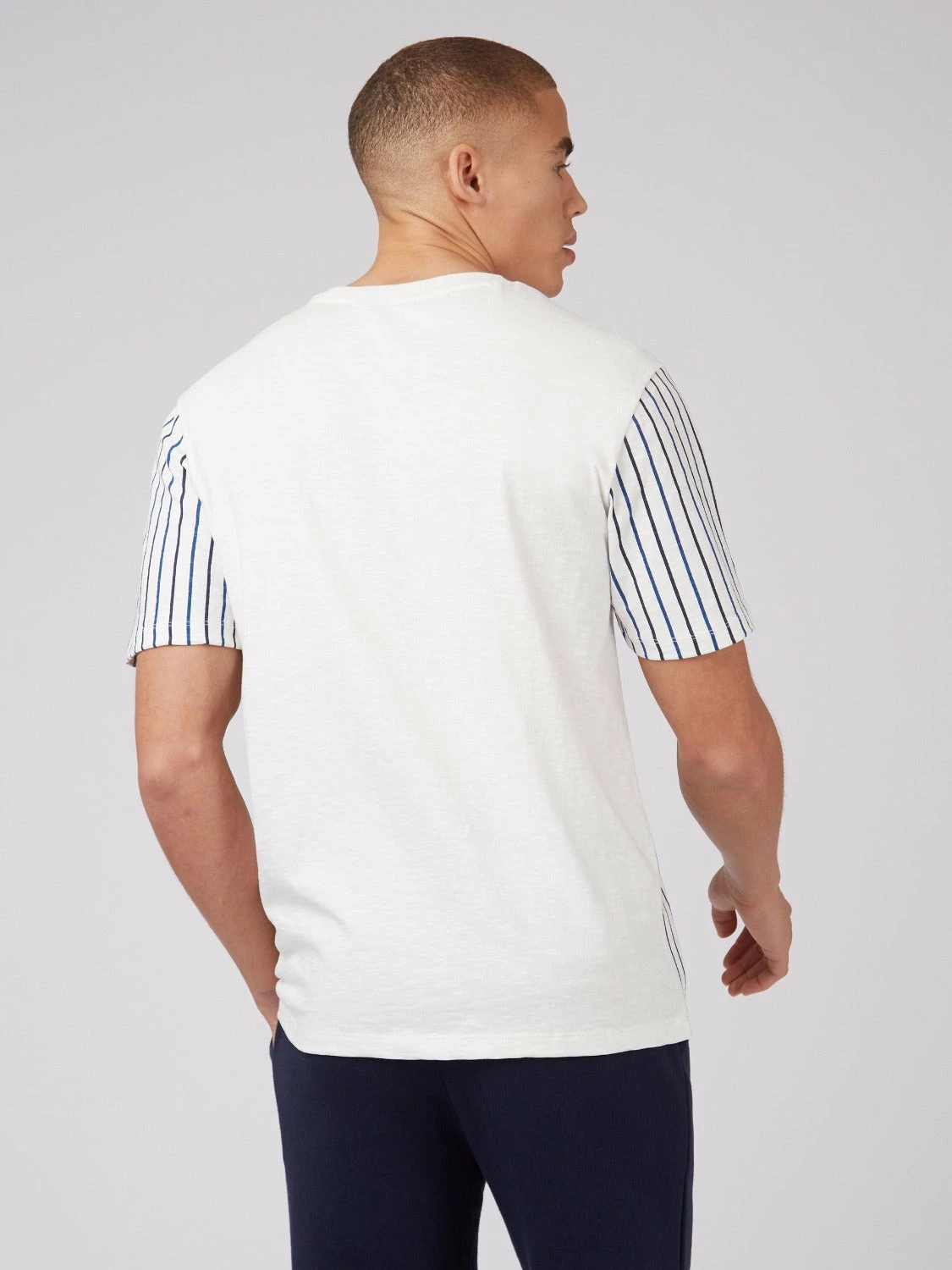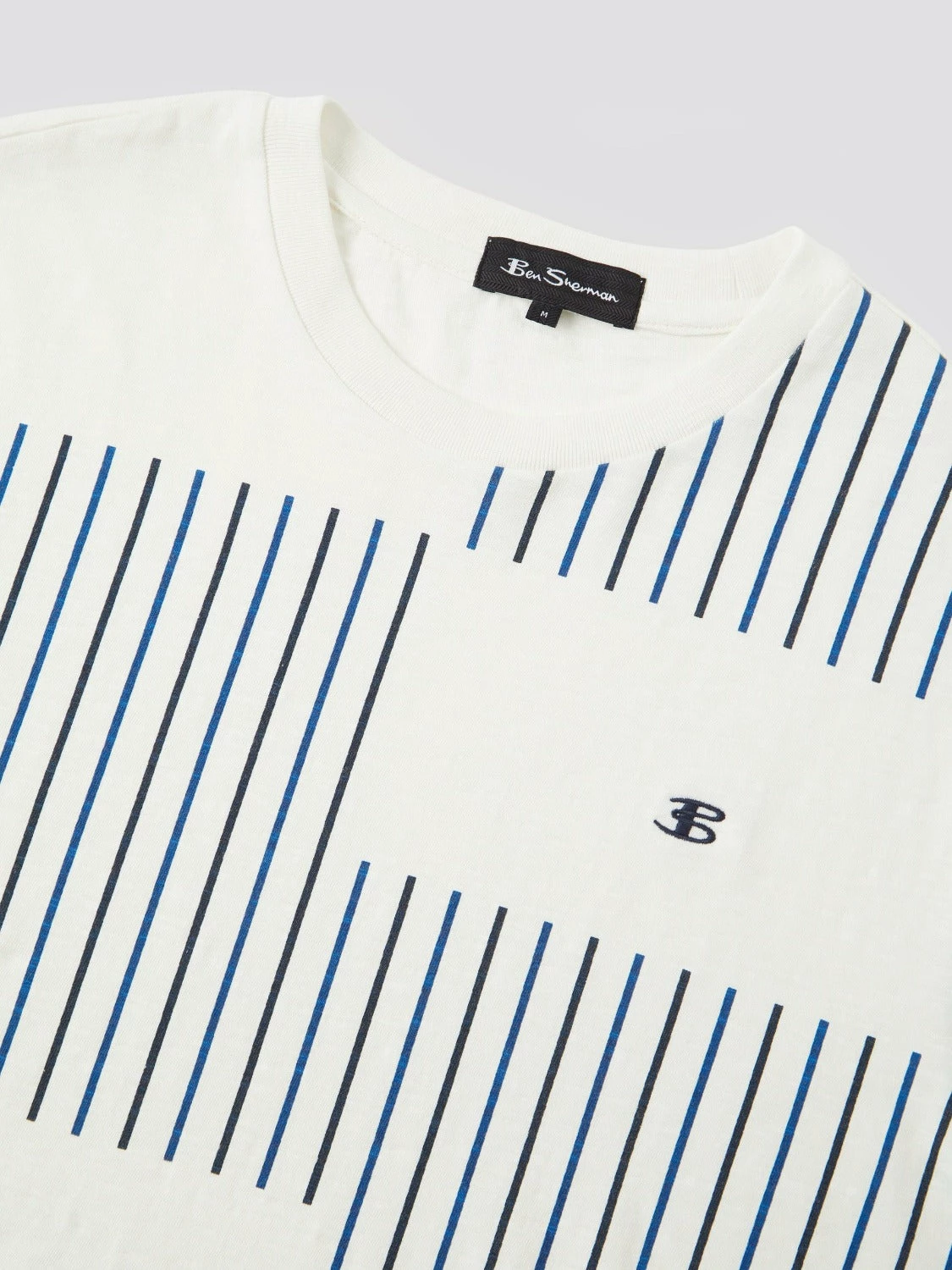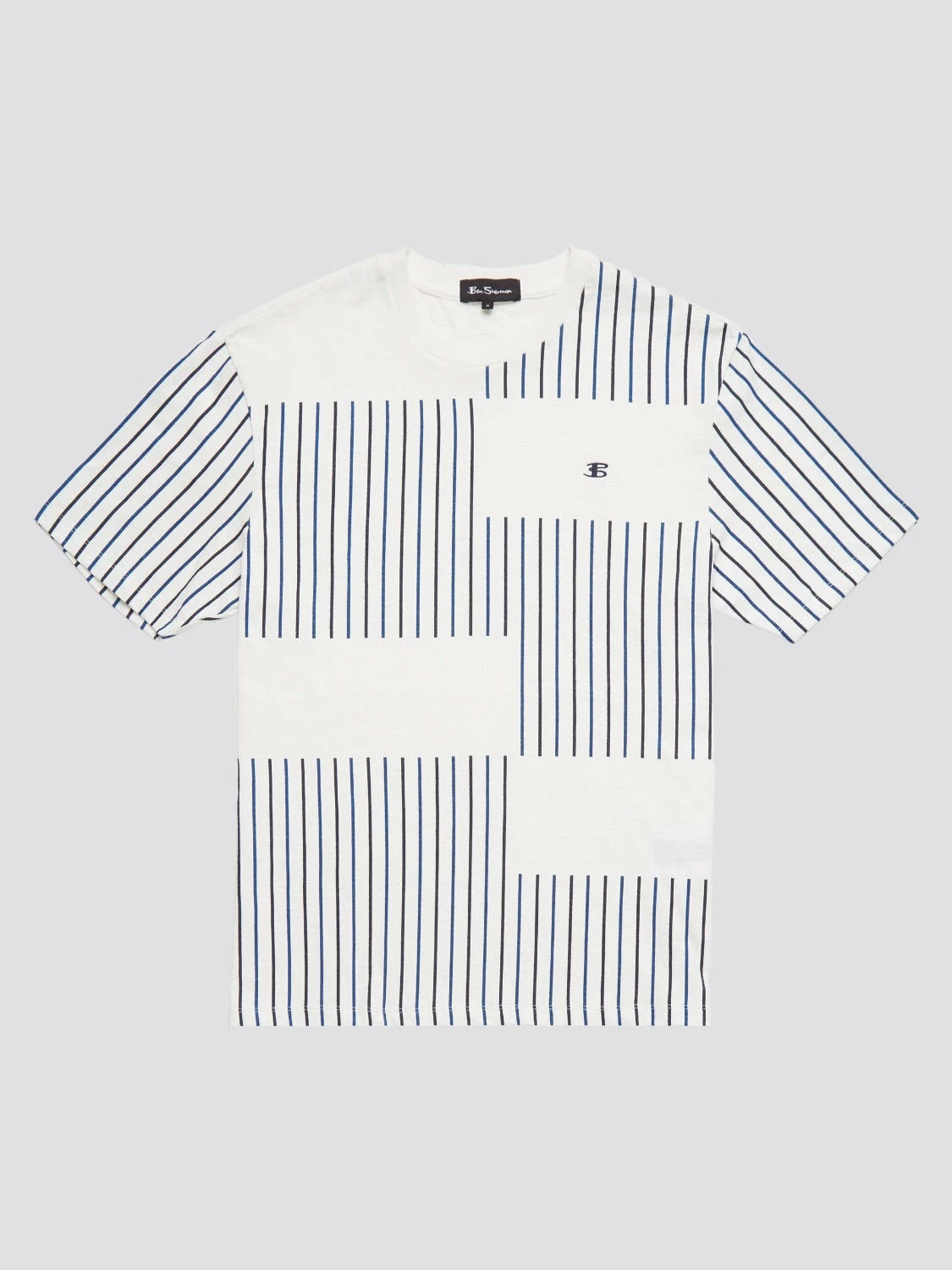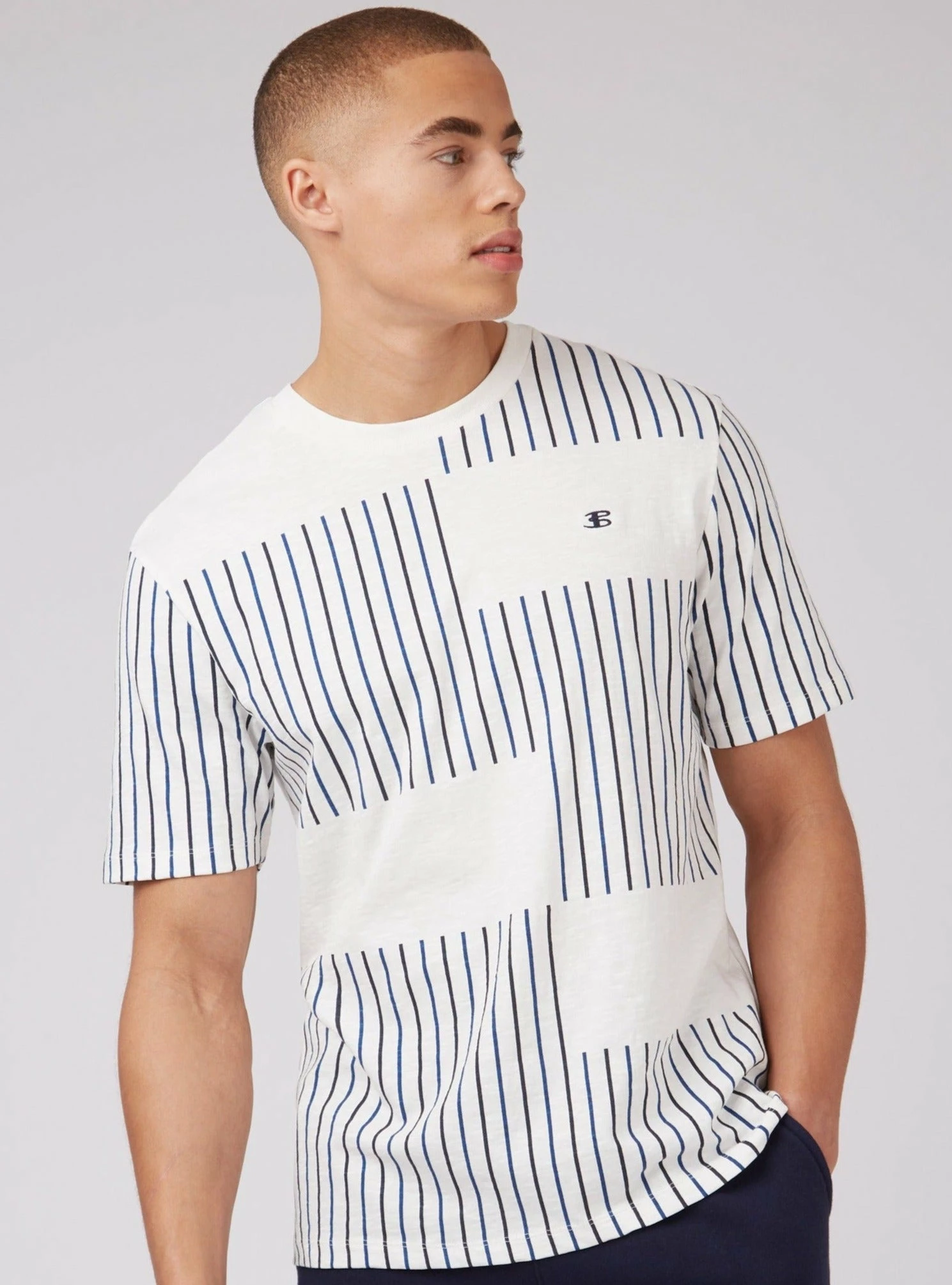 Cotton jersey tee with vertical stop start stripe design. Branded with Branded with a ”B” embroidery at chest.