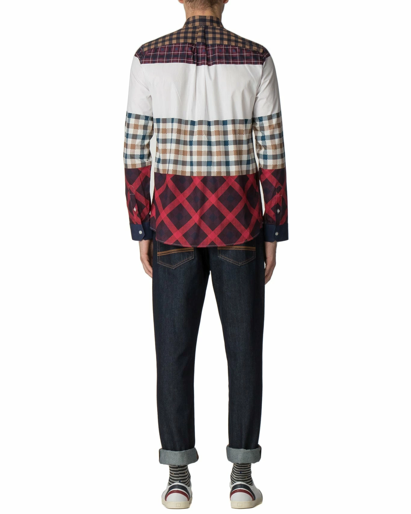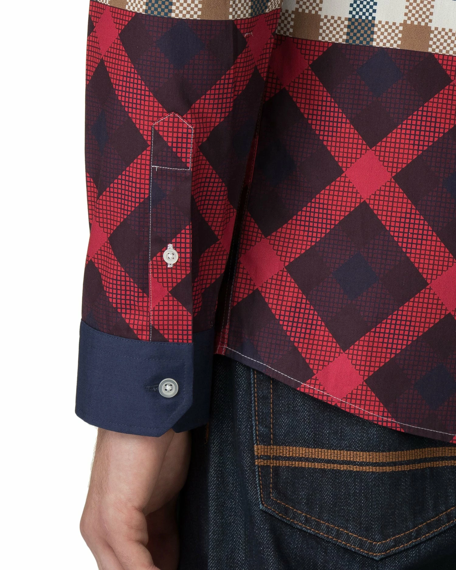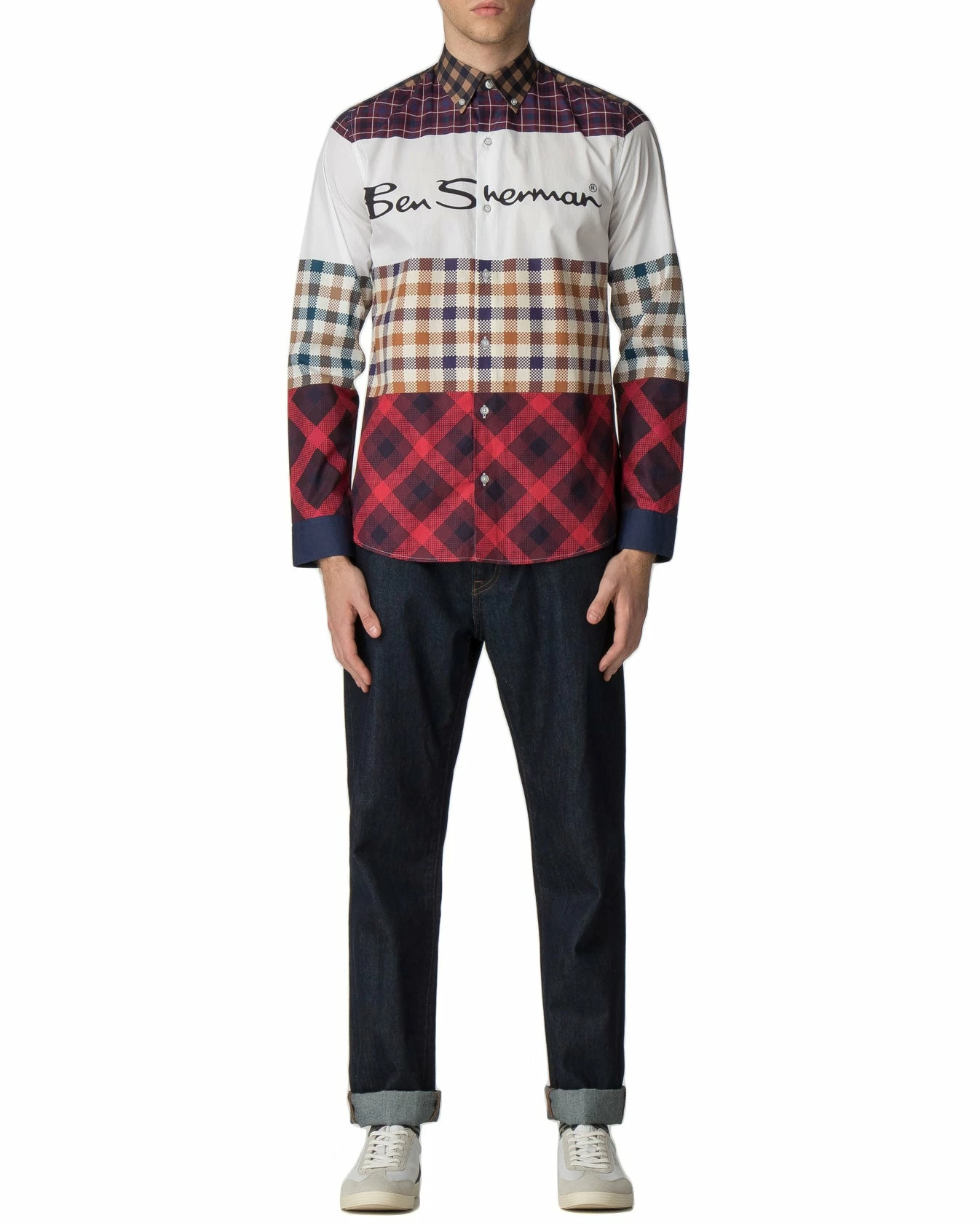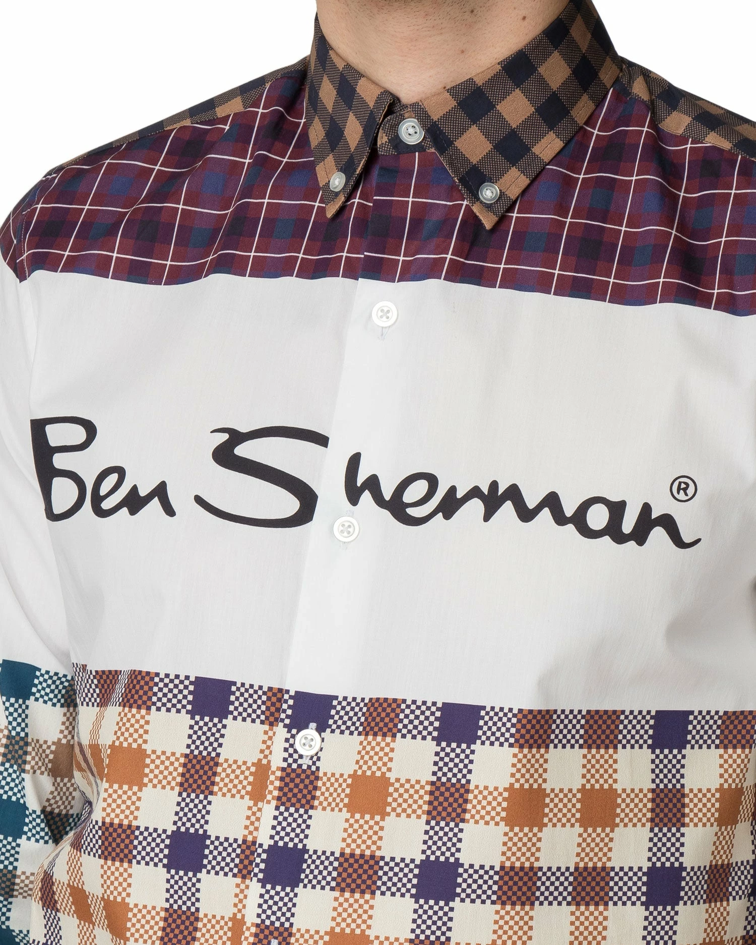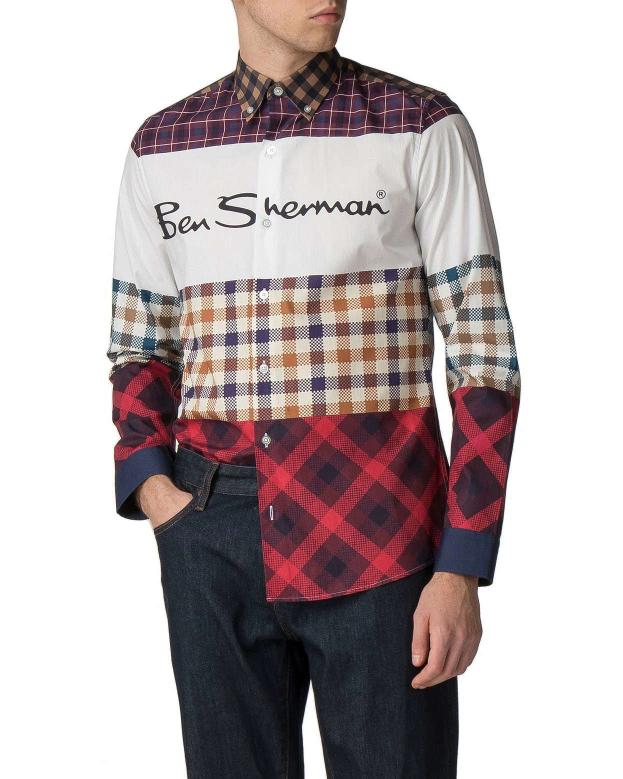 This button-down shirt from the limited-edition Ben Sherman x House of Holland collection makes a statement a contrasting mix of check prints along with a large black “Ben Sherman” script logo across the chest. A unique, one-of-a-kind shirt for style that stands out.