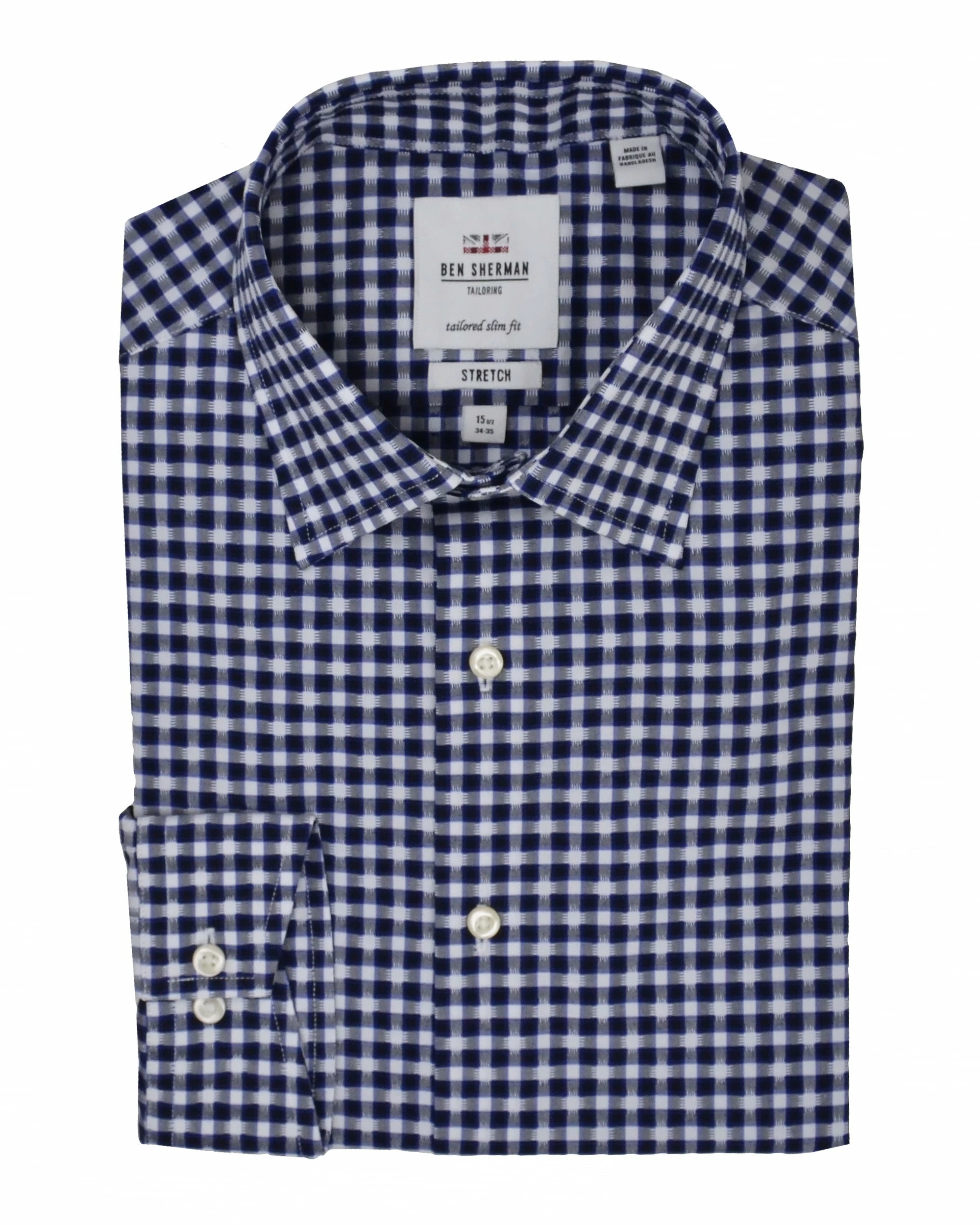The Black and Royal Dobby Dress Shirt is cut to a slim fit with 100% cotton and dobby texturing. Black and royal pattern gives an instant wardrobe update.