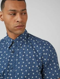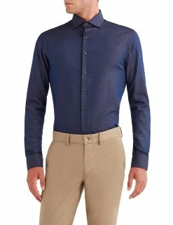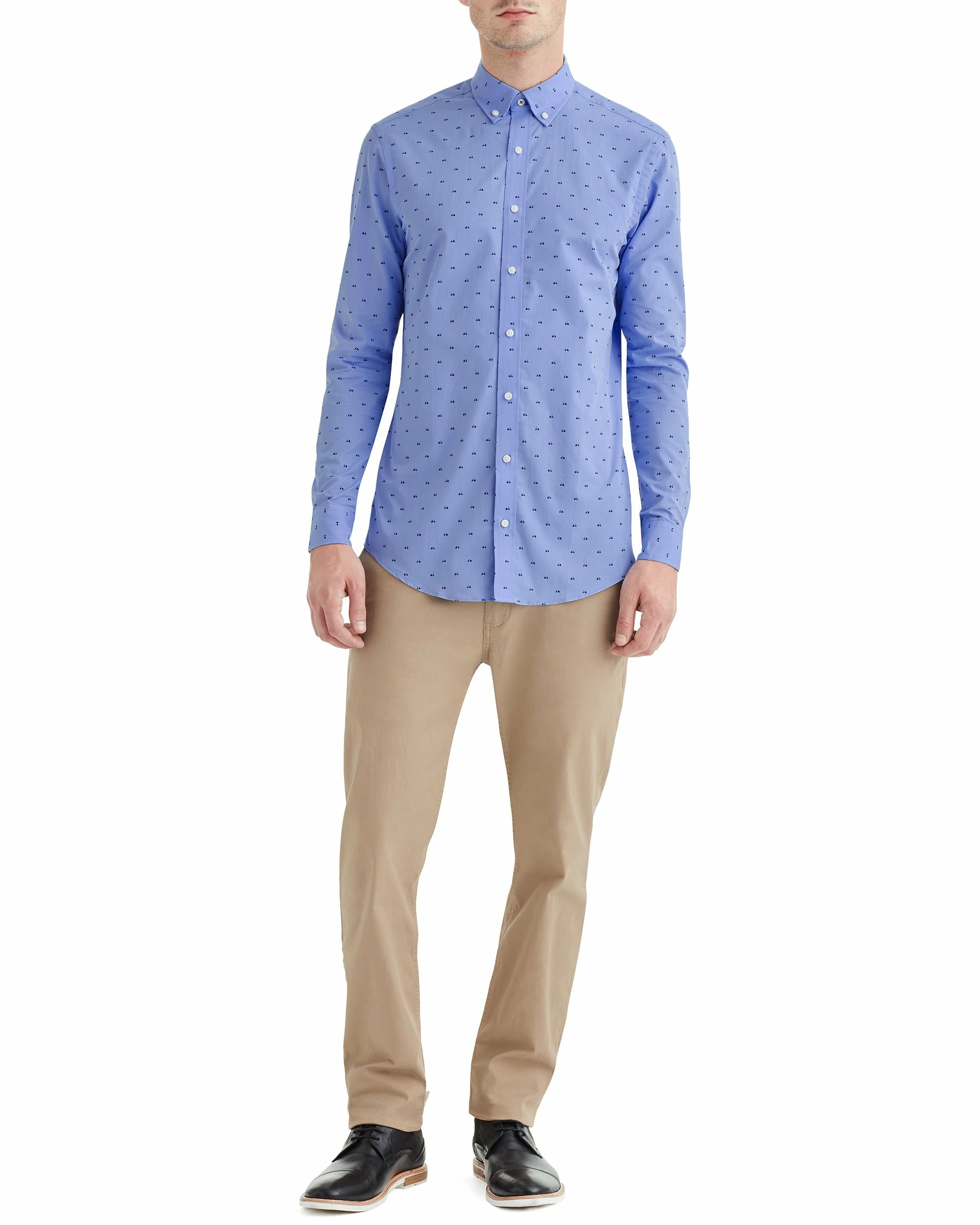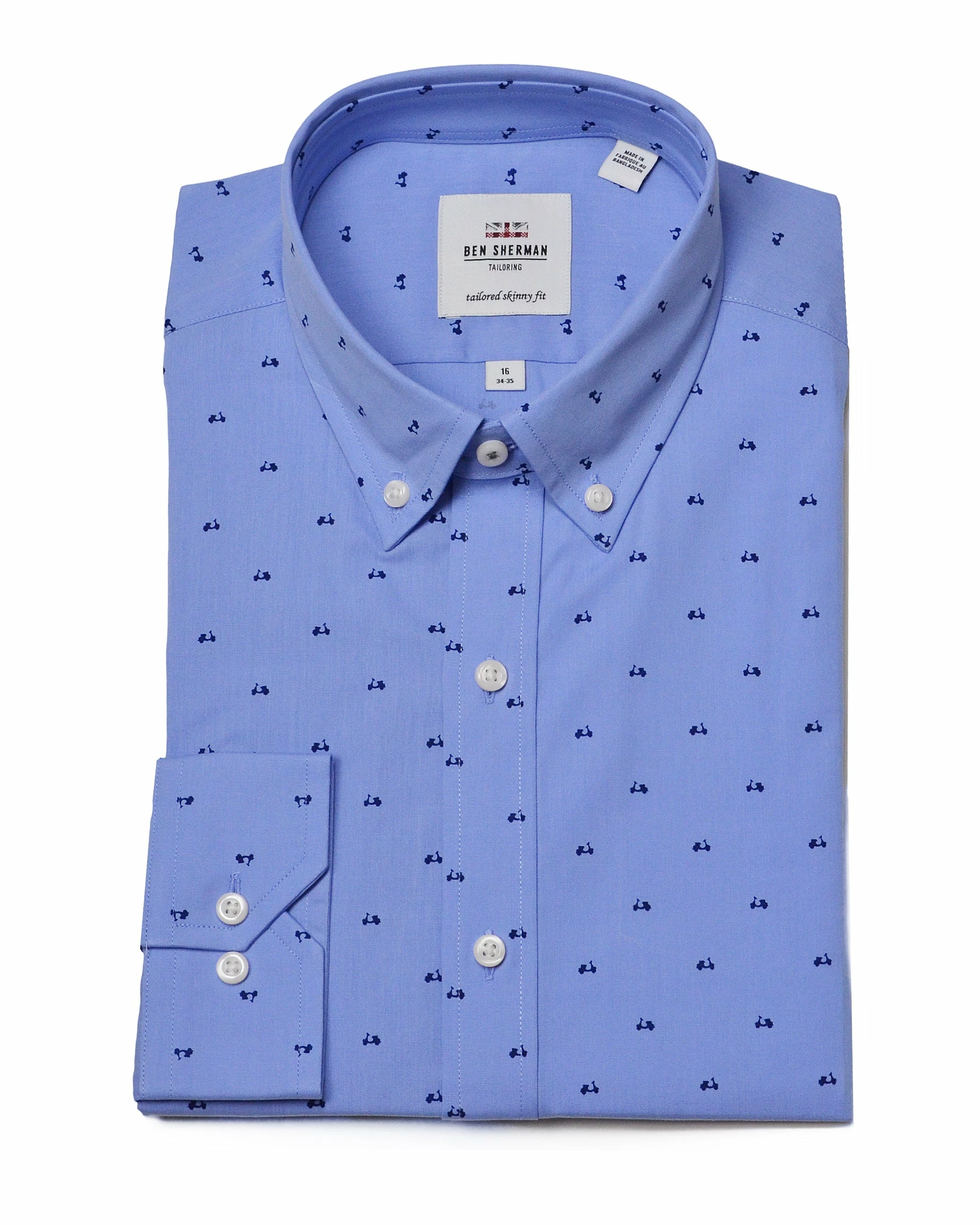 The Blue Scooter Print Skinny-Fit Dress Shirt combines a modern, skinny fit with a scooter pattern that will set you apart from the crowd.