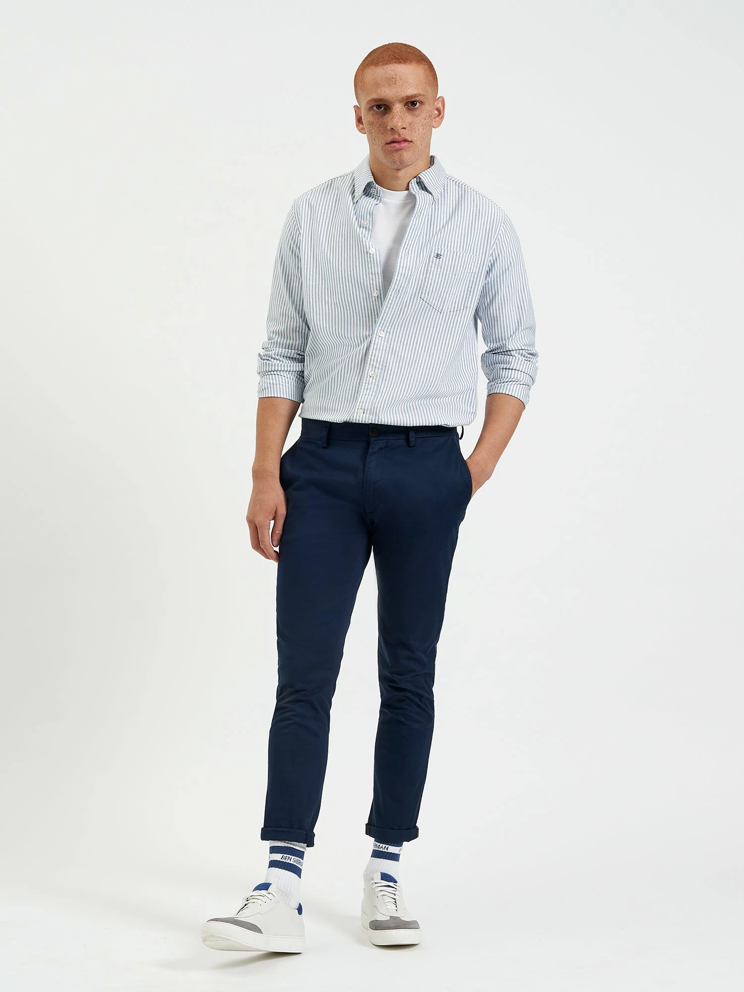 Our iconic Brighton Oxford Organic Shirt is a longstanding wardrobe staple. Cut with our relaxed Mod fit from certified organic stretch cotton, its expert craftsmanship and lived-in comfort are sure to wear well for years to come. This is our most sustainable Oxford to date, with all interlining labels and hangtags made from 100% recycled materials. The fabric has been treated with our authentic Beatnik garment wash for an unprecedented soft hand feel.