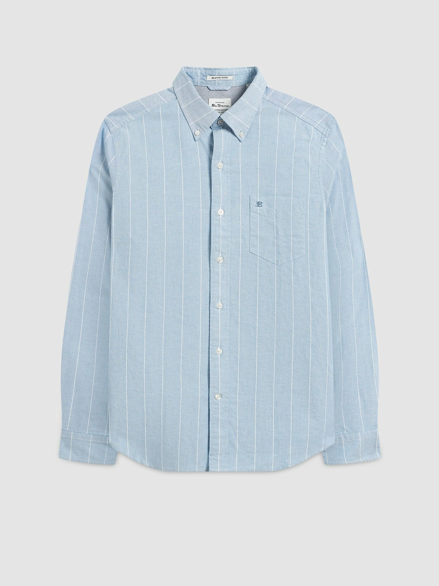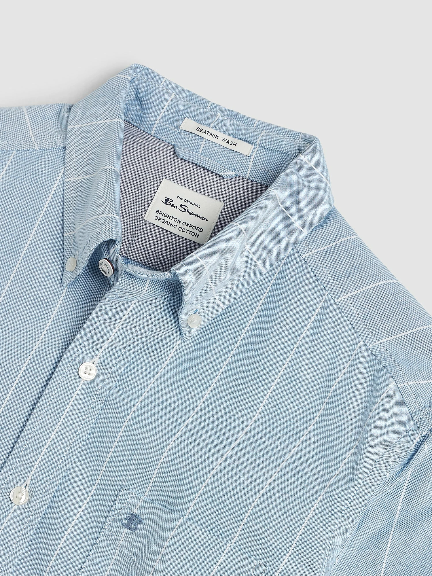 Our iconic Brighton Oxford Organic Shirt is a longstanding wardrobe staple. Cut with our relaxed Mod fit from certified organic stretch cotton, its expert craftsmanship and lived-in comfort are sure to wear well for years to come. This is our most sustainable Oxford to date, with all interlining labels and hangtags made from 100% recycled materials. The fabric has been treated with our authentic Beatnik garment wash for an unprecedented soft hand feel.