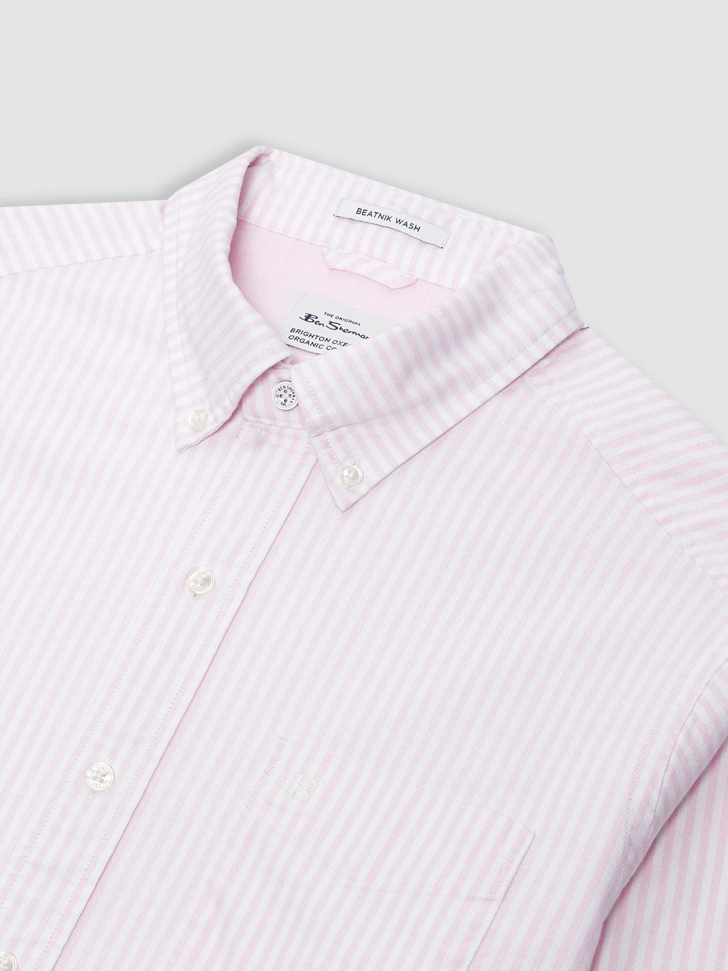 Our iconic Brighton Oxford Organic Shirt is a longstanding wardrobe staple. Cut with our relaxed Mod fit from certified organic stretch cotton, its expert craftsmanship and lived-in comfort are sure to wear well for years to come. This is our most sustainable Oxford to date, with all interlining labels and hangtags made from 100% recycled materials. The fabric has been treated with our authentic Beatnik garment wash for an unprecedented soft hand feel.
