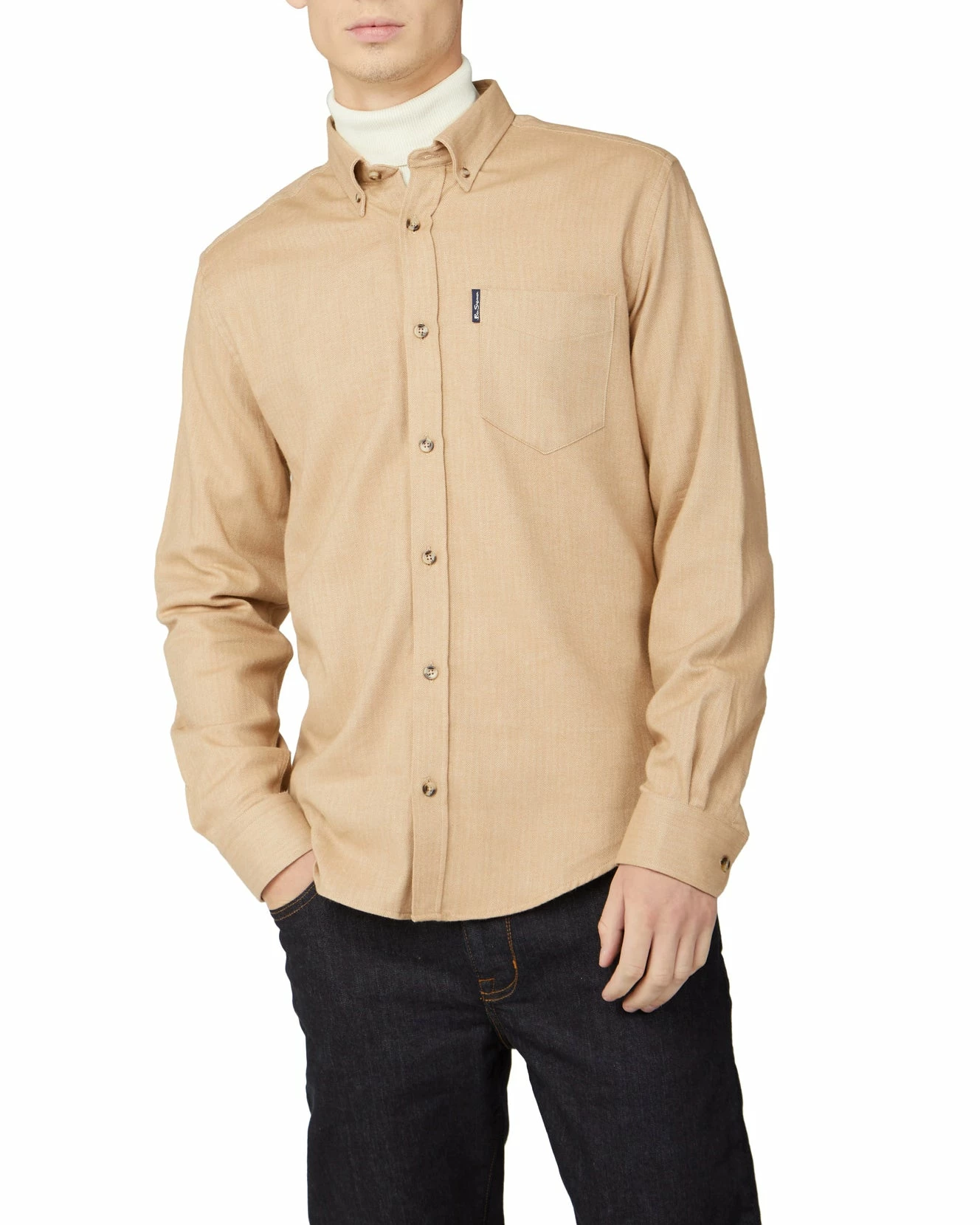 This classic shirt is an autumn/winter wardrobe staple. The long-sleeve herringbone style has classic Ben Sherman features, including a two-finger, button-down collar, mod fit, and chest pocket with tab branding.