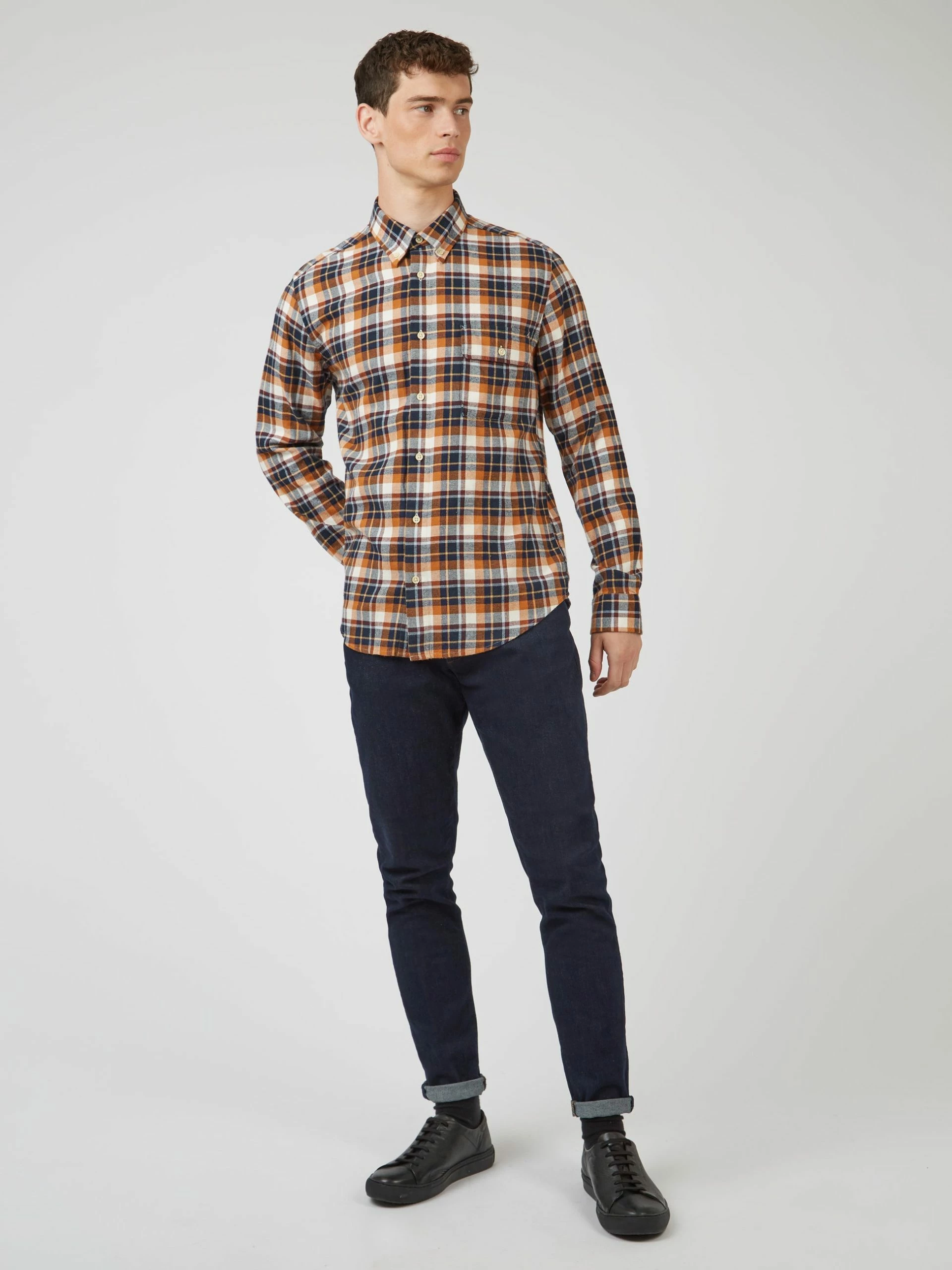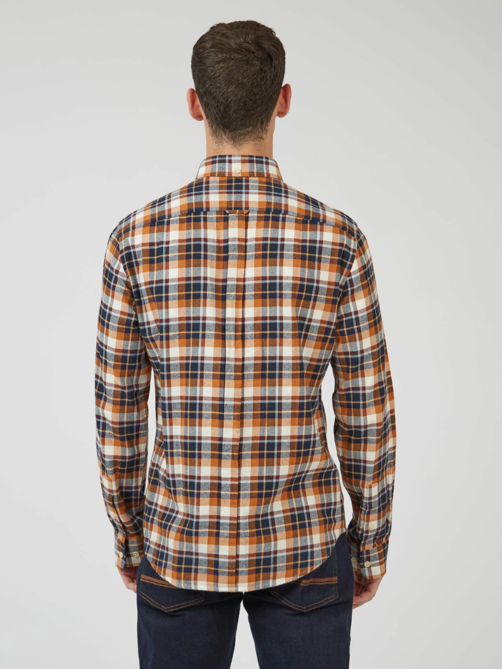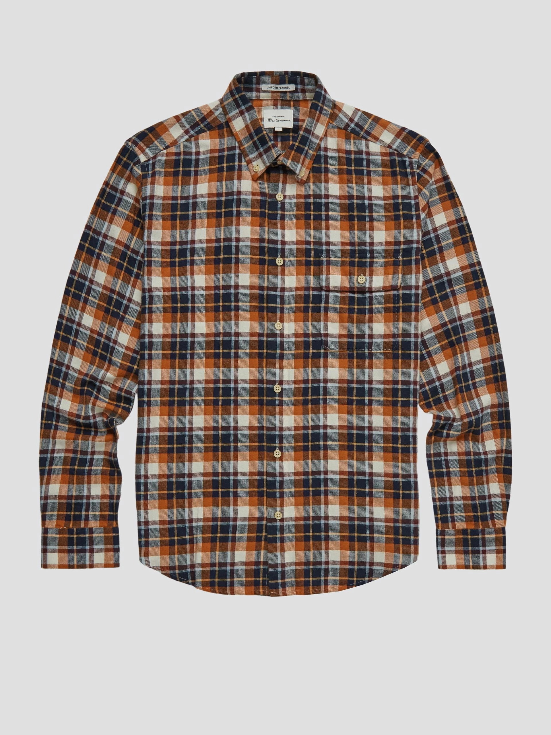 This contemporary brushed plaid check shirt from Ben Sherman comes in a regular fit with long sleeves and features a 3 finger button down collar. Made from 84% cotton, 16% viscose .