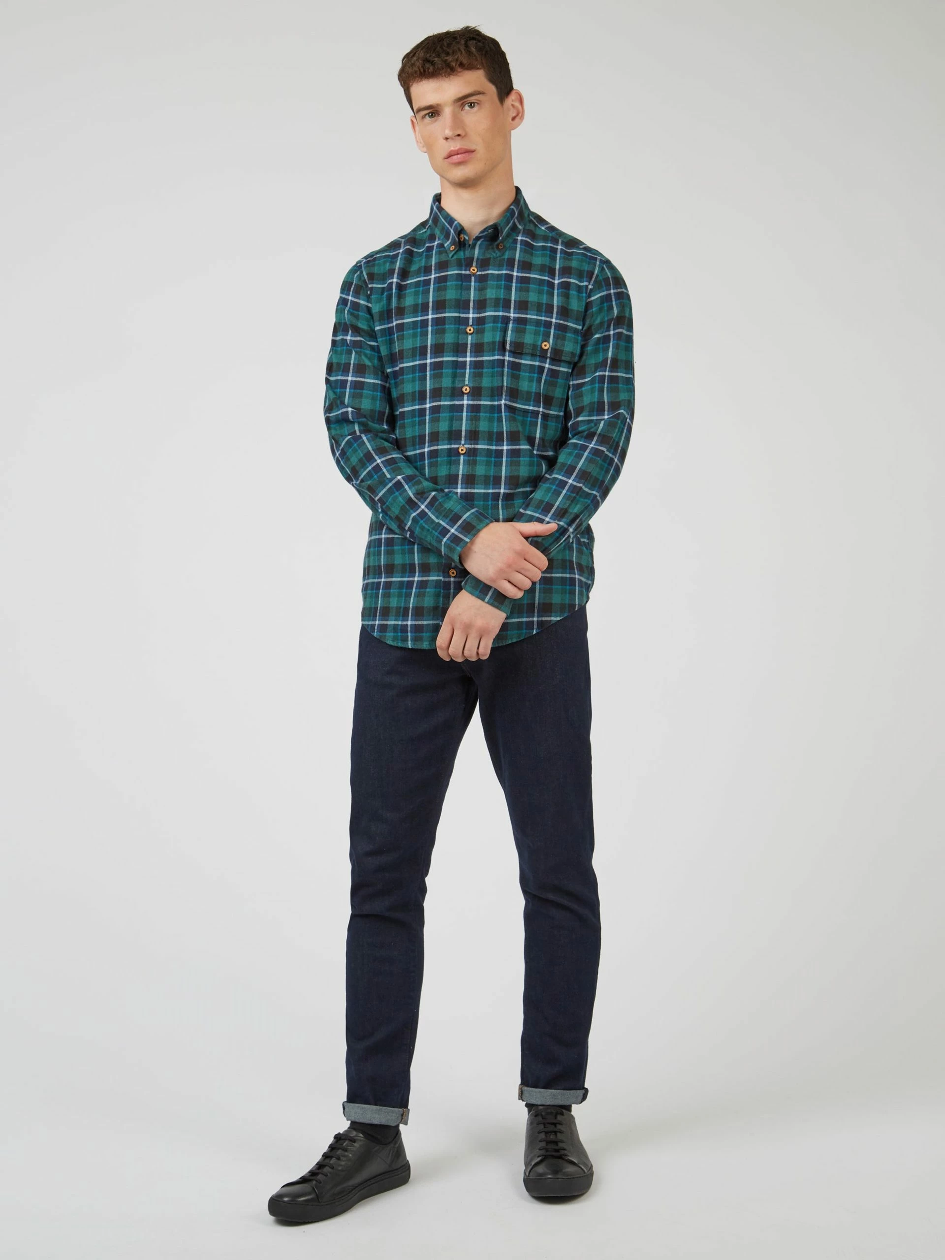 This contemporary brushed plaid check shirt from Ben Sherman comes in a regular fit with long sleeves and features a 3 finger button down collar. Made from 84% cotton, 16% viscose .