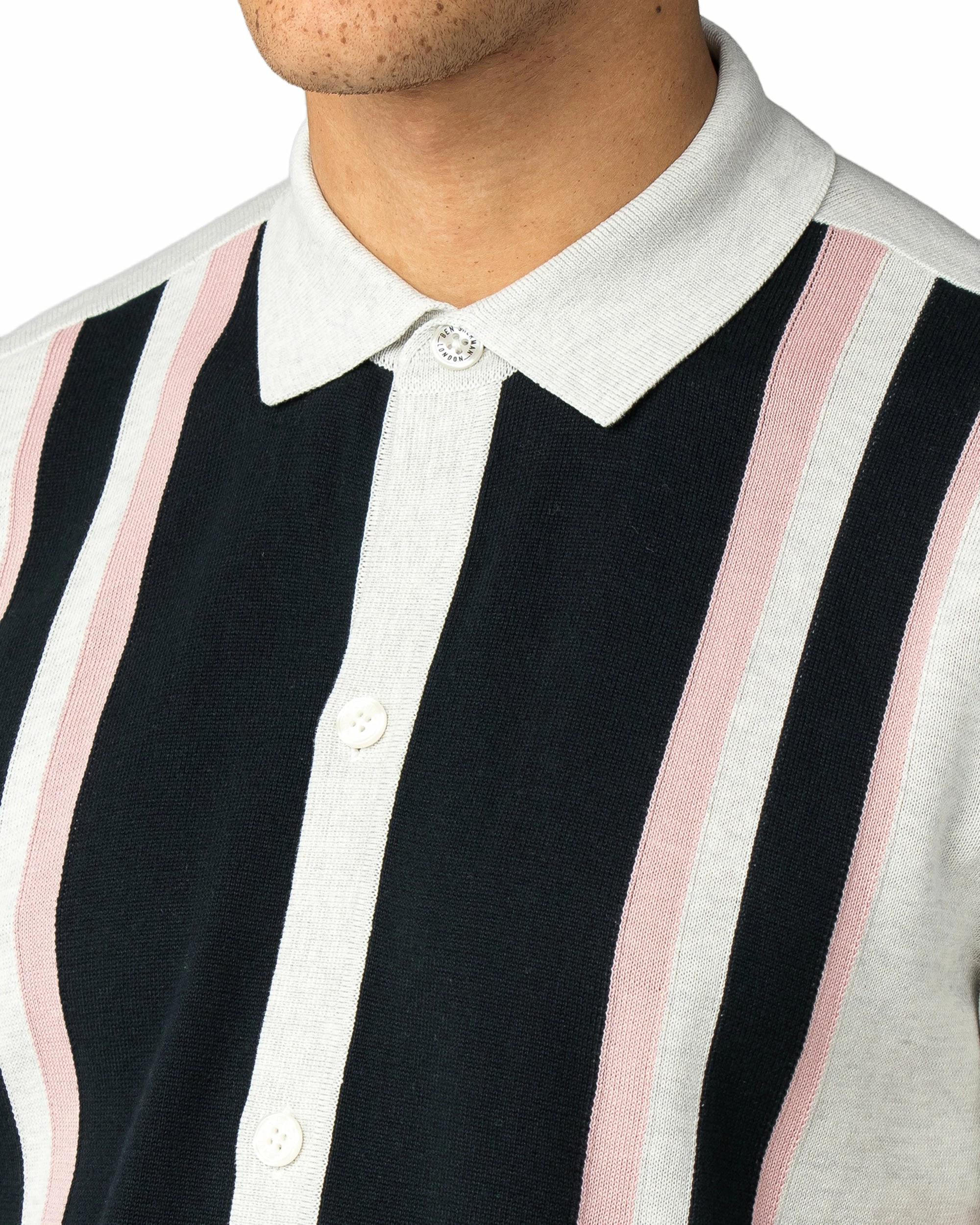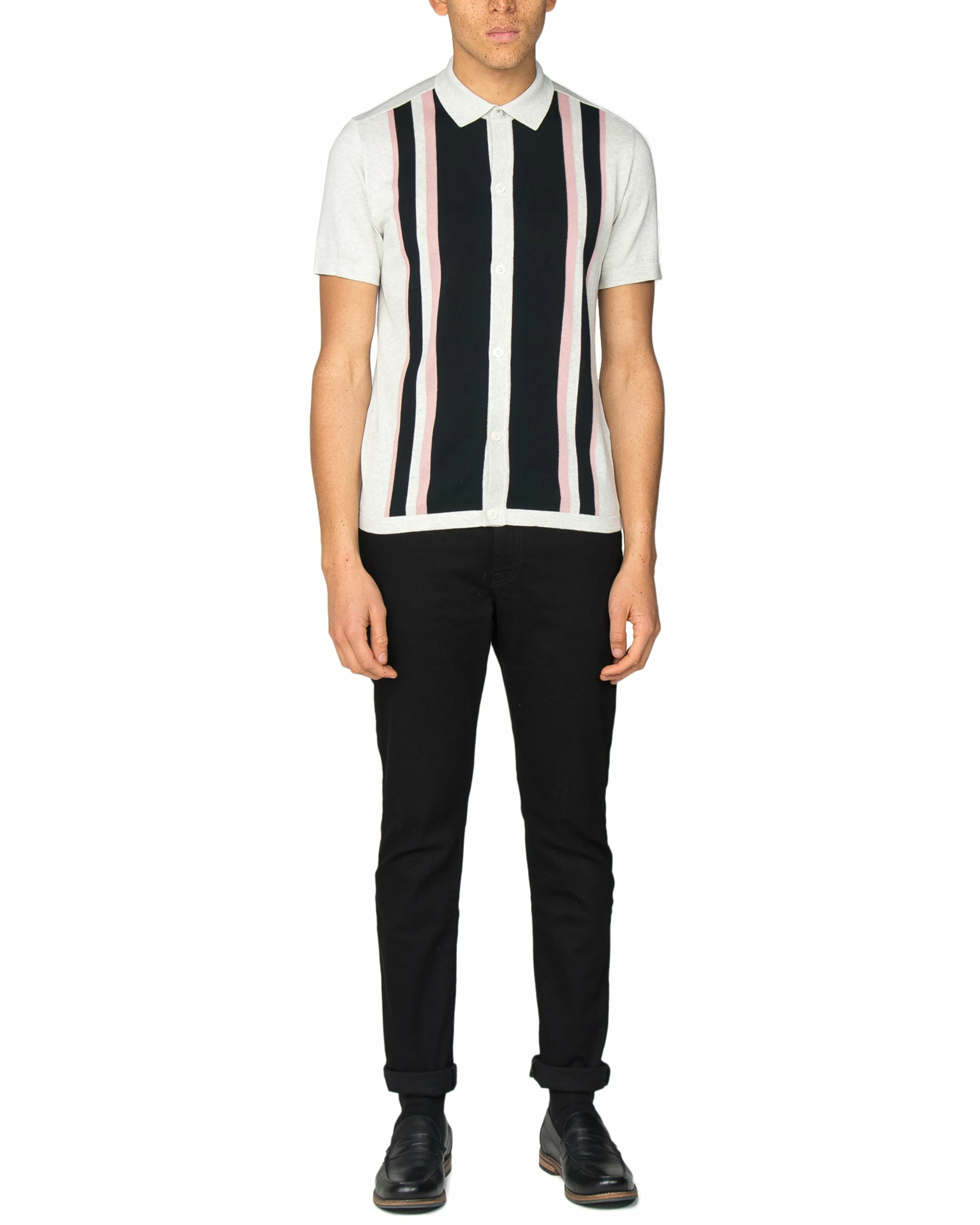 Our knit polo shirt stands out in a vintage-inspired vertical mod-stripe design. Combining the English heritage of the Ben Sherman brand with inspiration from the Ivy League universities of America, this stylish shirt is a modern update on a classic.