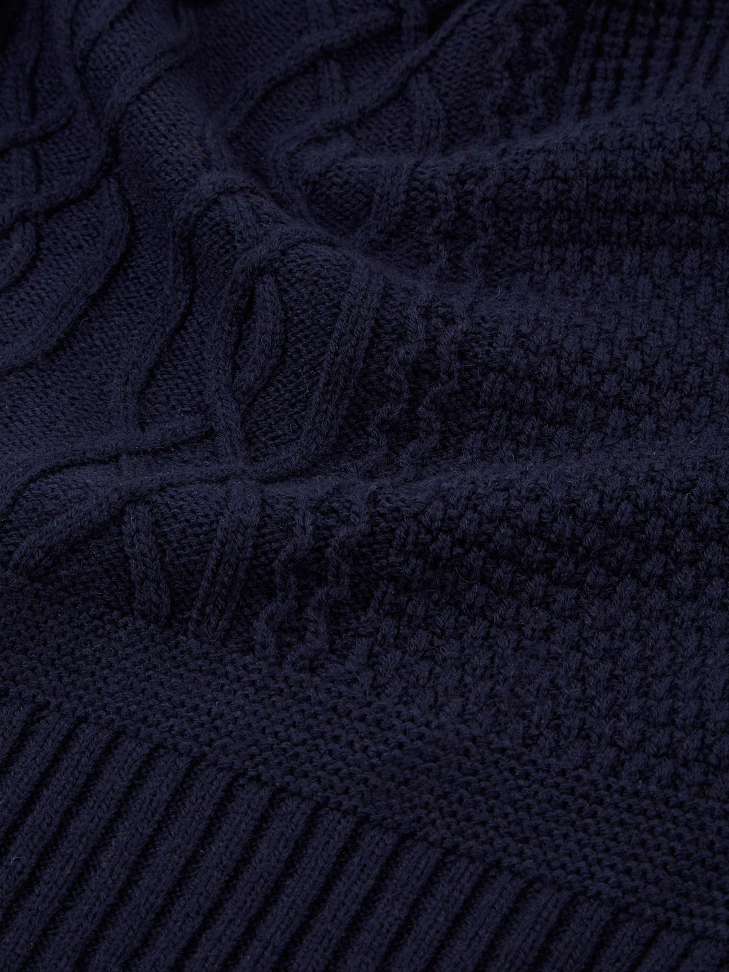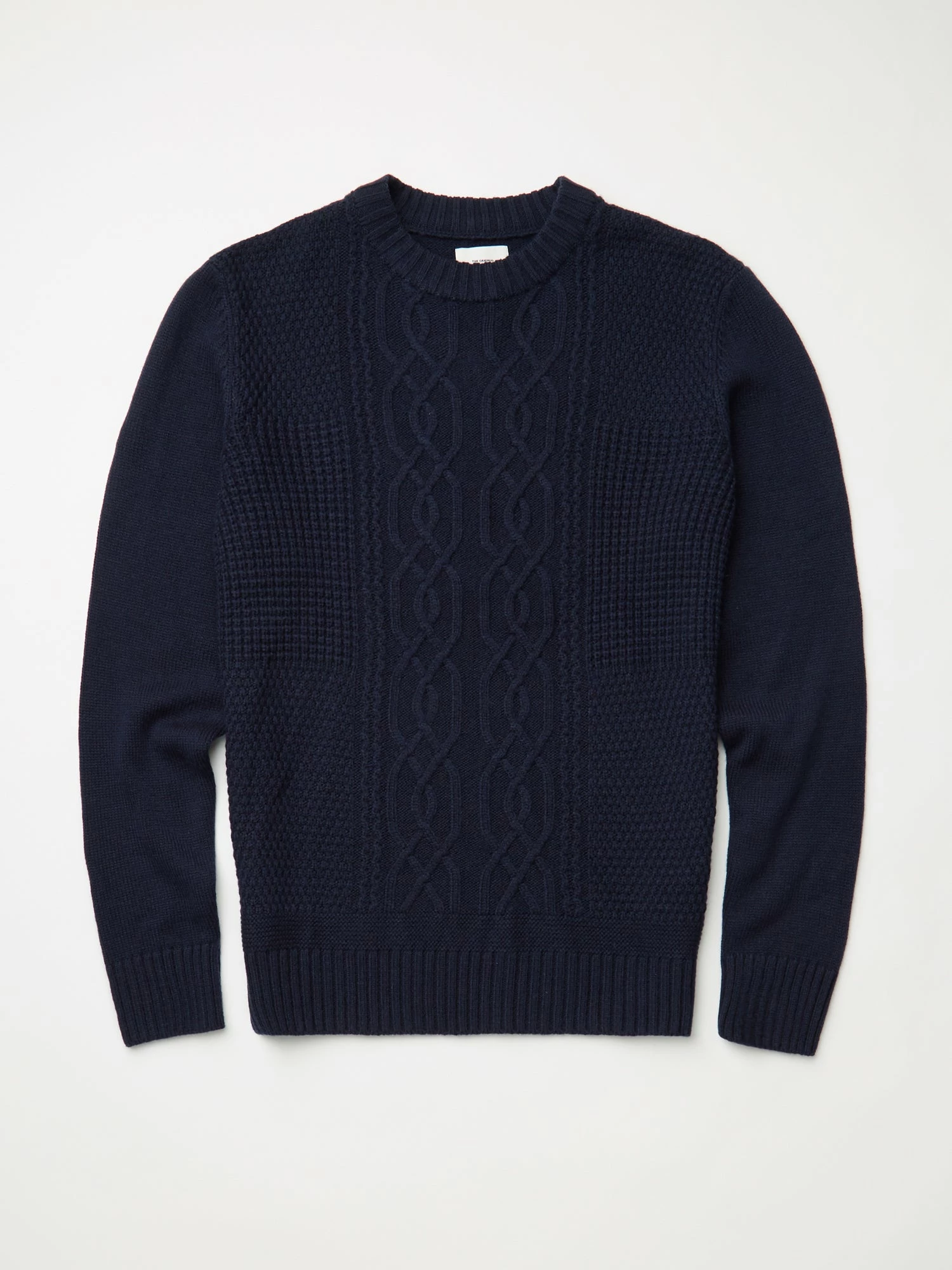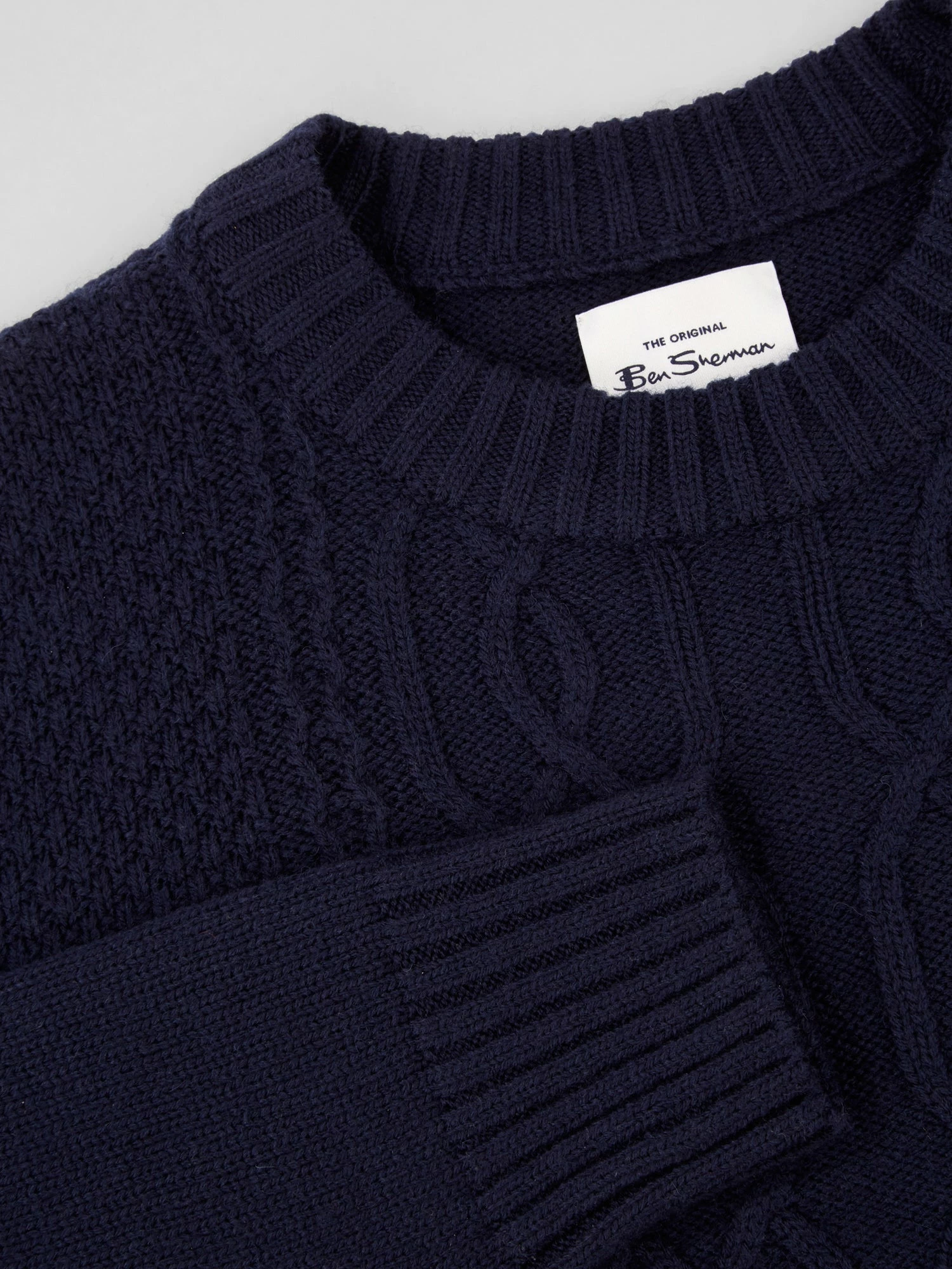 This wool-blend, chunky-knit crewneck jumper is designed with a multi-textured cable-knit to the front and is branded with the Ben Sherman side-tab label. Ribbed hem and cuffs complete the look.