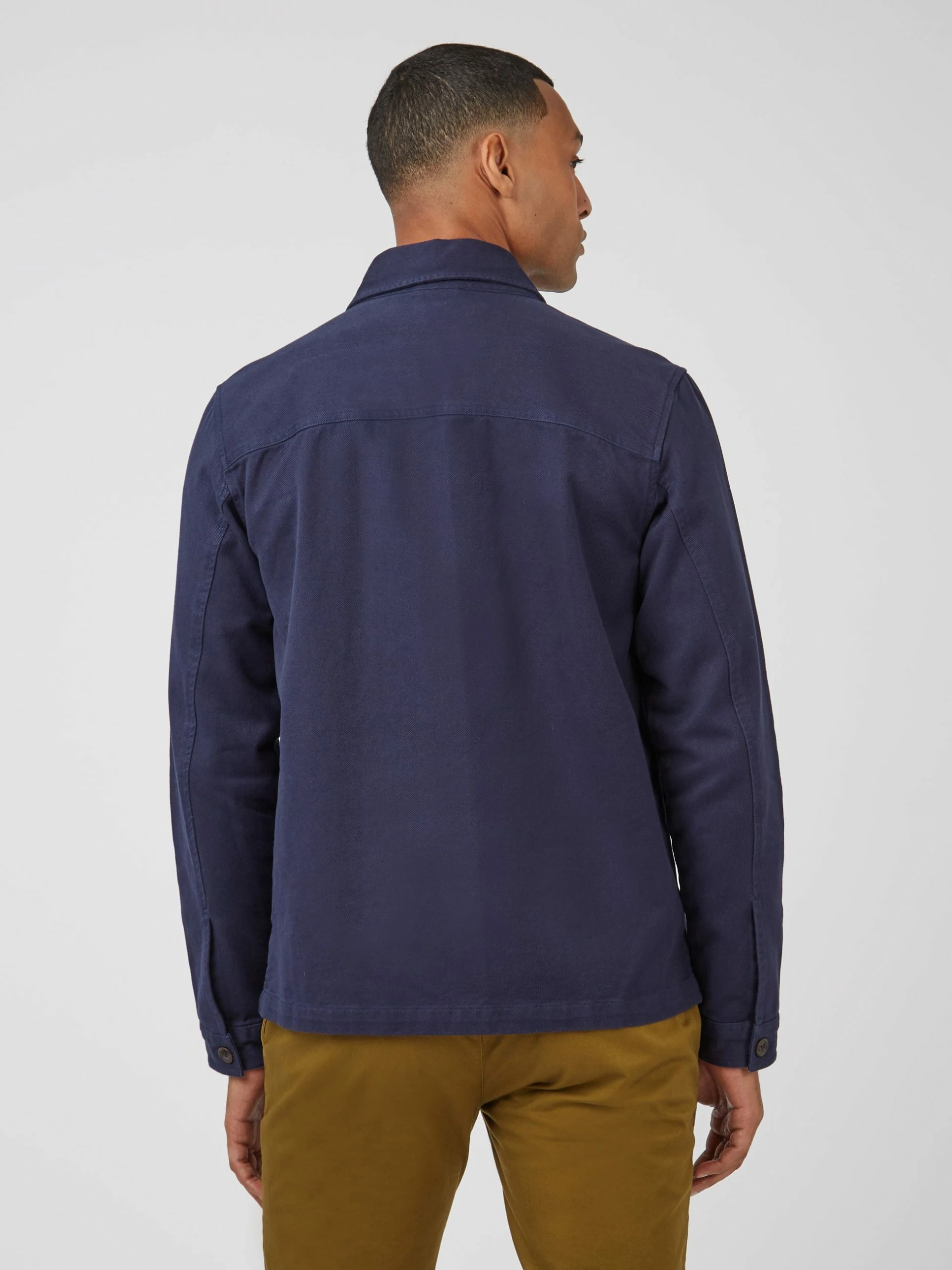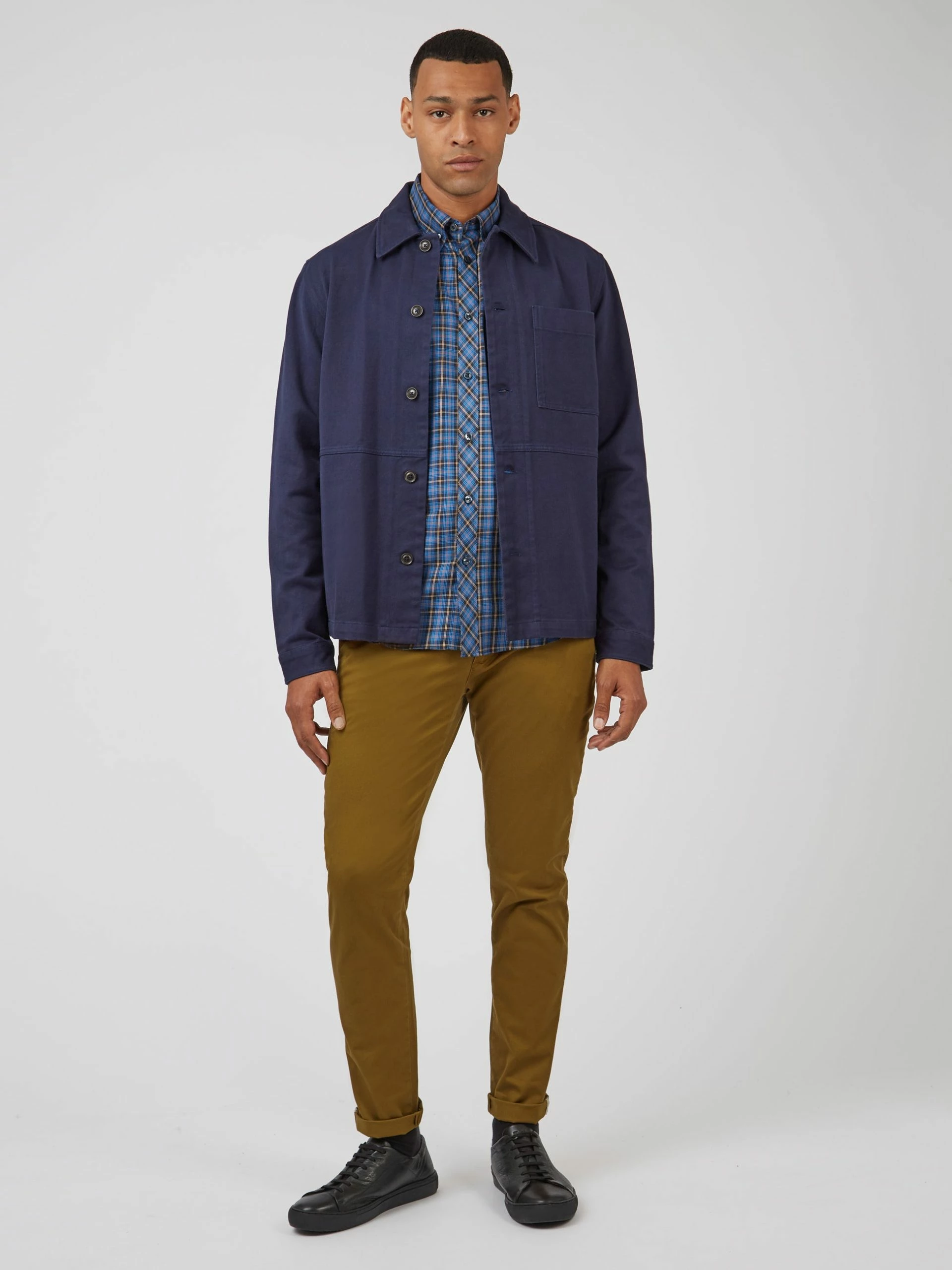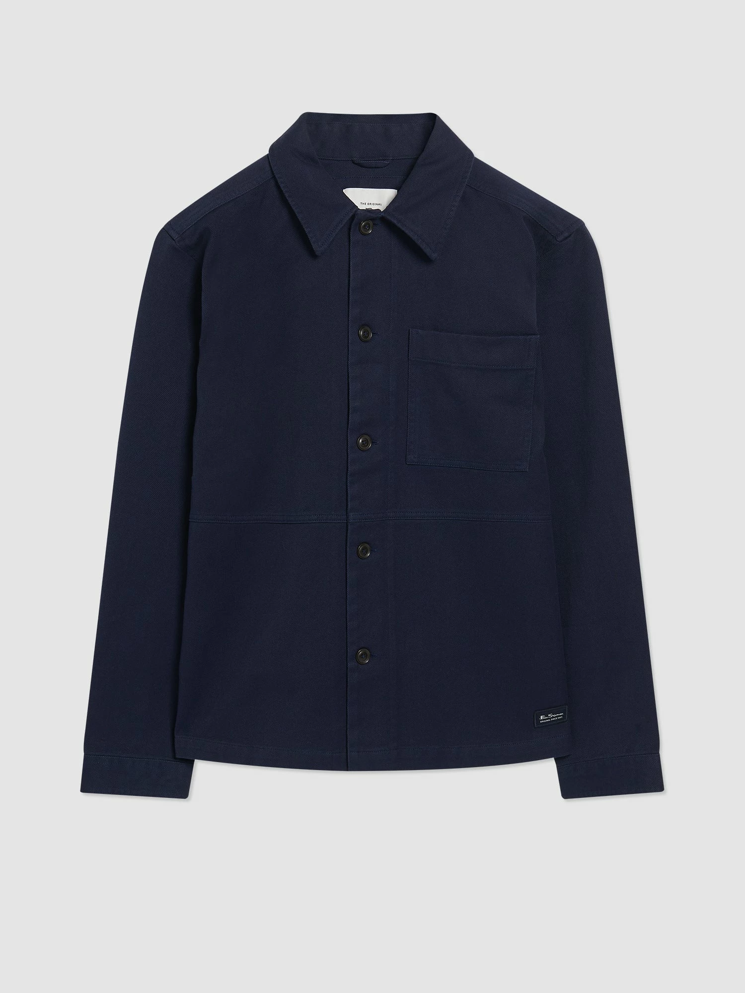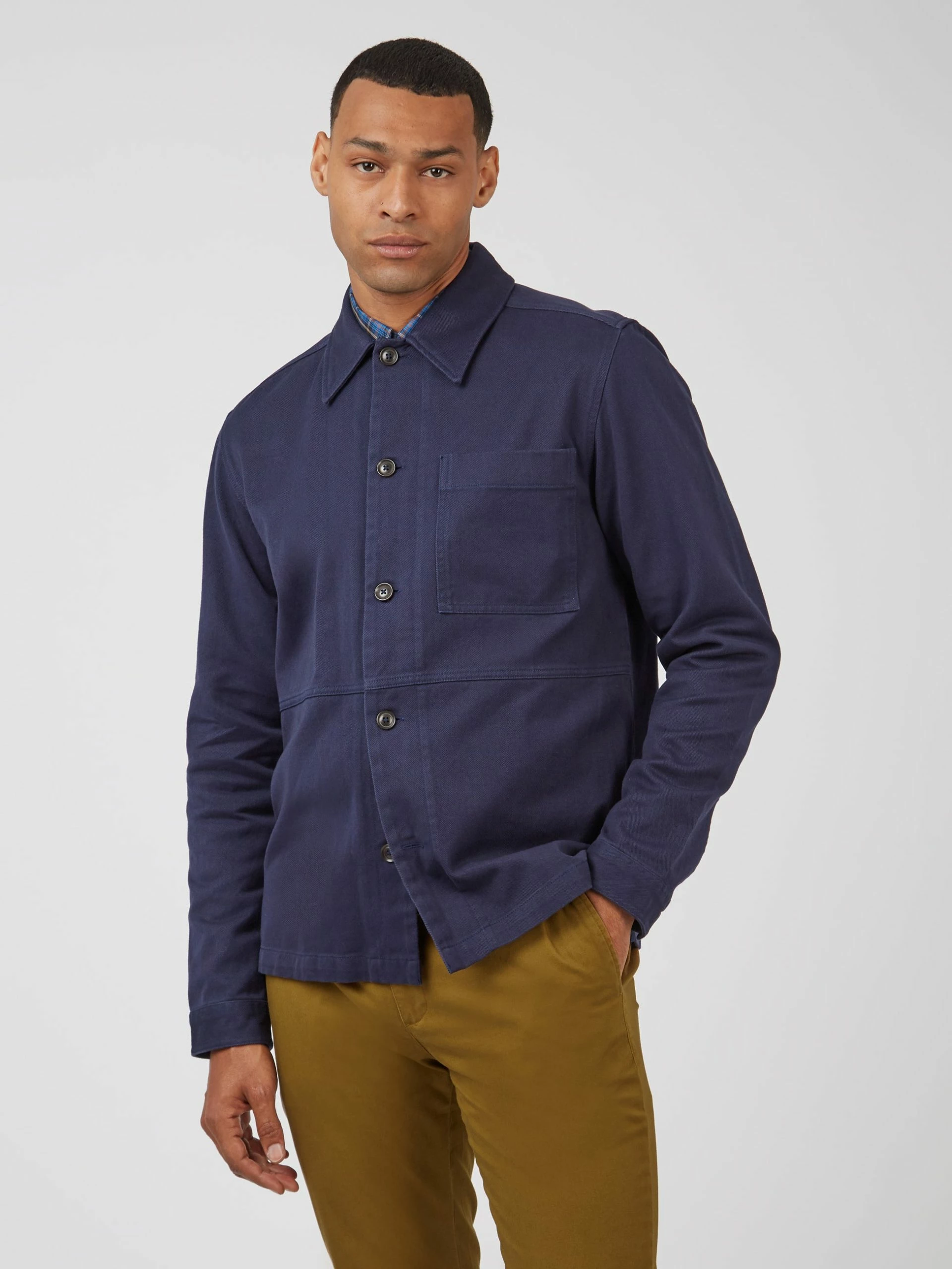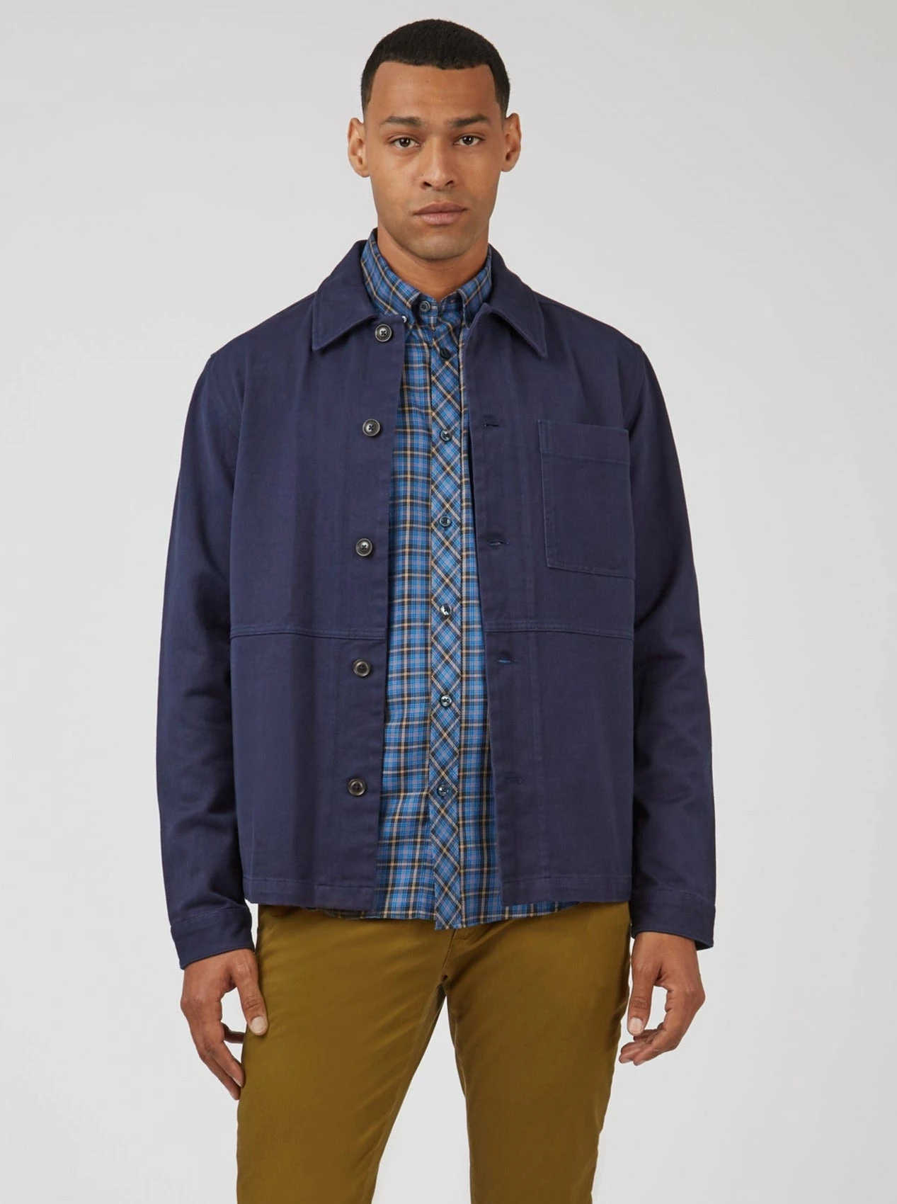 A workwear style jacket in a cotton twill fabric. Features include mock corozo buttons, a chest pocket, heavy top stitching detailing and a Ben Sherman branded woven badge at the hem.Â