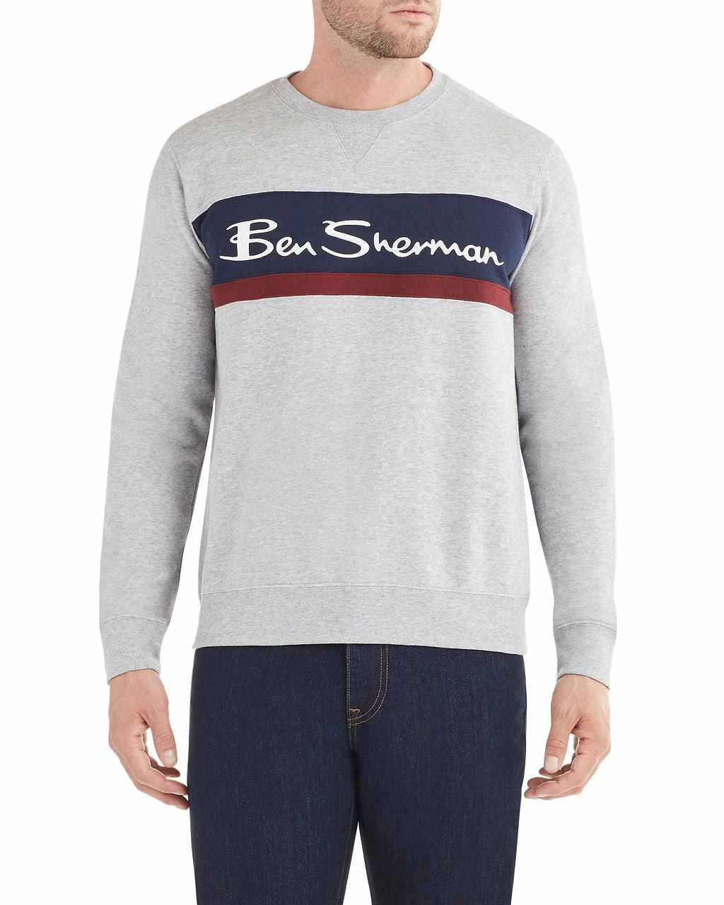 Signature Ben Sherman branding and stripes paired with a classic crew silhouette make for a cool, vintage vibe in this color block logo sweatshirt.