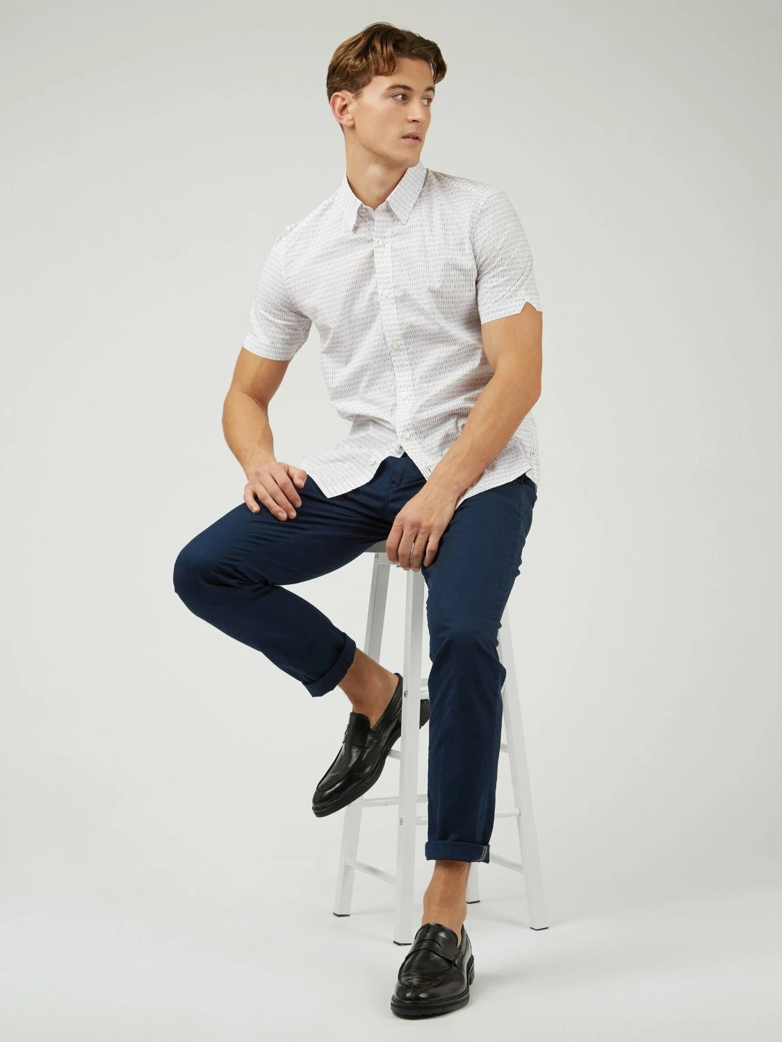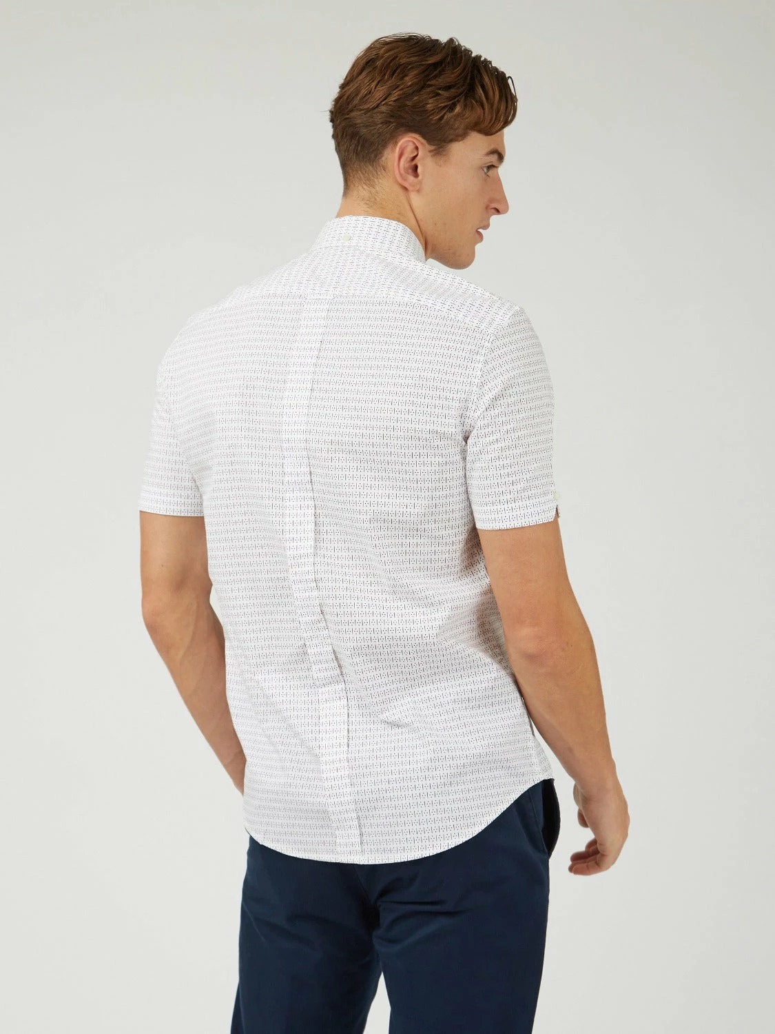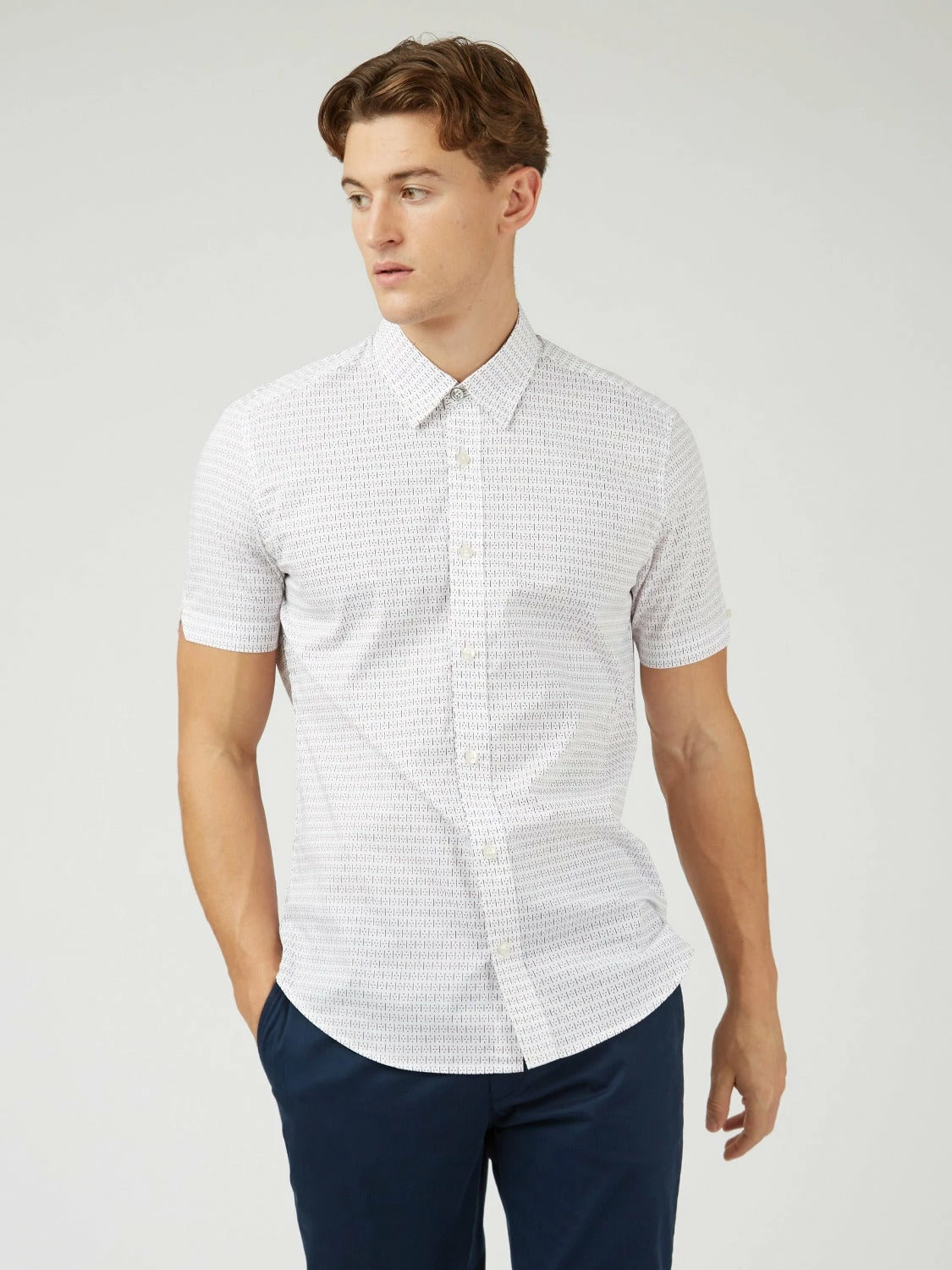 A short sleeve shirt designed with a spot dash print. This regular fit shirt features a Ben Sherman woven side tab and a back box pleat. Made from 100% cotton
