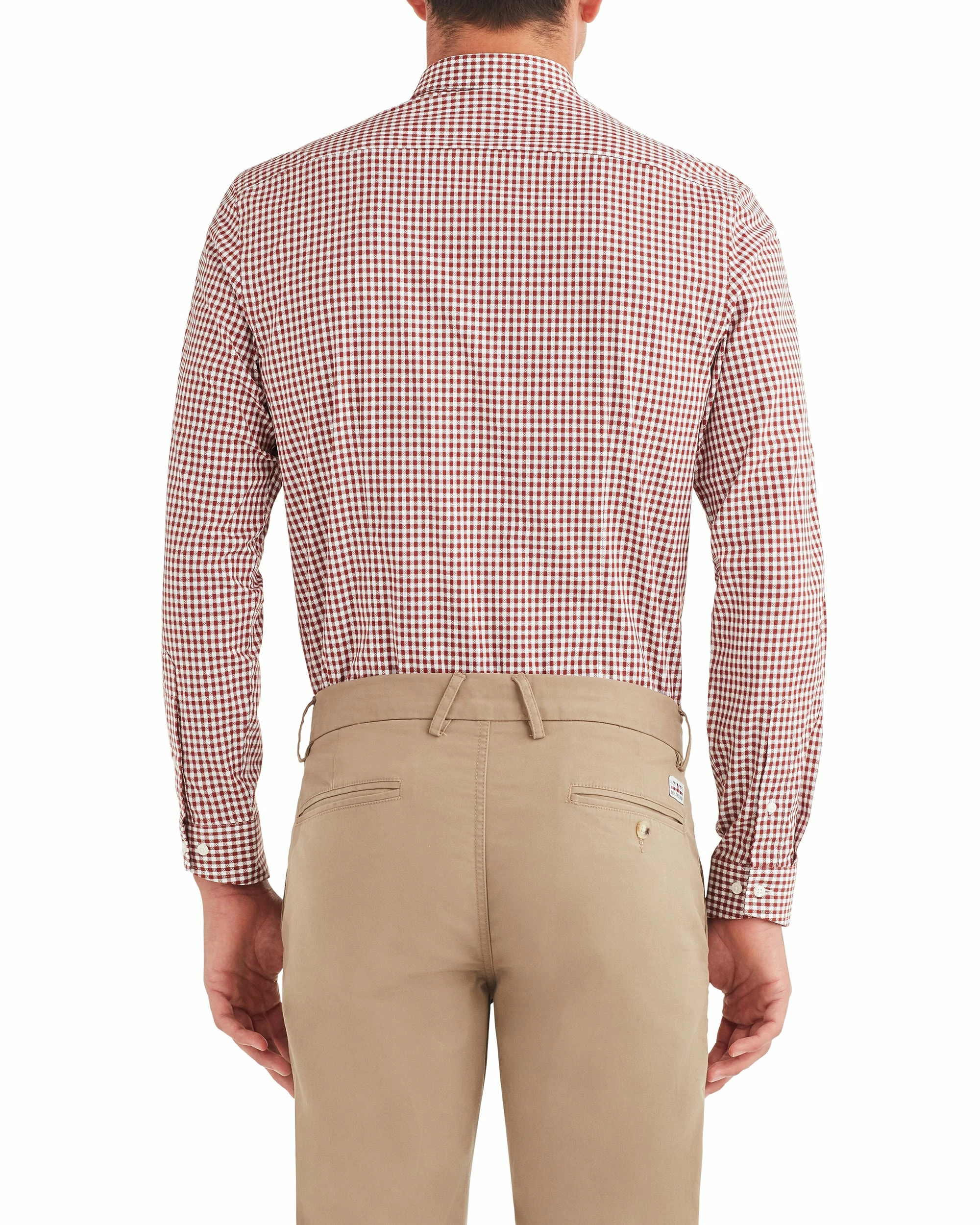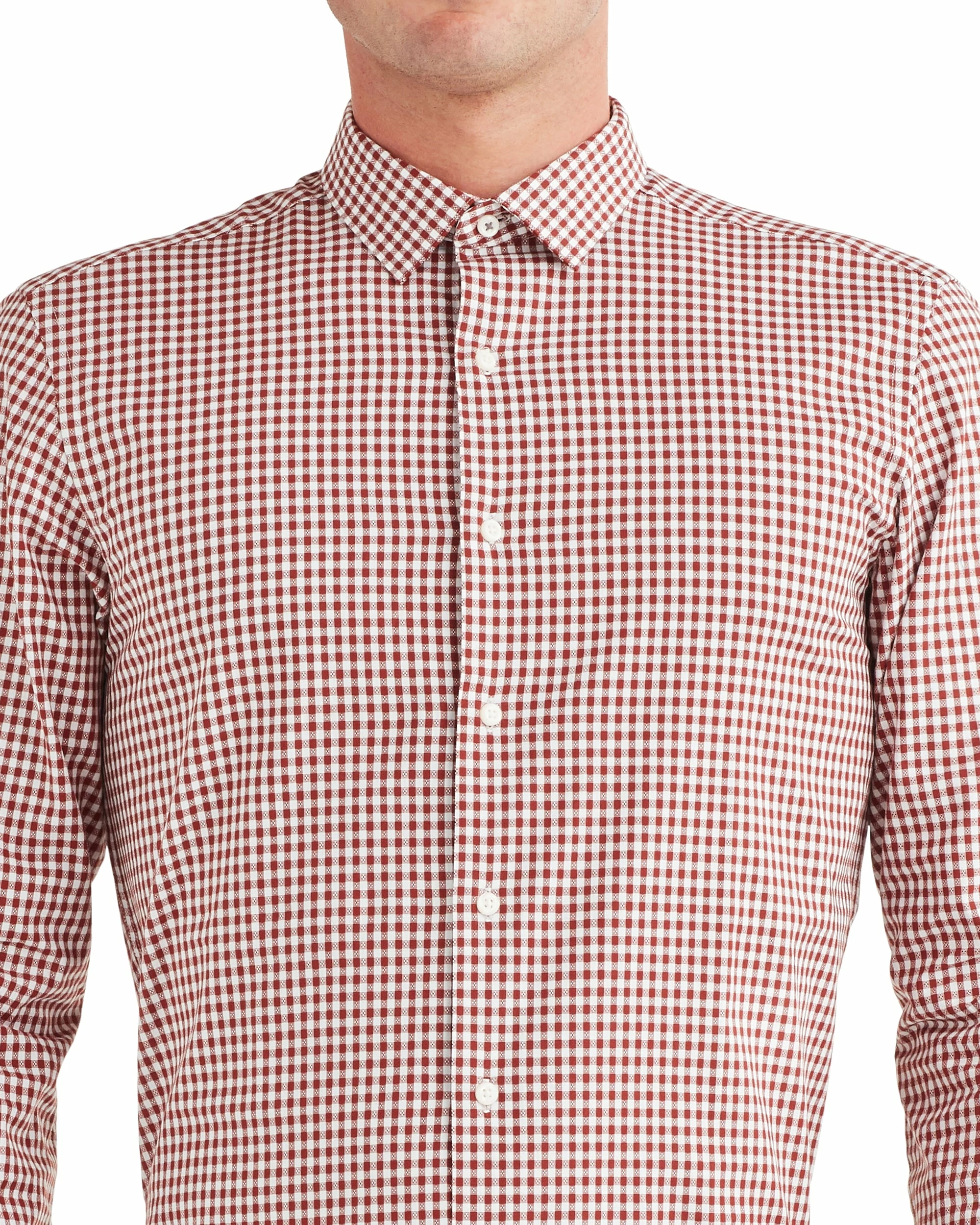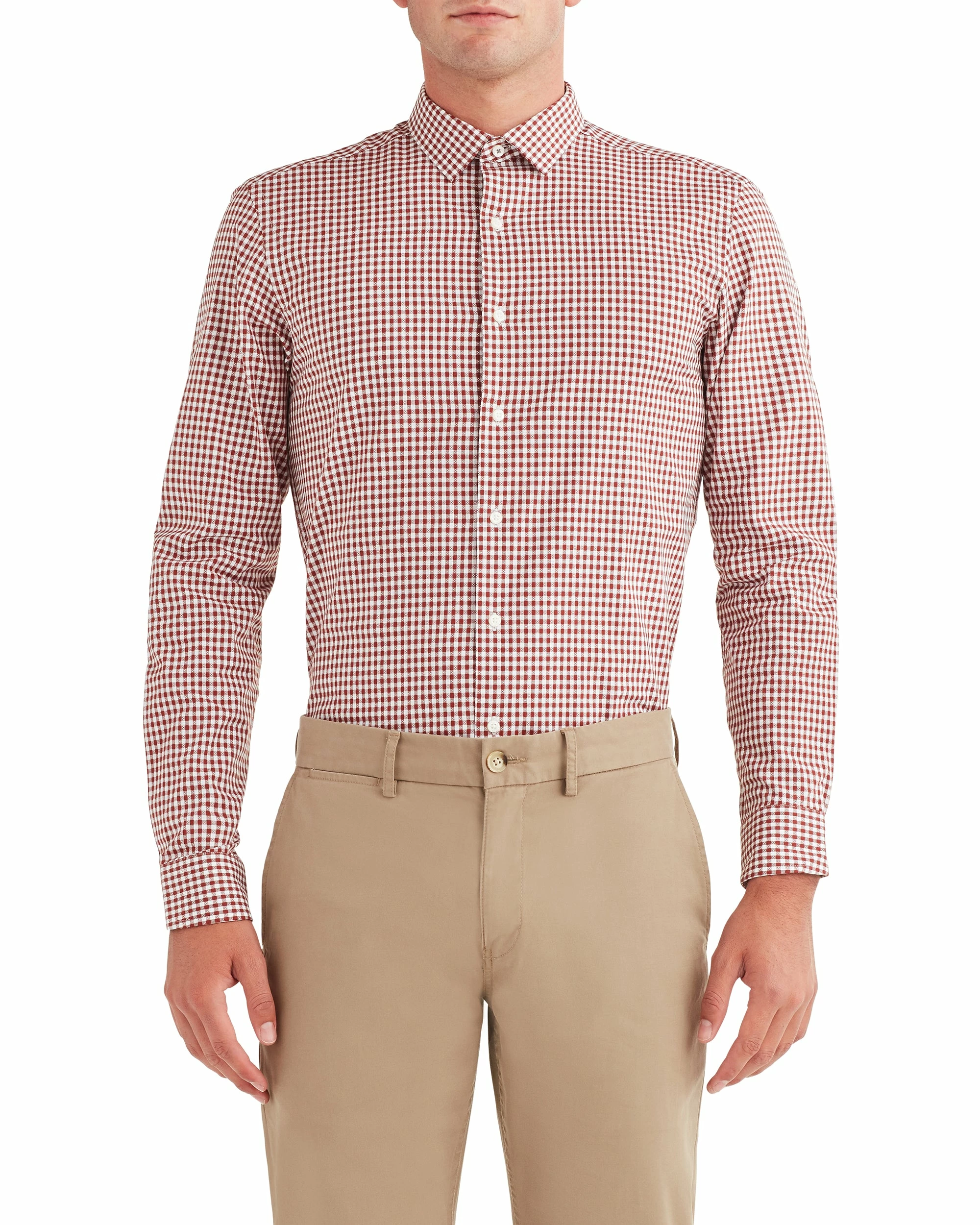 The Spice Dobby Gingham Dress Shirt is cut to a slim fit with 100% cotton and dobby texturing. The spice-hued pattern gives an instant wardrobe update for fall and winter.