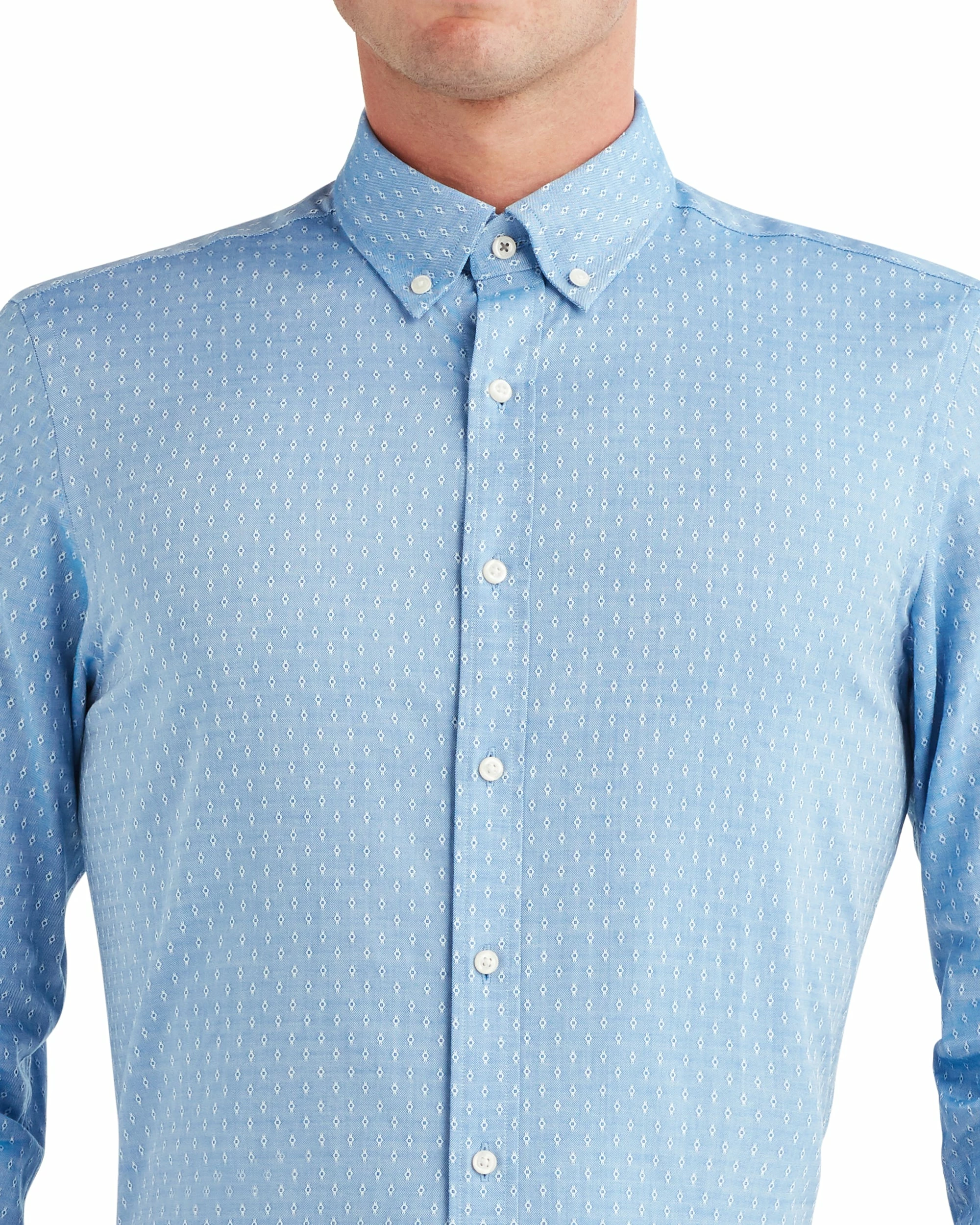 The Blue Dobby Oxford Dress Shirt is cut to a slim fit with 100% cotton and dobby texturing. The elevated classic pairs effortlessly with any of our tailoring pieces.