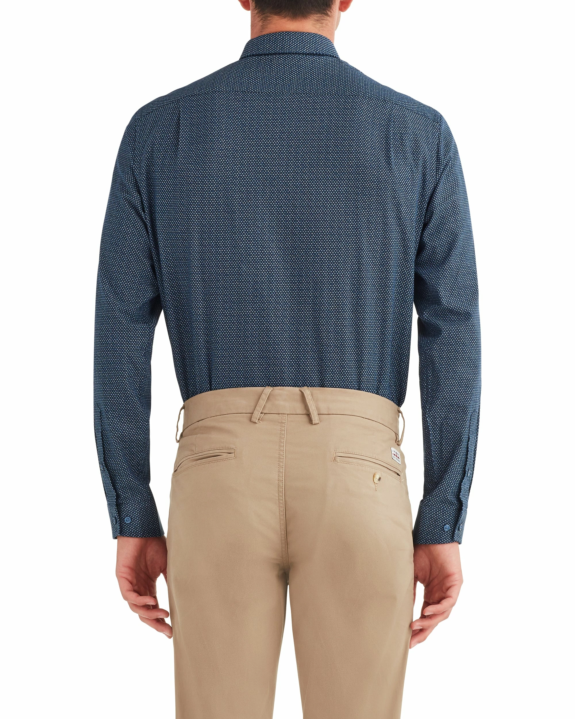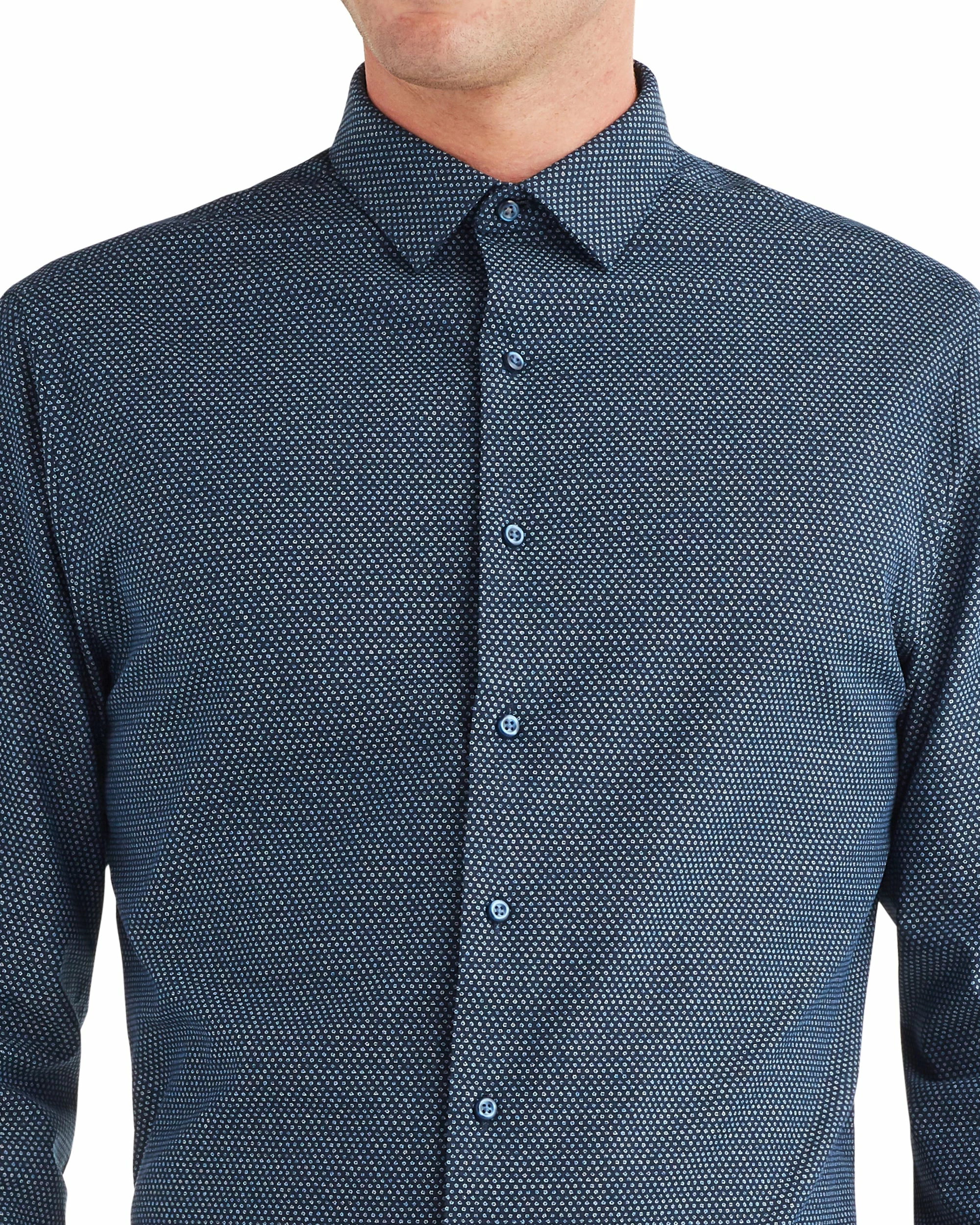 The Navy Dot Printed Oxford Dress Shirt adds a pop of print to your tailored look. The dress shirt is cut to a slim fit in 100% cotton.