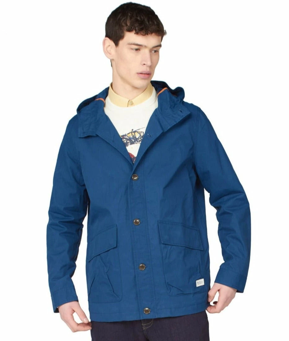 This Everyday Anorak Lightweight Jacket in a cotton/nylon fabric comes in a classic, regular fit and features button-up fastening with six mock-corozo buttons, two center-front bellow patch pockets, contrast internal cotton binding, and a Ben Sherman woven badge.