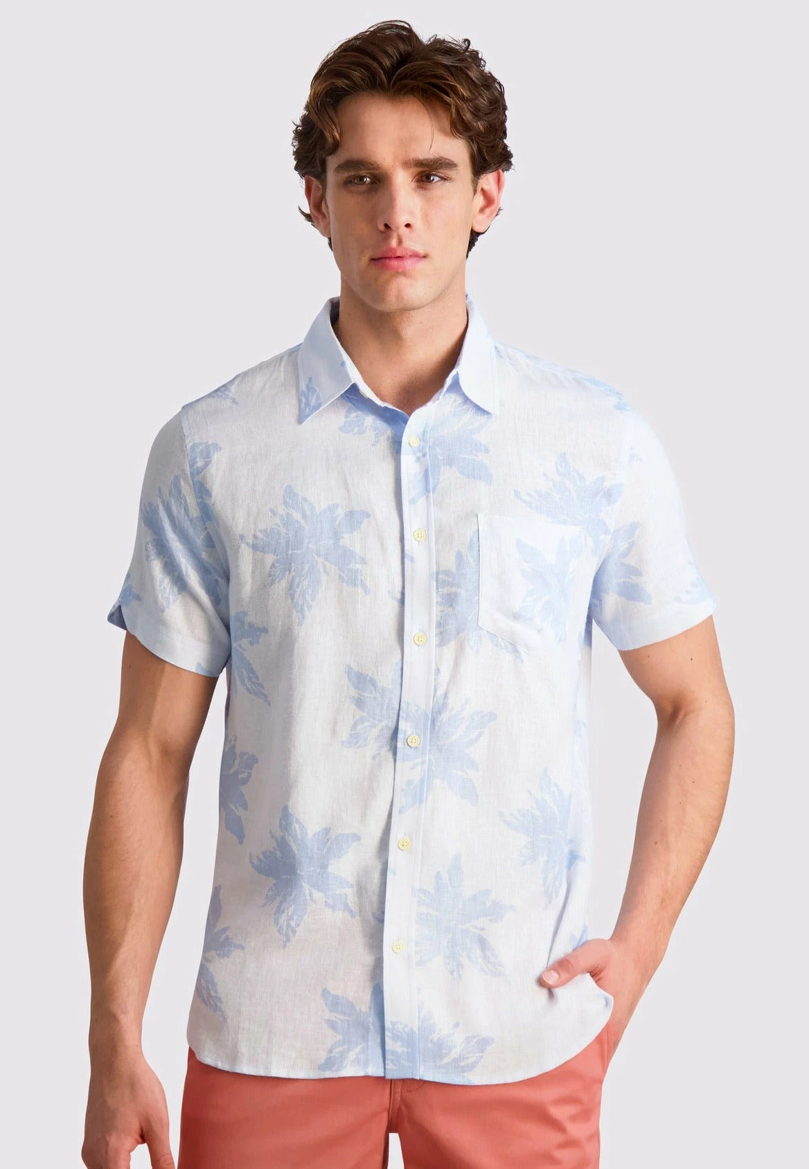 Introducing the Exploded Flower Print Short Sleeve Shirt in Light Blue by Ben Sherman. With its captivating floral design, premium comfort, and versatile style, this shirt is perfect for making a fashion statement. Crafted with high-quality materials and a button-down collar, it ensures both comfort and convenience.