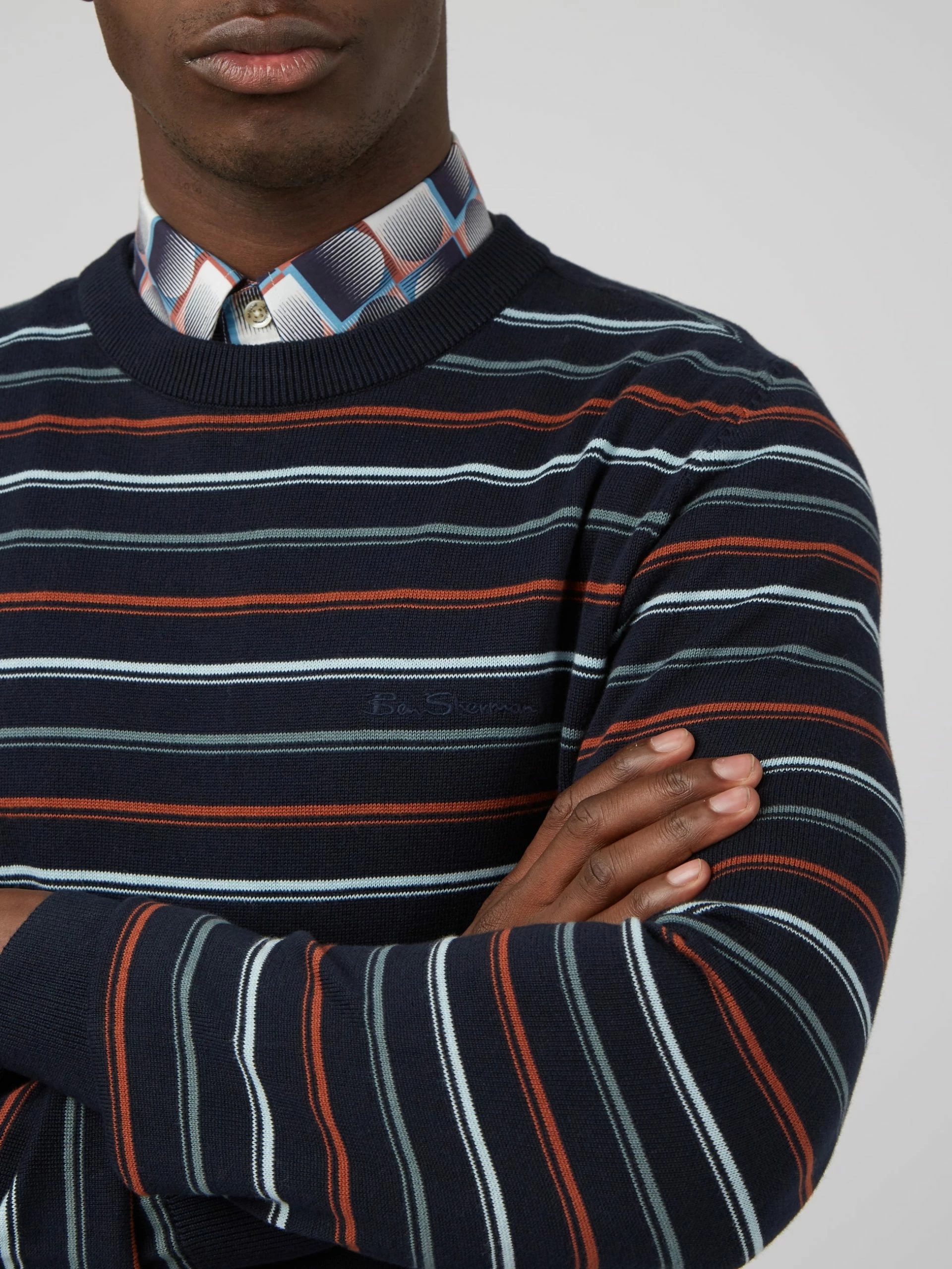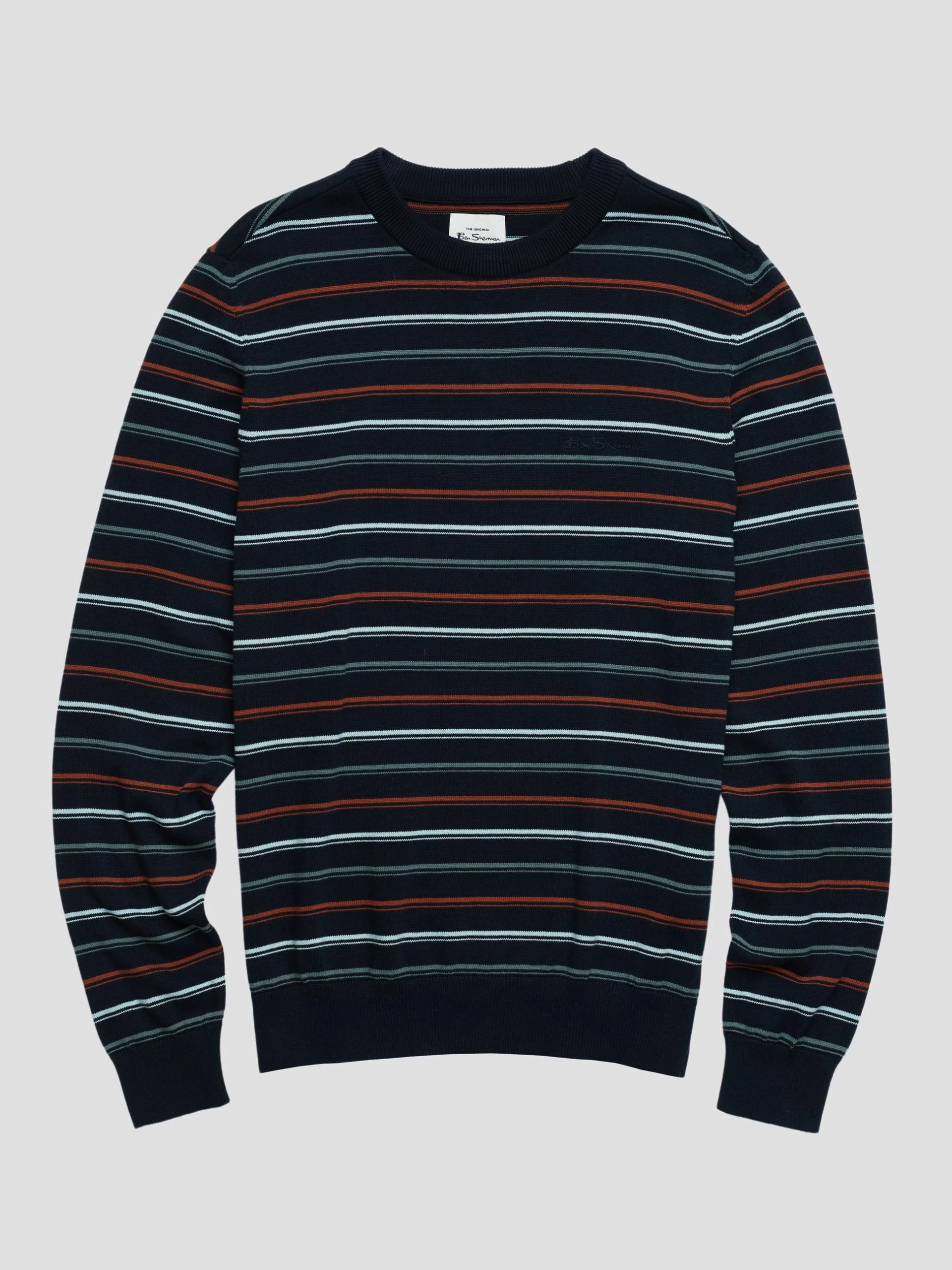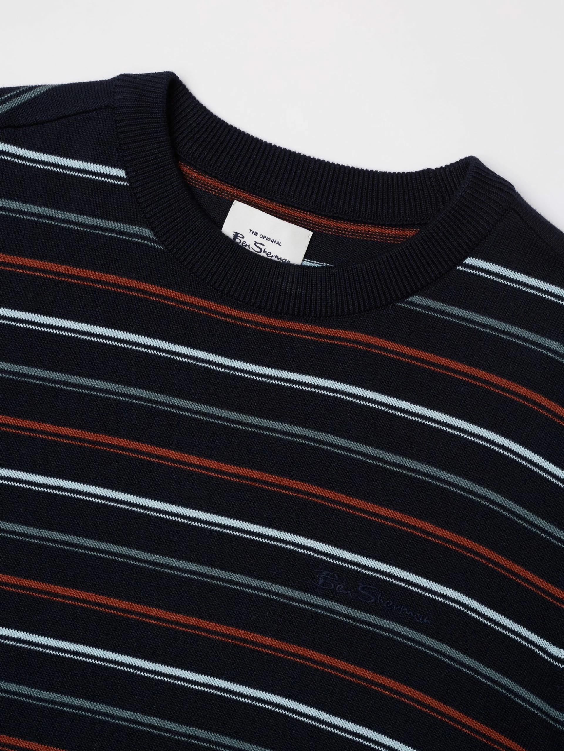 Striped cotton crew neck designed with fine contrast stripes running throughout. The design stands out on this piece, with subtle branding in the form of a tonal Ben Sherman signature embroidery to the chest.