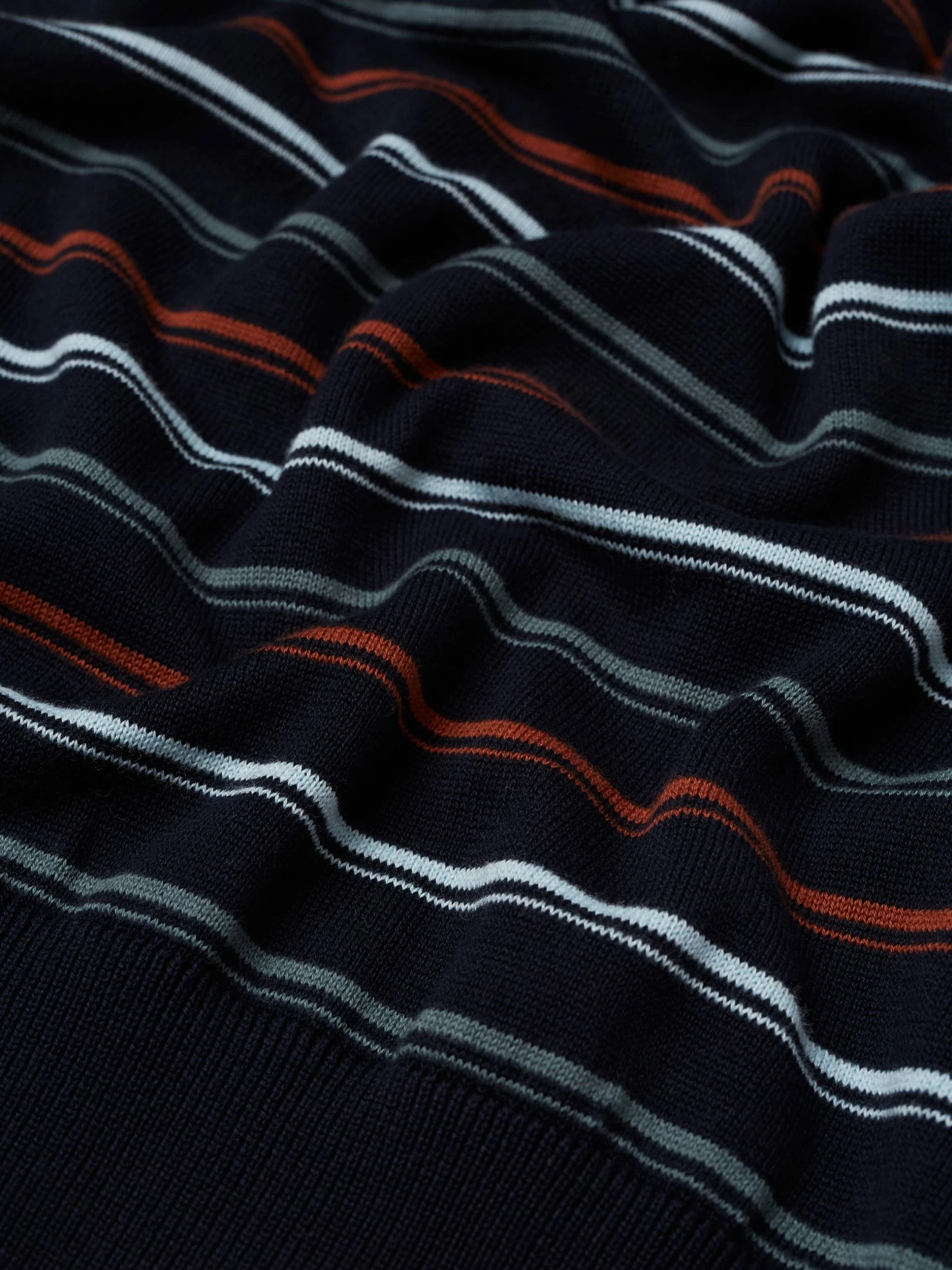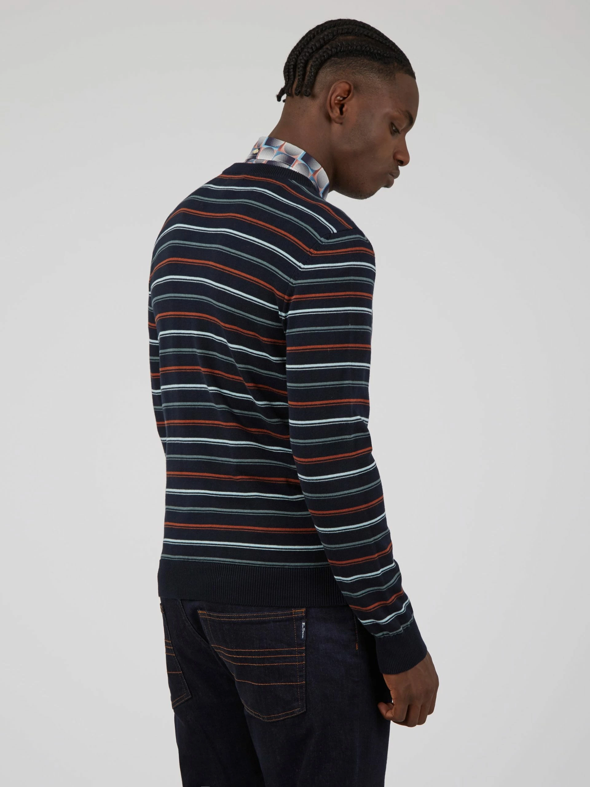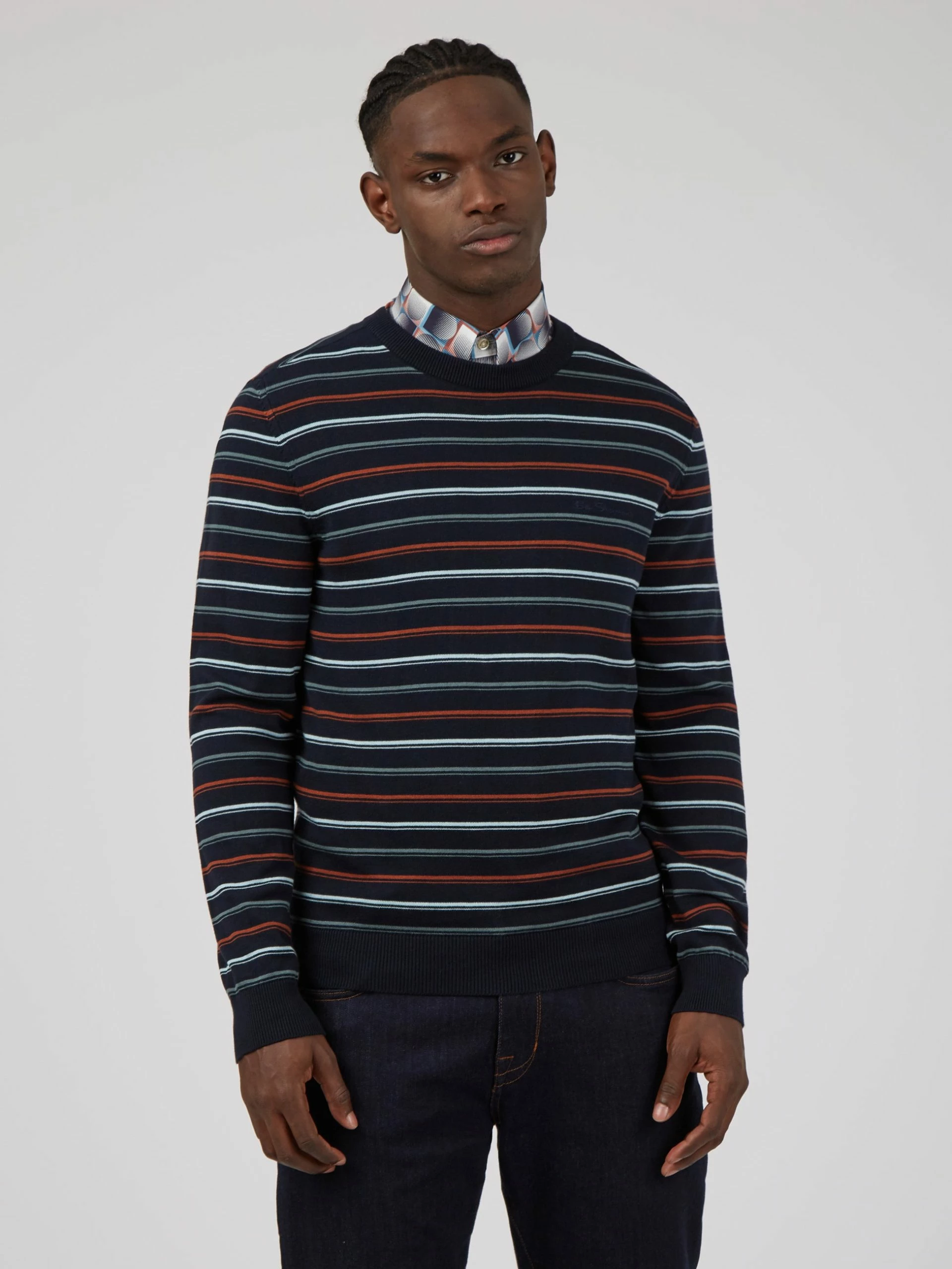 Striped cotton crew neck designed with fine contrast stripes running throughout. The design stands out on this piece, with subtle branding in the form of a tonal Ben Sherman signature embroidery to the chest.
