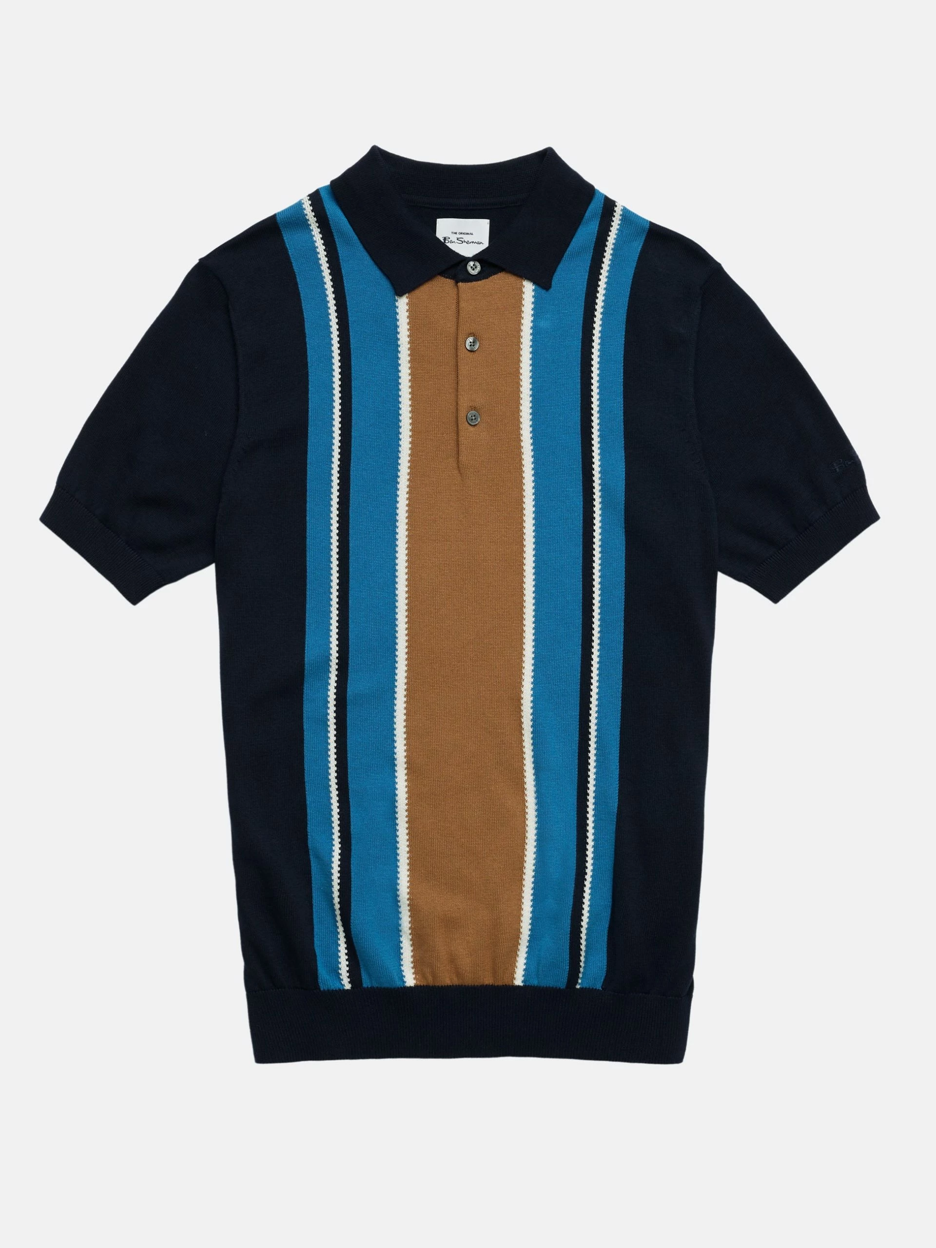 Our signatureĀ knitted polo is designed with a verticalĀ stripe on the front and a raised texture for added interest. This mod polo is branded with a tonal signature “Ben Sherman” sleeve embroidery.