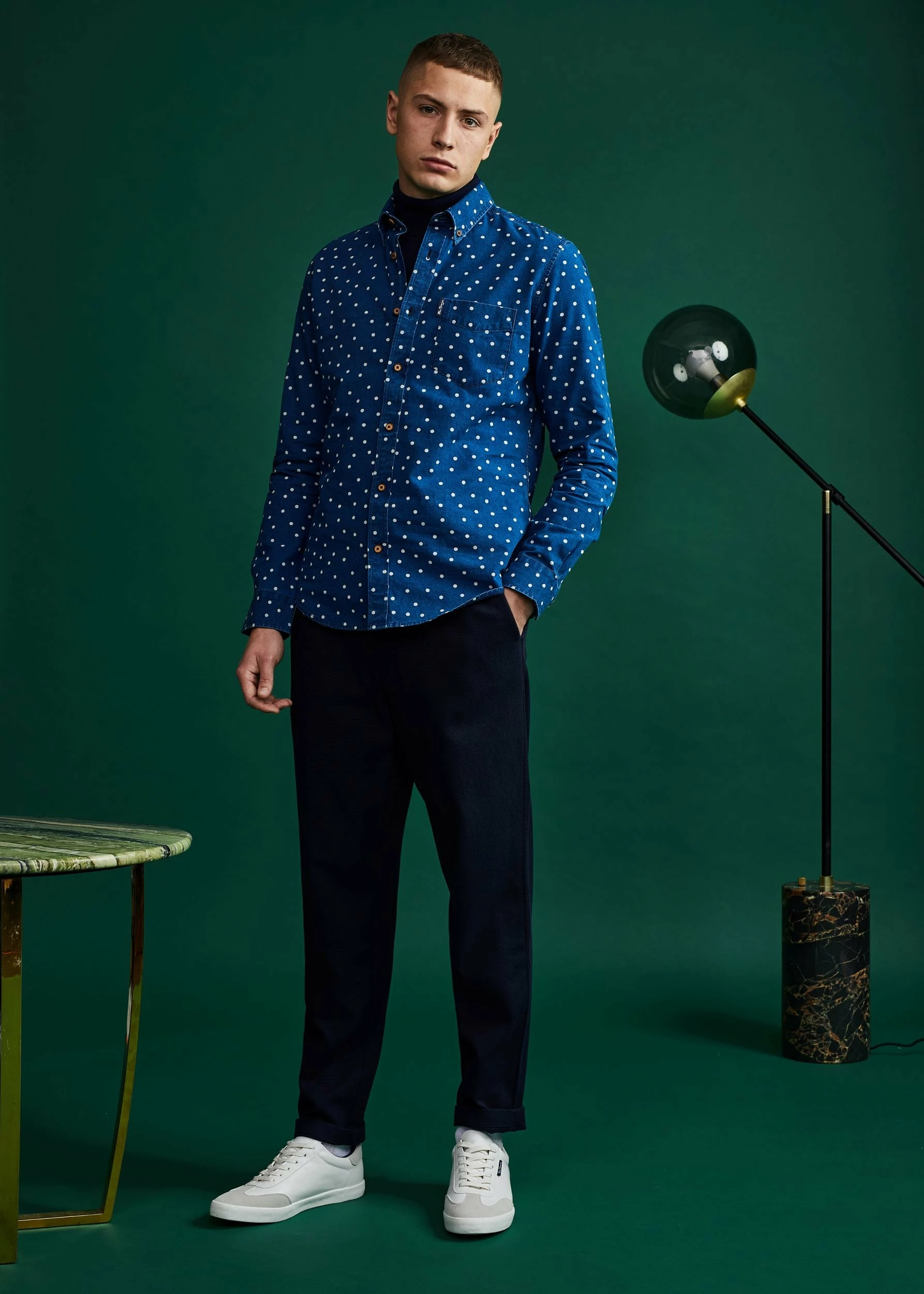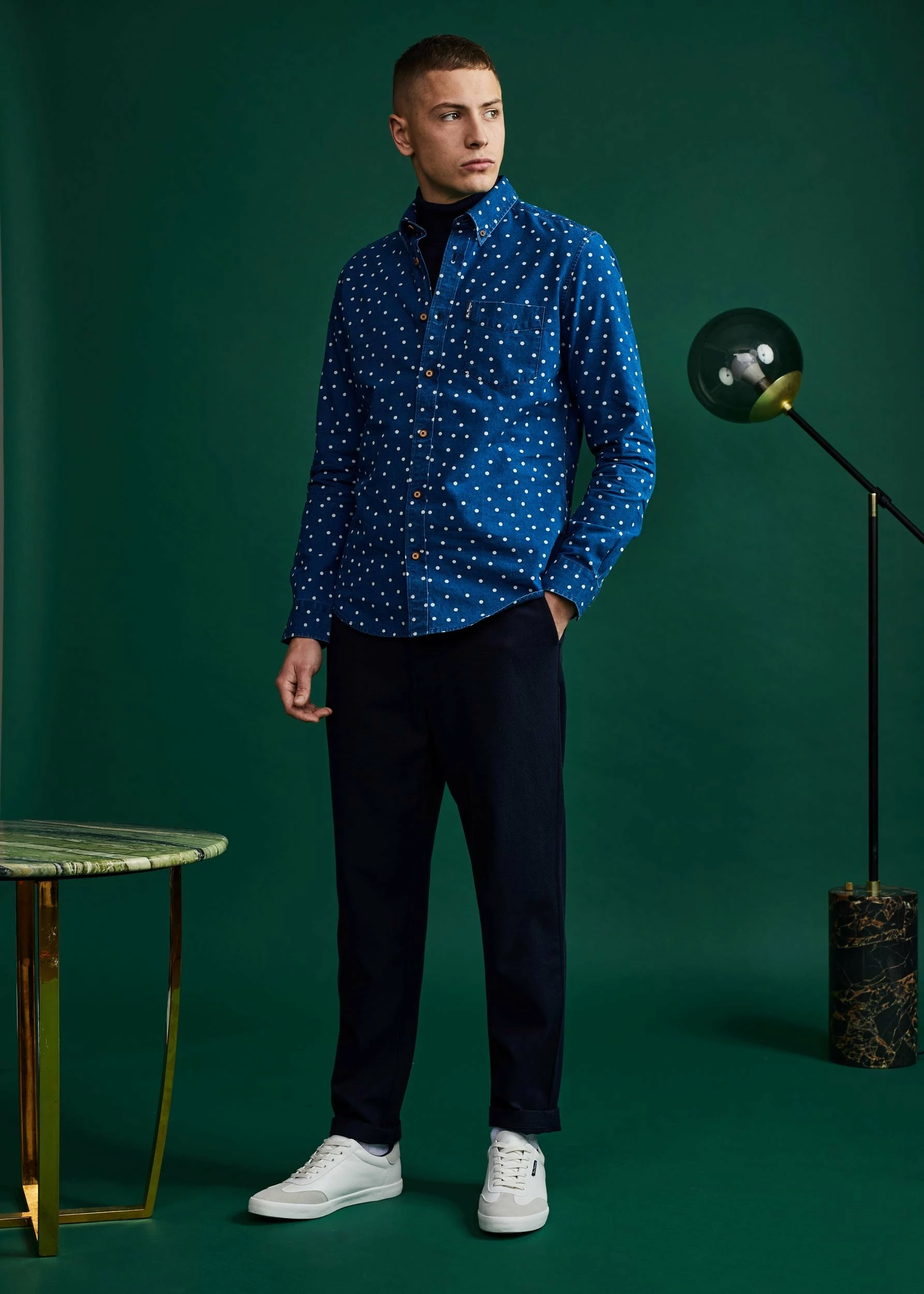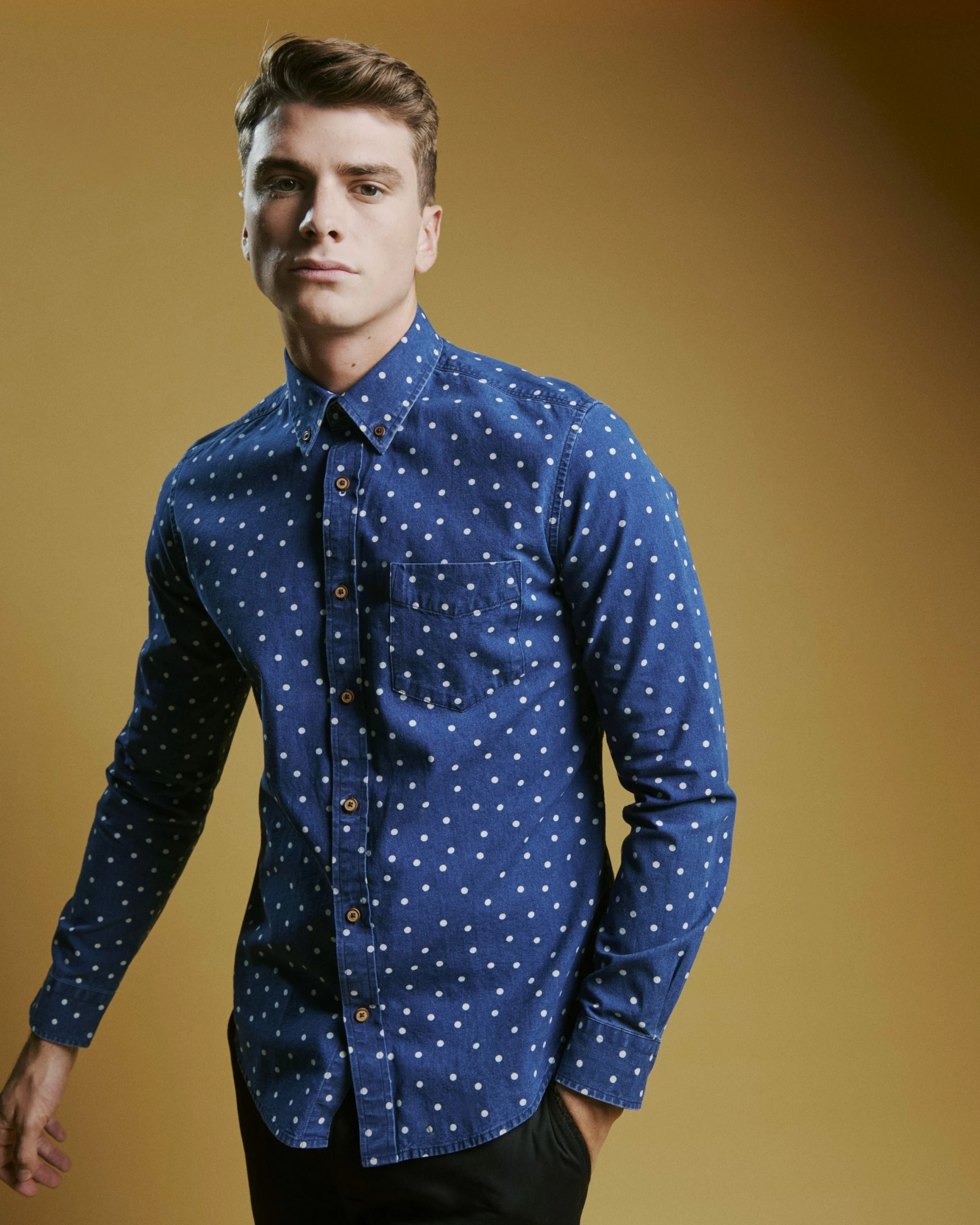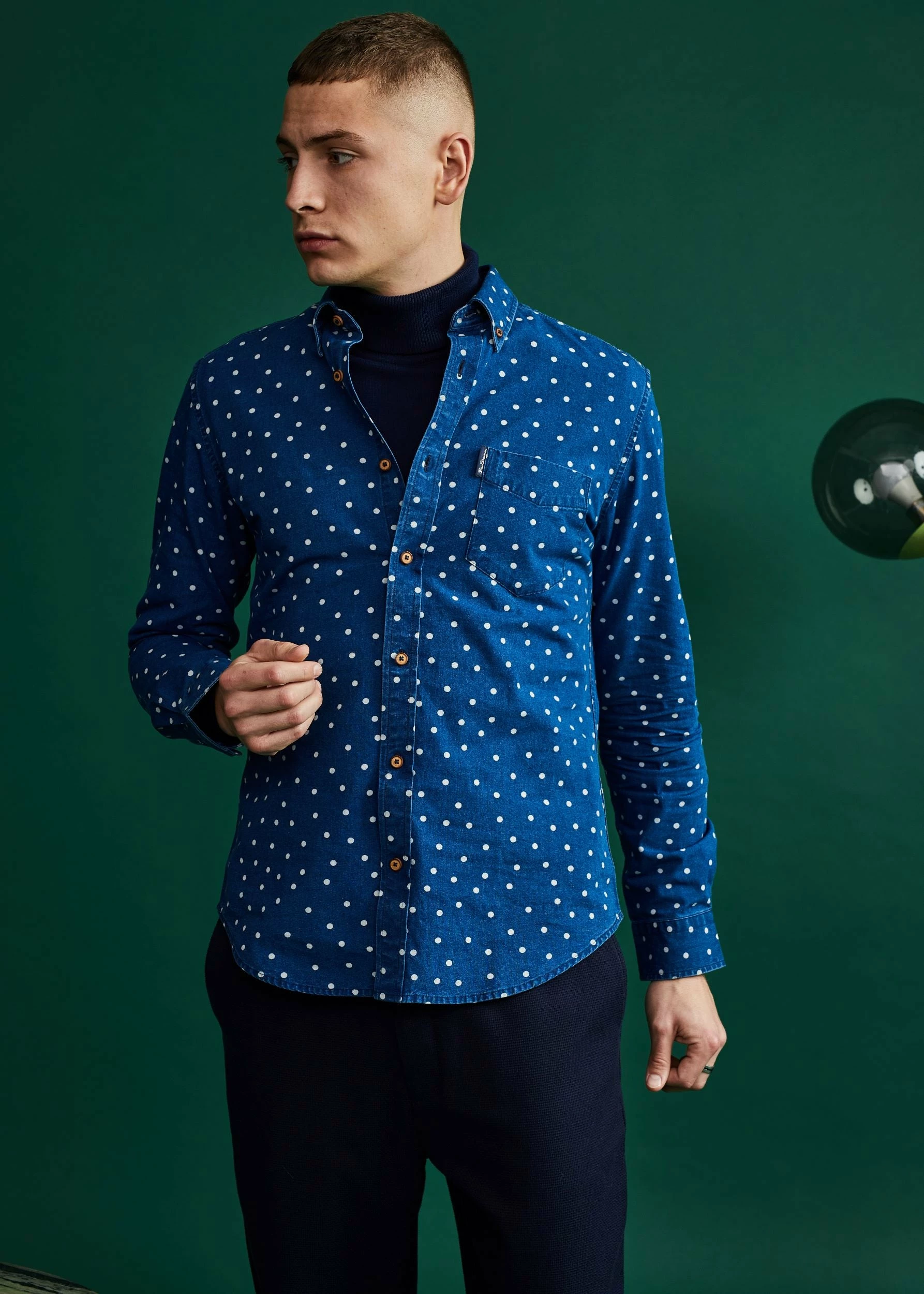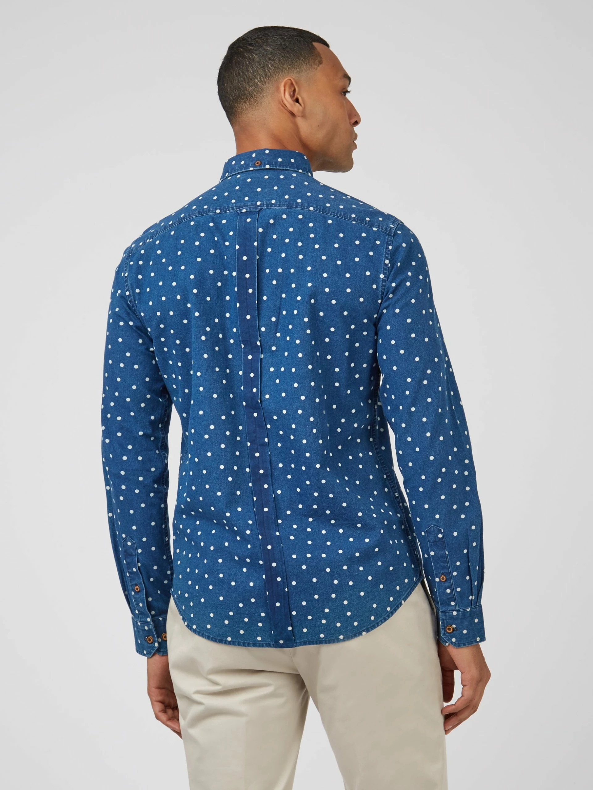 This Ben Sherman indigo spot print long sleeve shirt comes in a regular fit and features a 2 finger button down collar. Made from 100% Cotton.