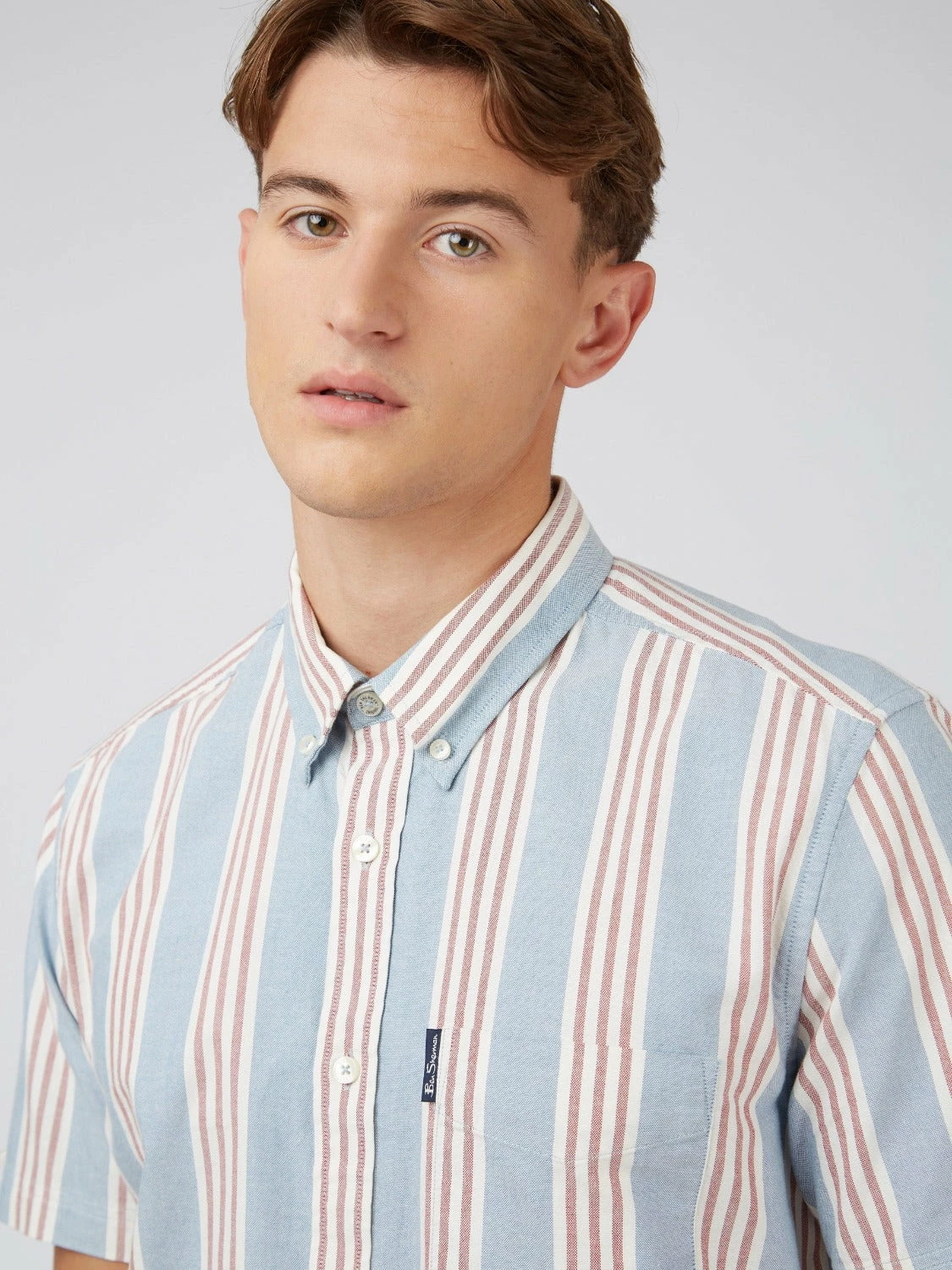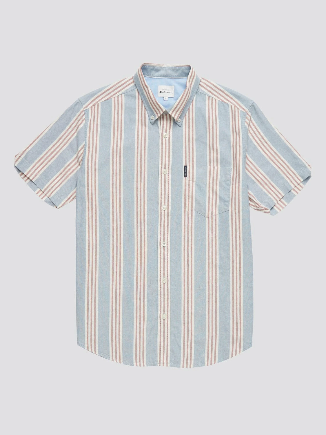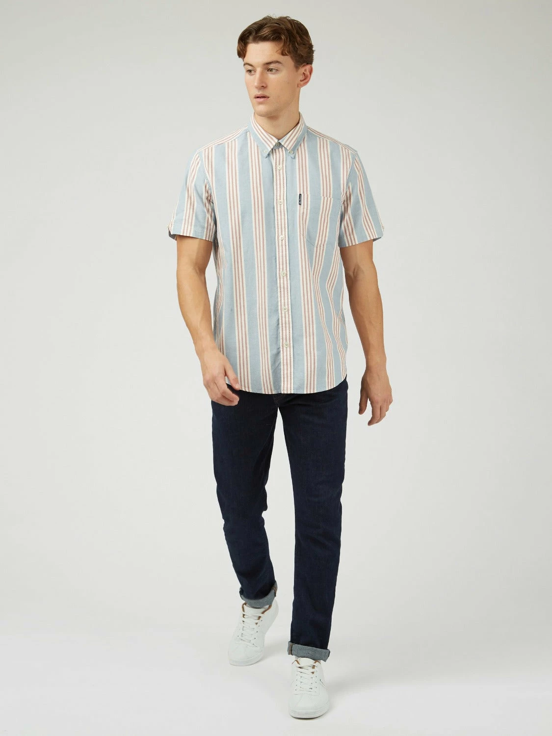 This classic fit shirt is designed with a block stripe weave. Featuring a curved hem, two finger button down collar and a Ben Sherman branded woven tab on the chest pocket. Made from 100% cotton.