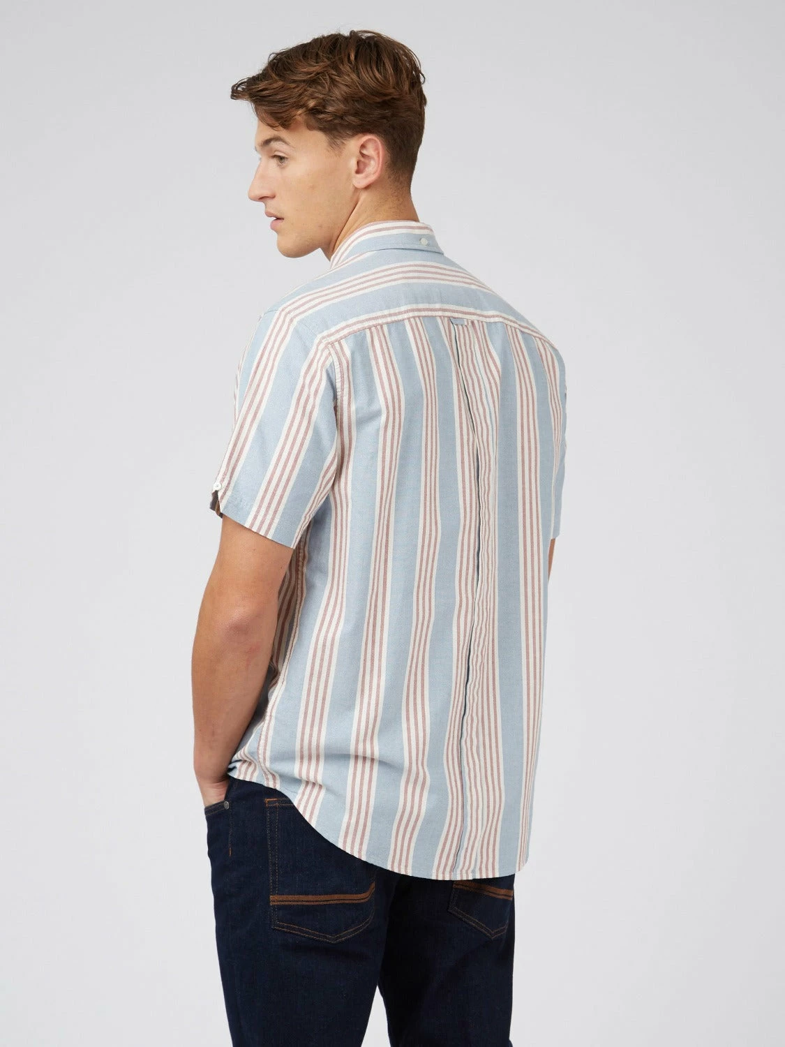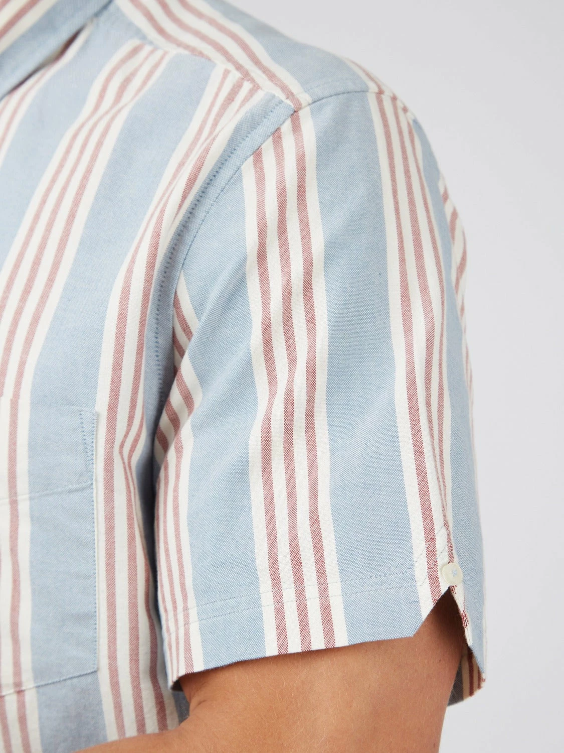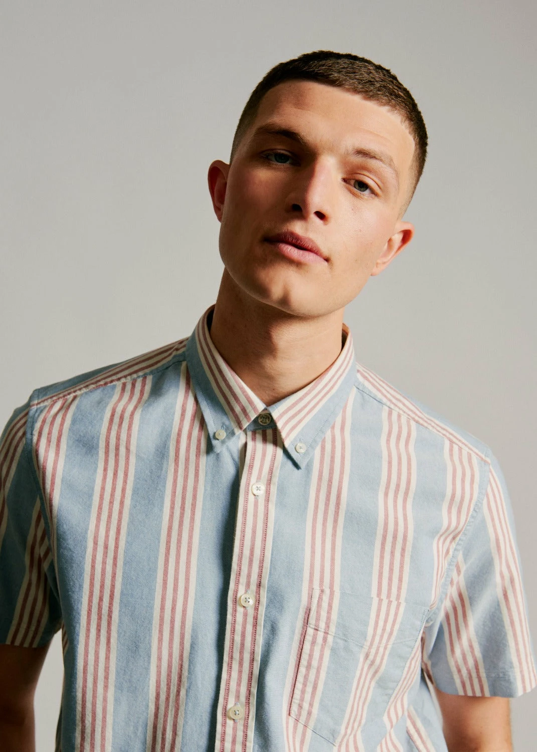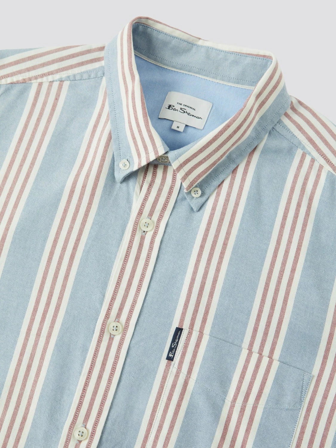 This classic fit shirt is designed with a block stripe weave. Featuring a curved hem, two finger button down collar and a Ben Sherman branded woven tab on the chest pocket. Made from 100% cotton.