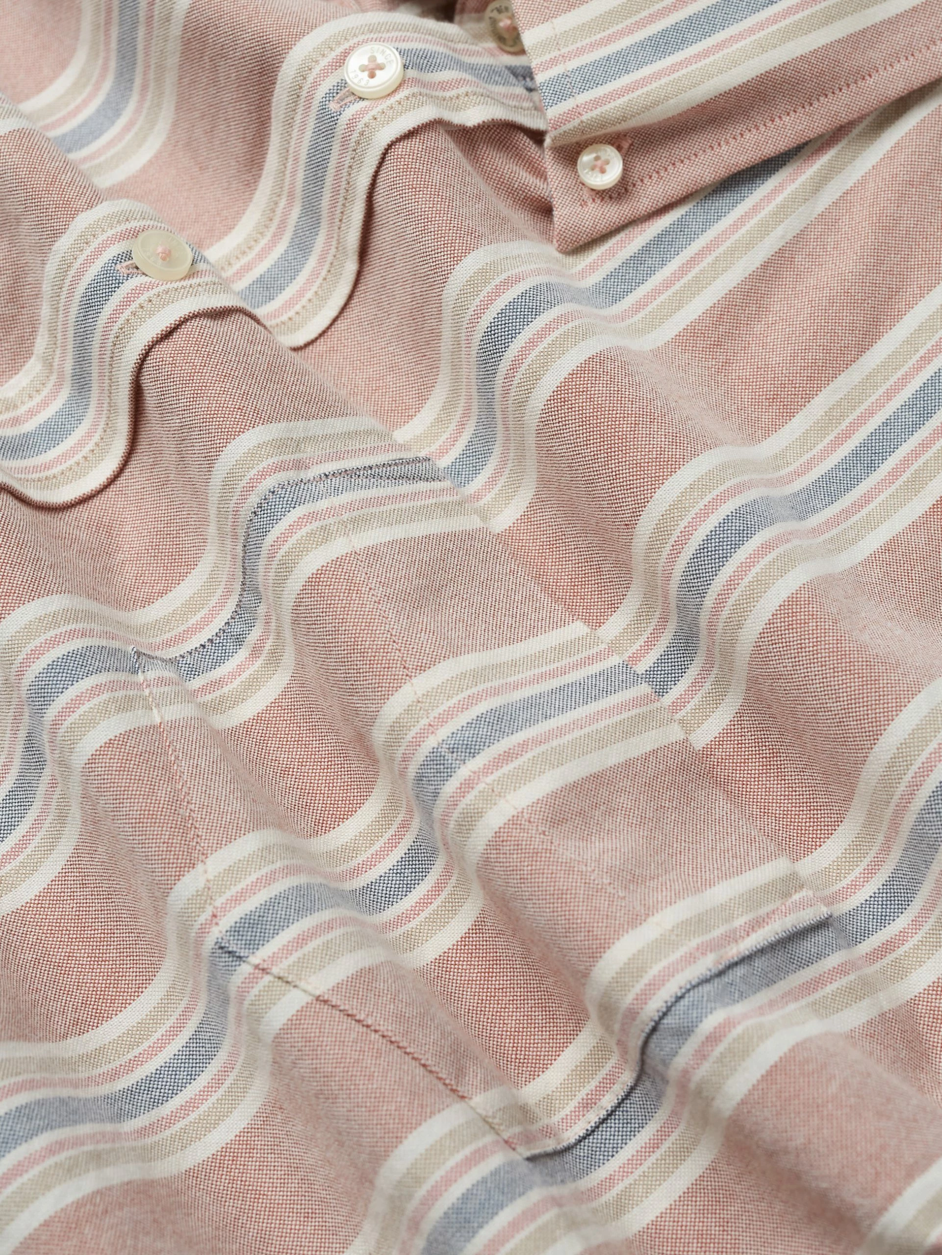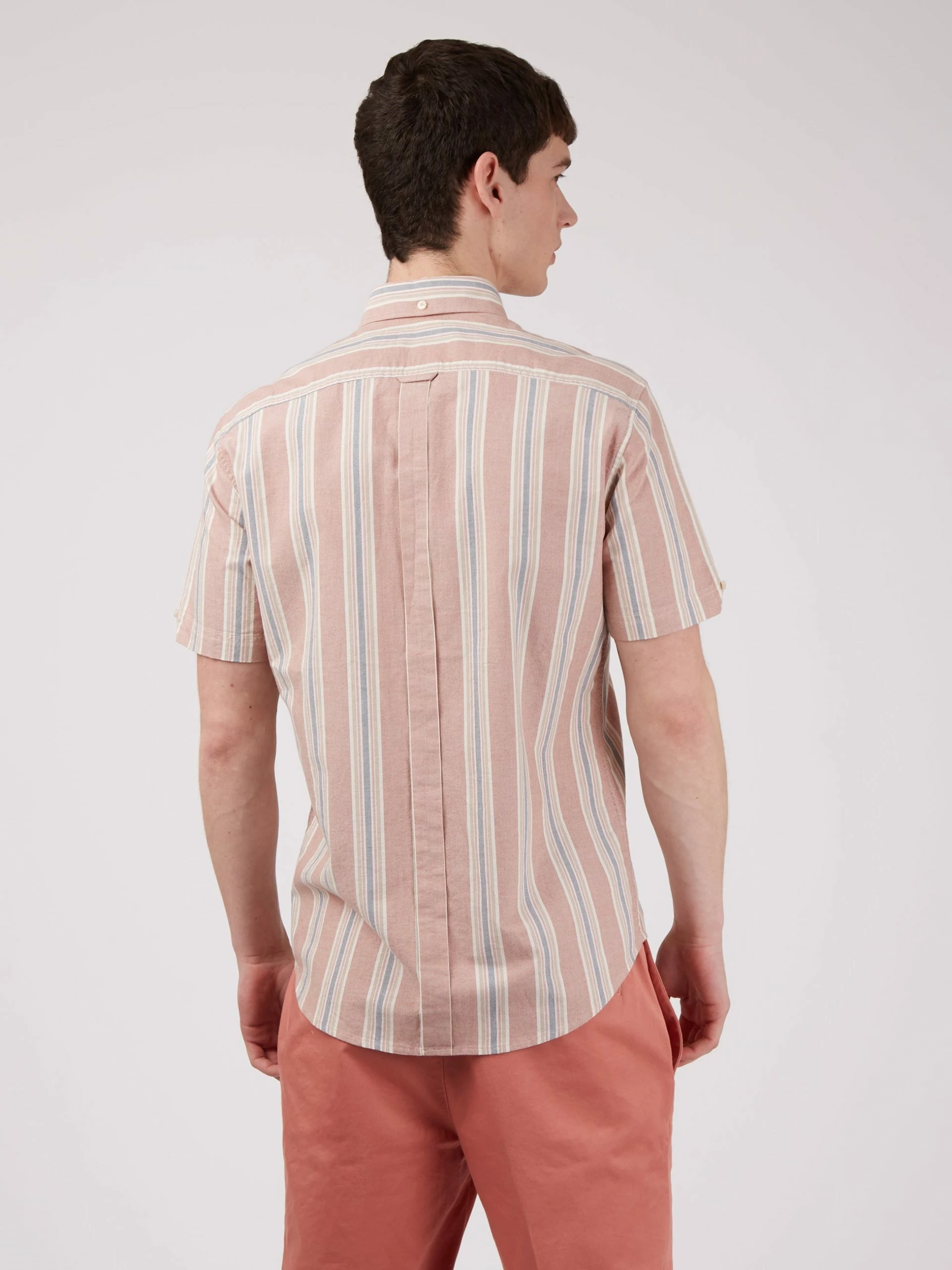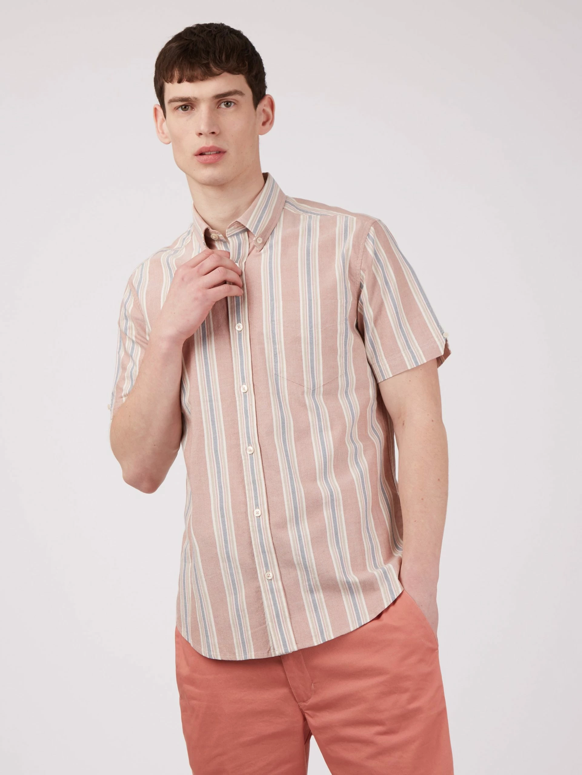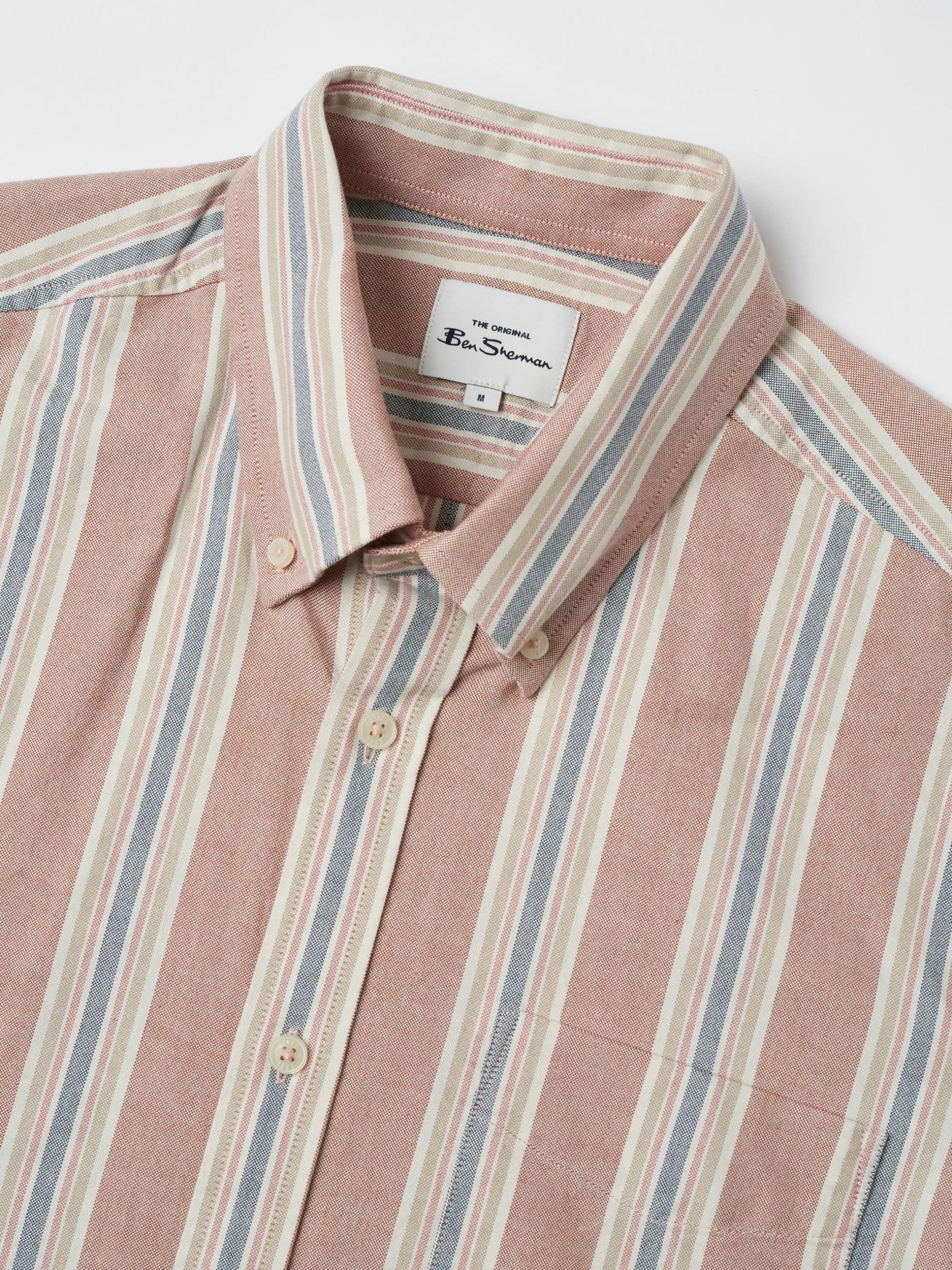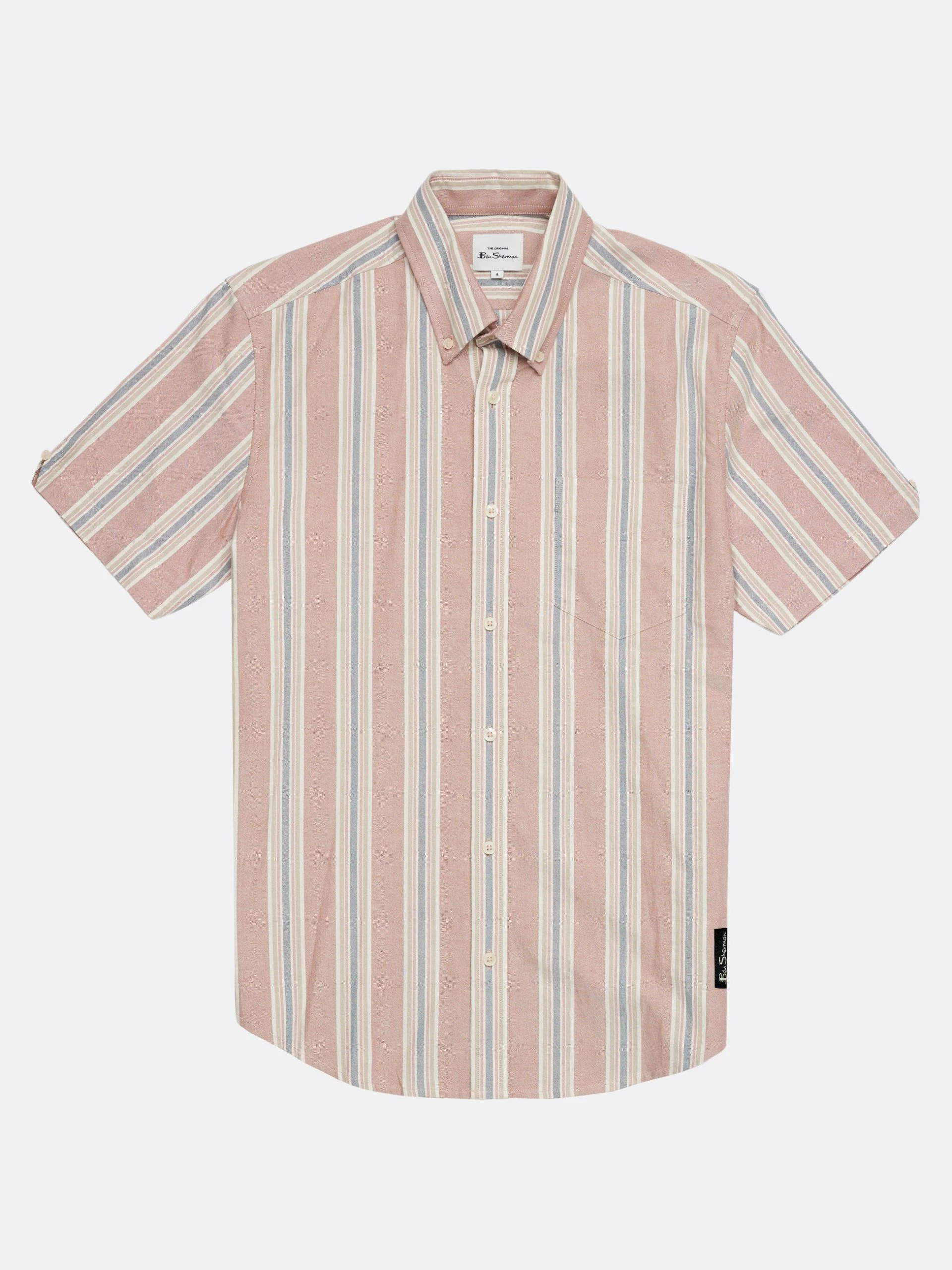 A short sleeve summer shirt in 100% cotton oxford designed in a block stripe. Features include a 2 finger button down collar and a chest pocket. Branded with the Ben Sherman woven pocket tab.