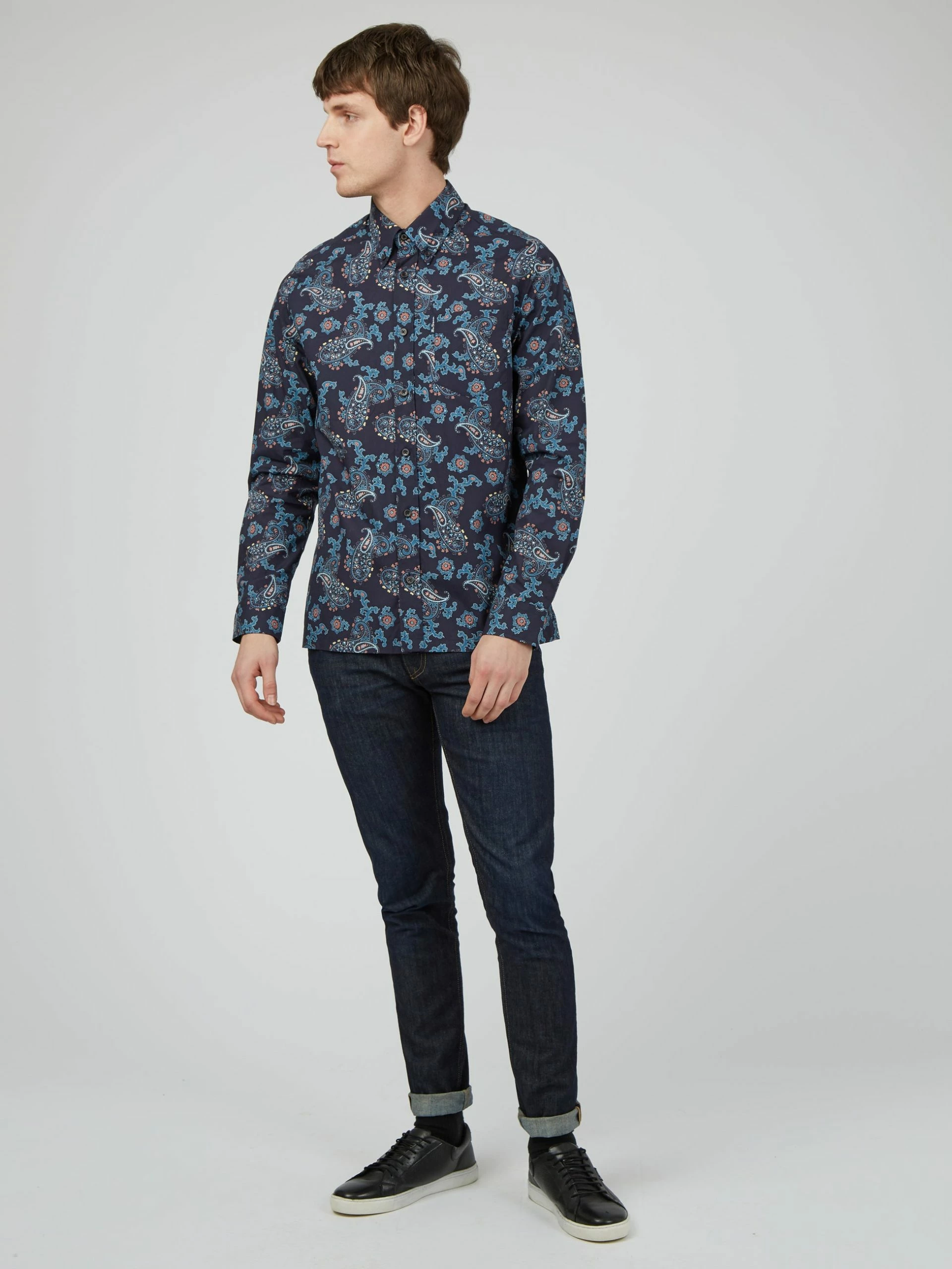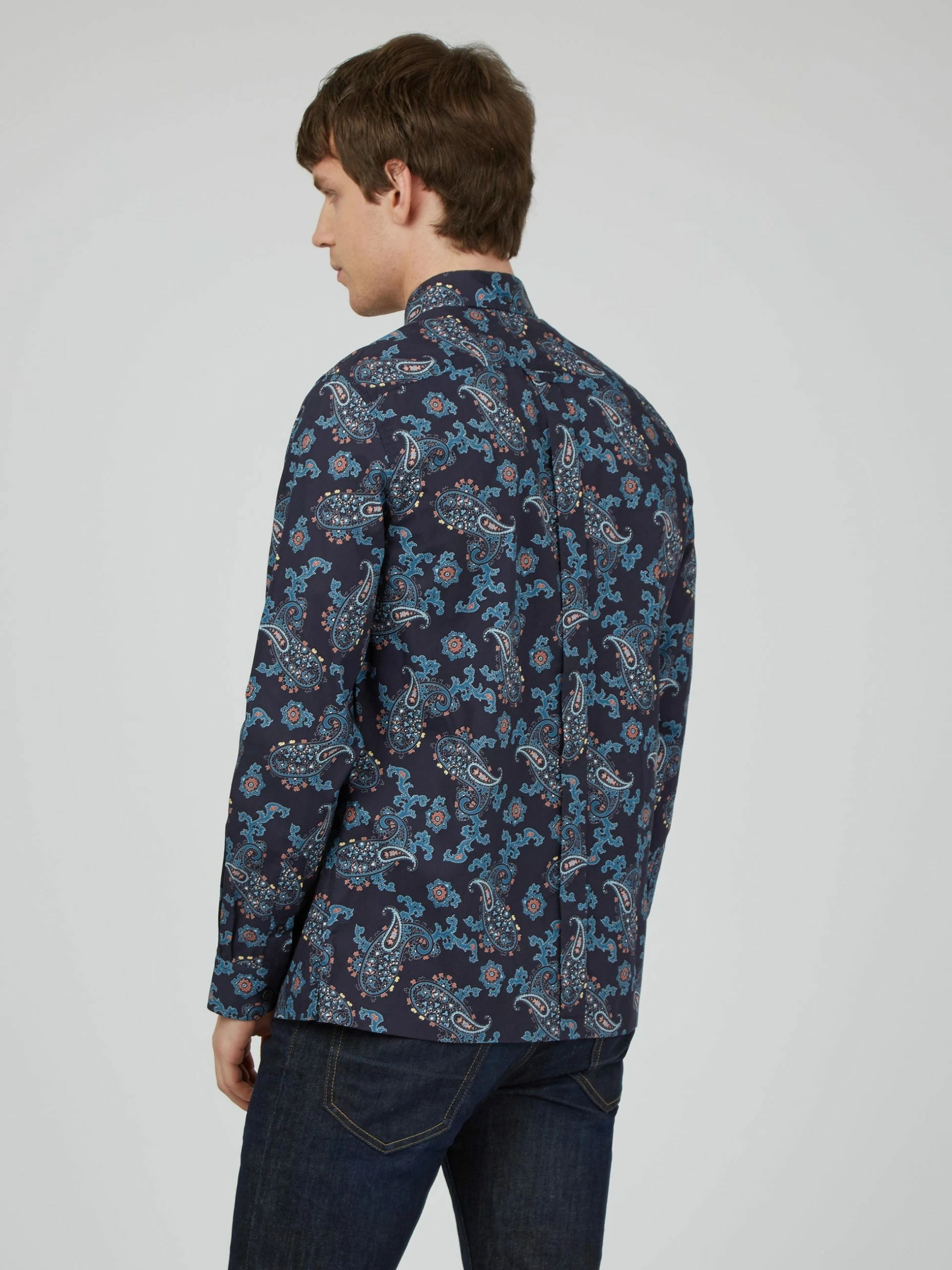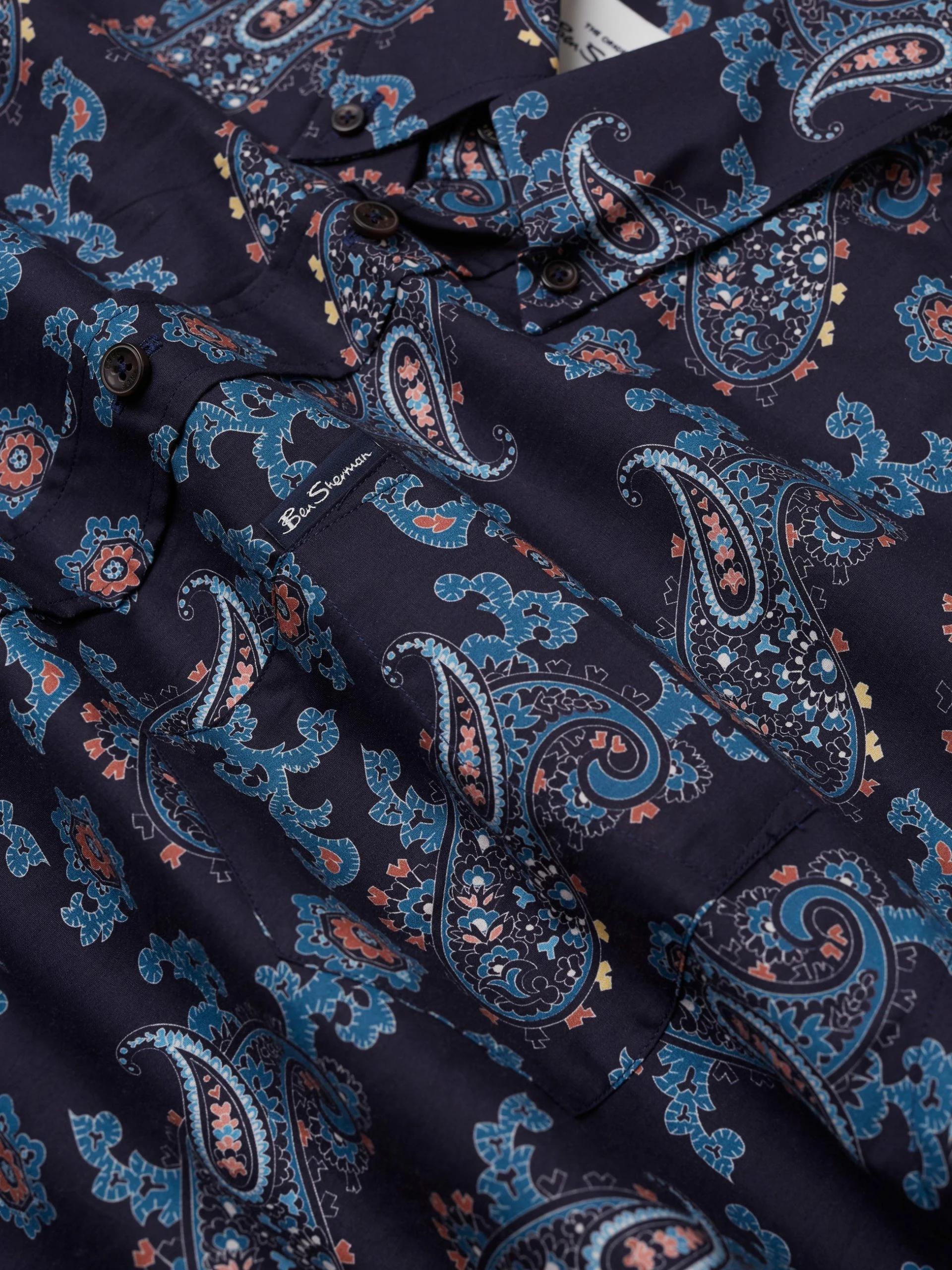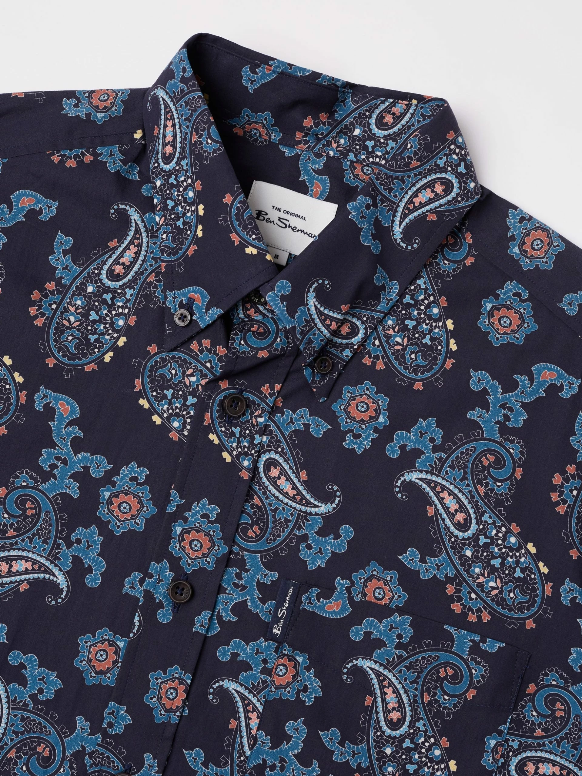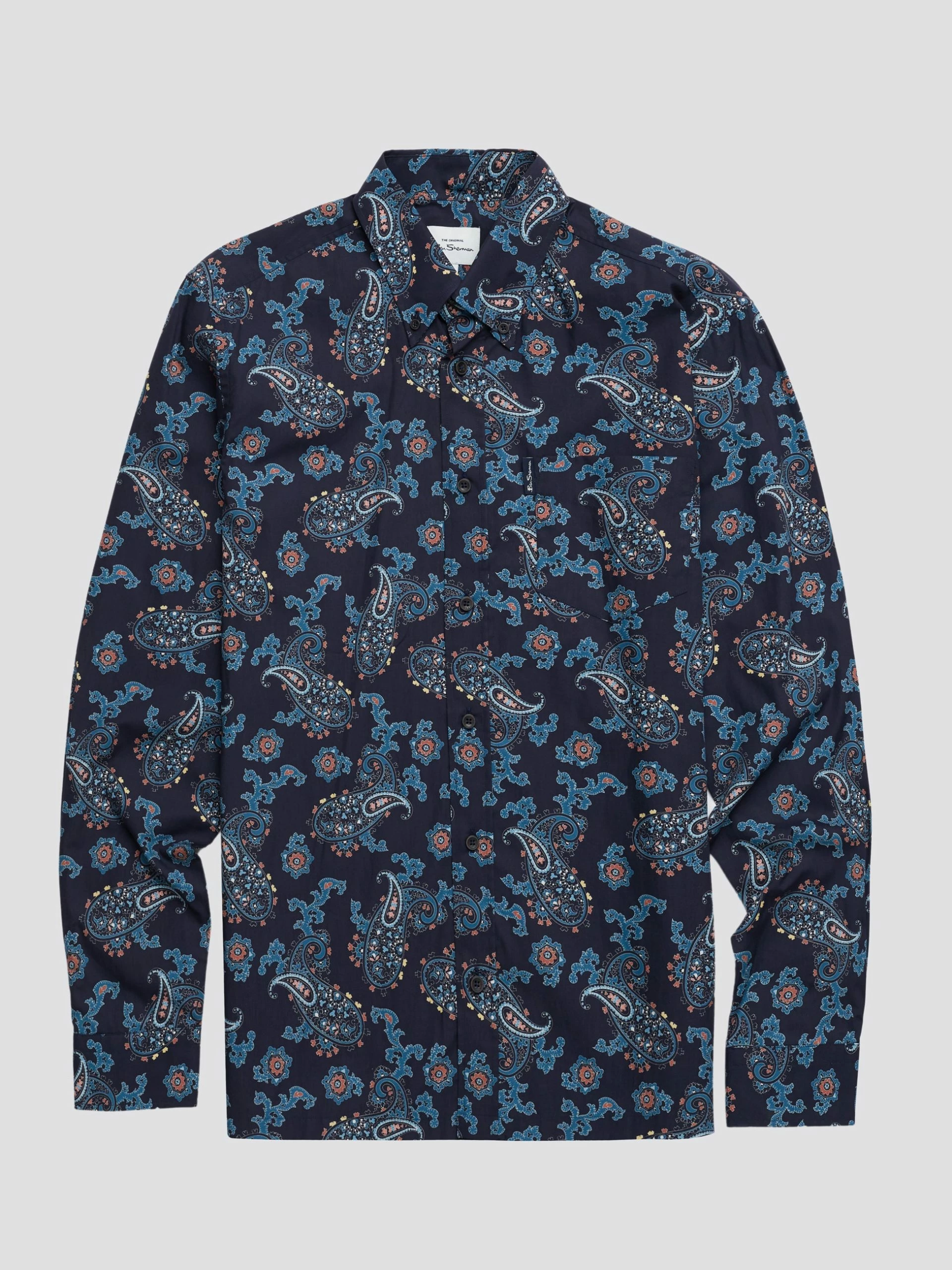 A long sleeve shirt designed in a large paisley print that comes in a regular fit and features a 3 finger button down collar. Complete with a patch pocket at the chest and branded with the Ben Sherman woven pocket tab. Made from 100% cotton.