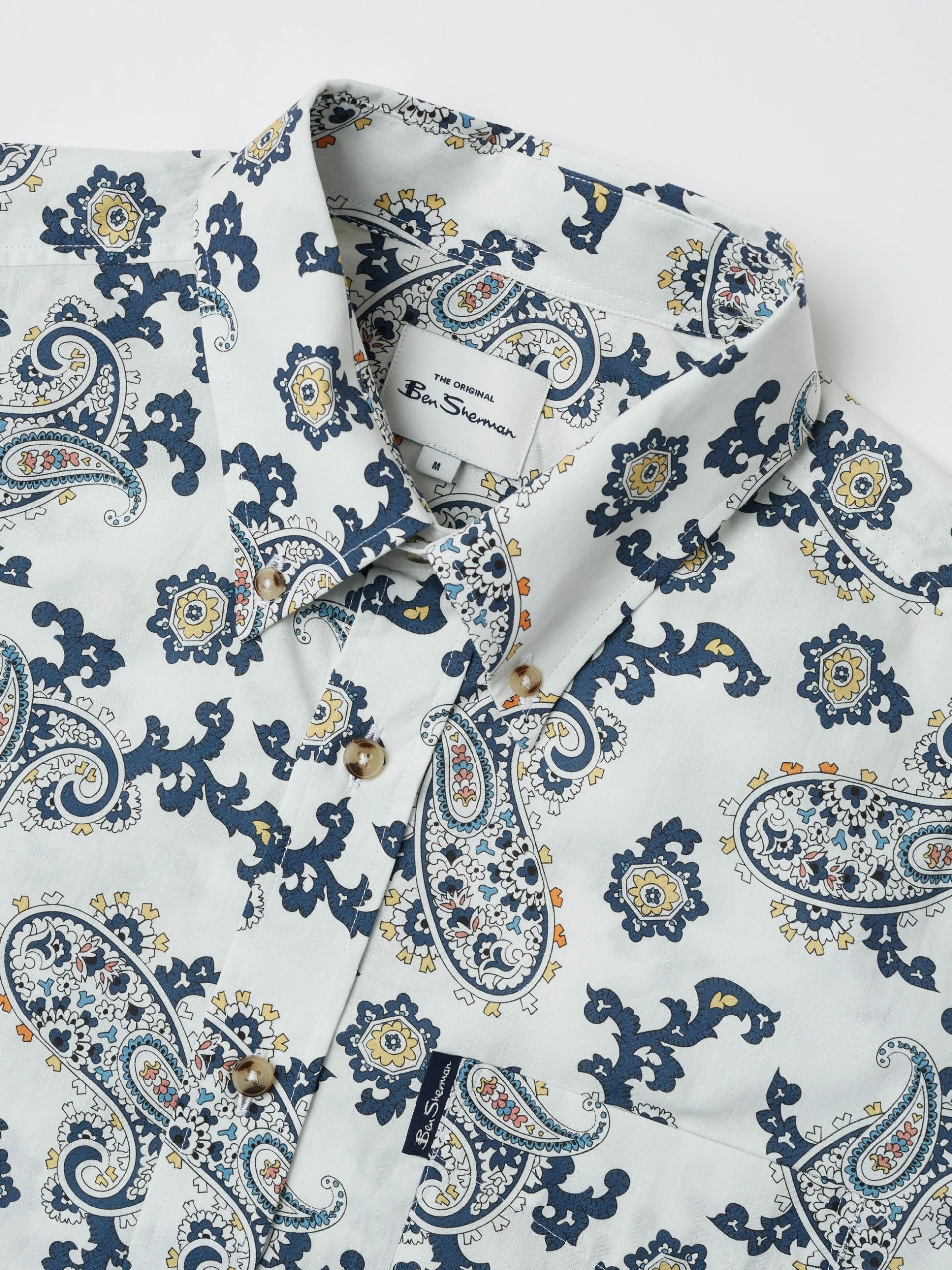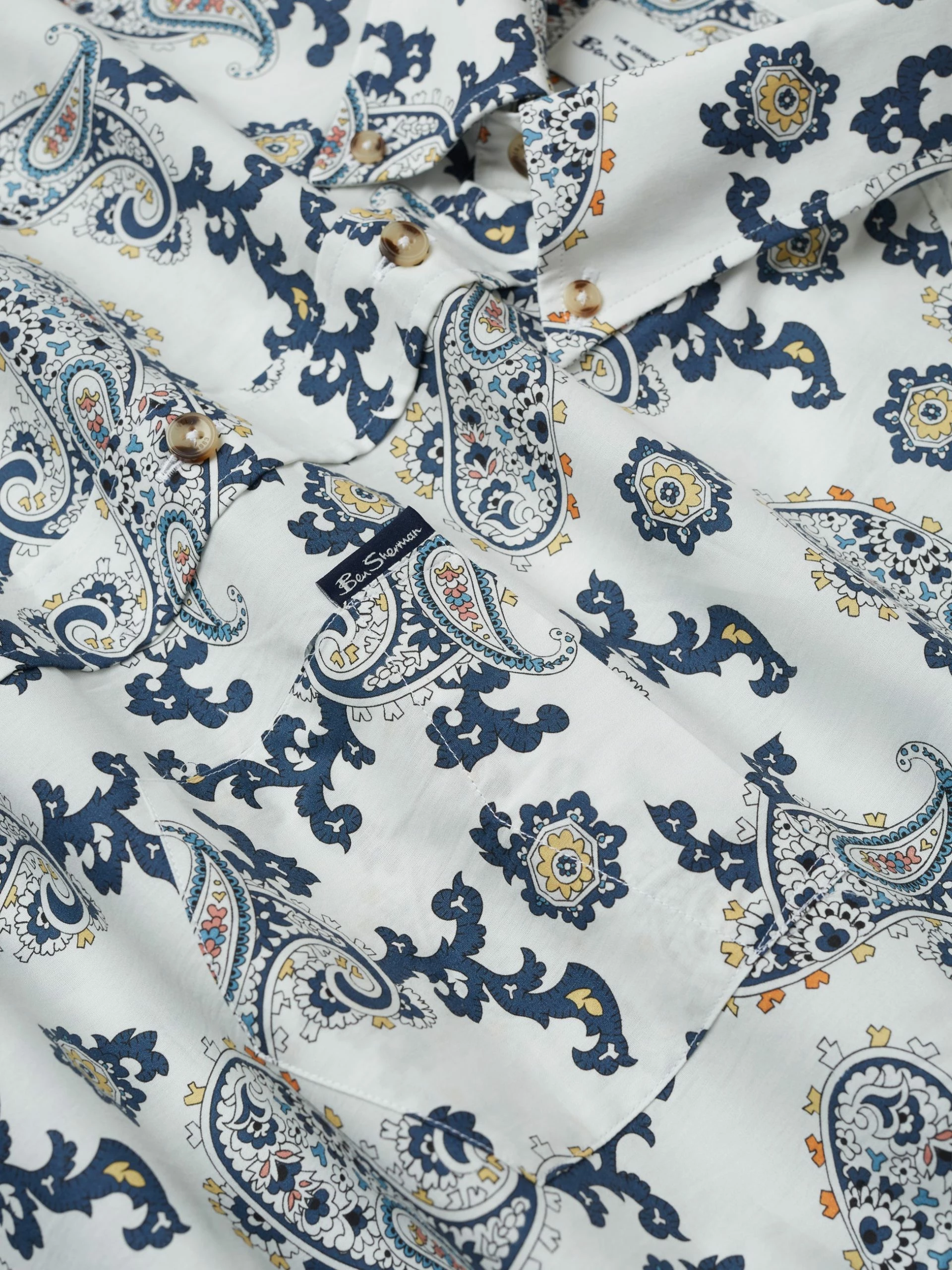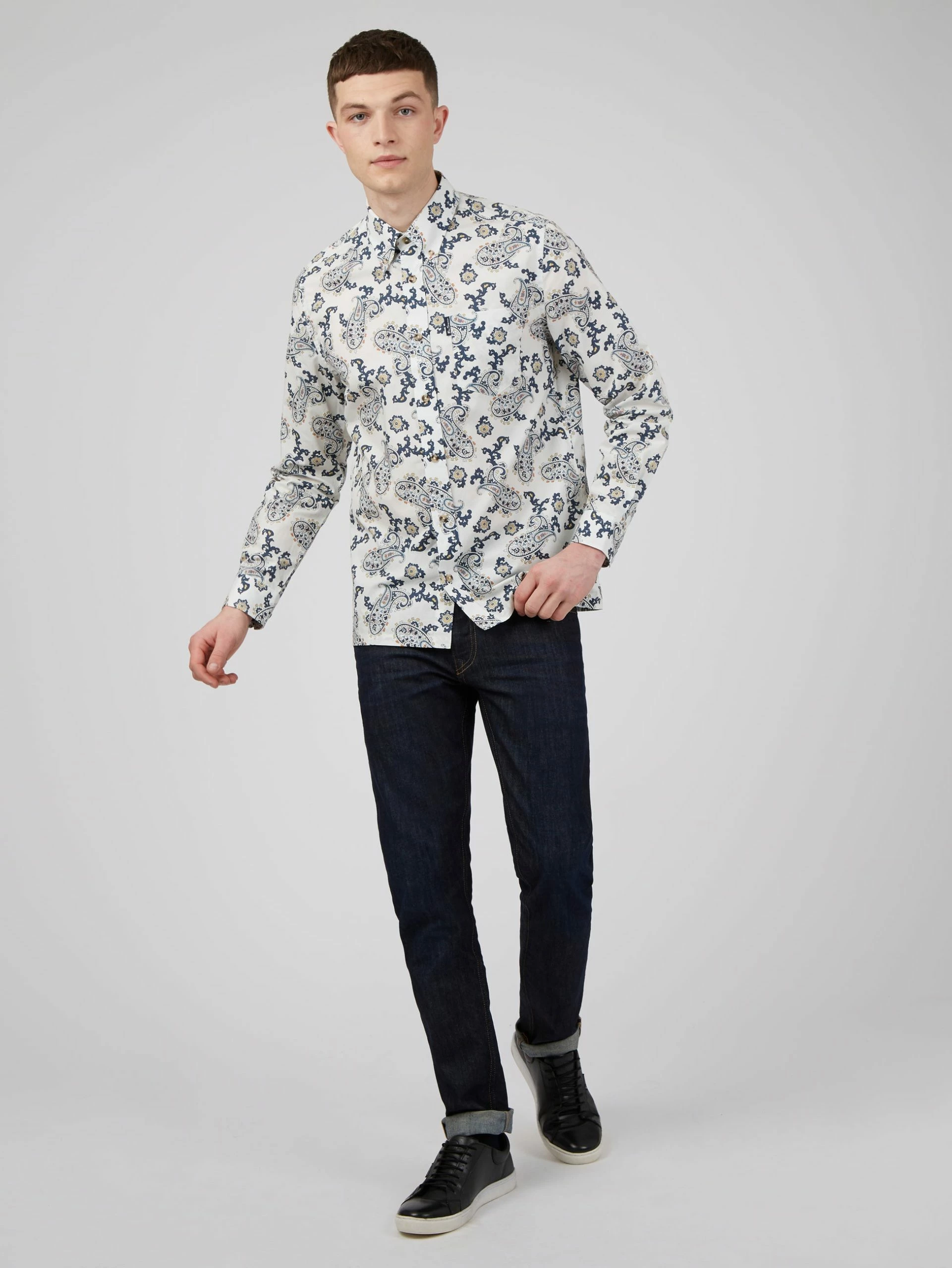 A long sleeve shirt designed in a large paisley print that comes in a regular fit and features a 3 finger button down collar. Complete with a patch pocket at the chest and branded with the Ben Sherman woven pocket tab. Made from 100% cotton.