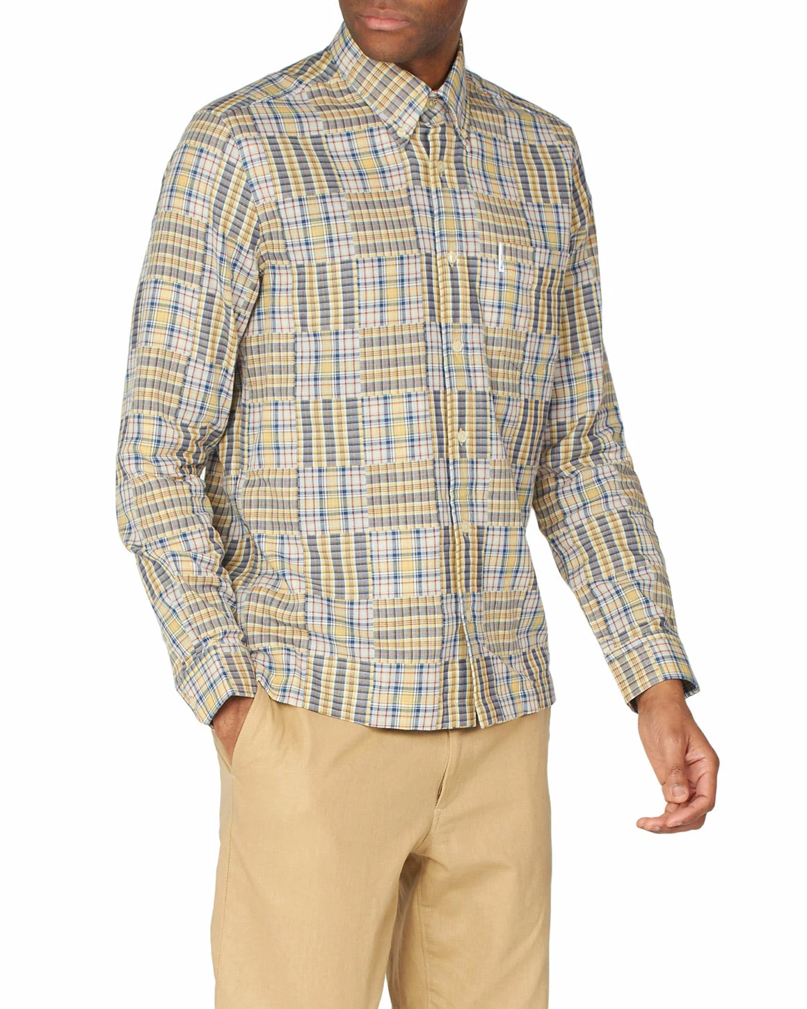 From the Archive collection, this contemporary patchwork check shirt comes in a regular fit and features long sleeves and the iconic two-finger button-down collar.