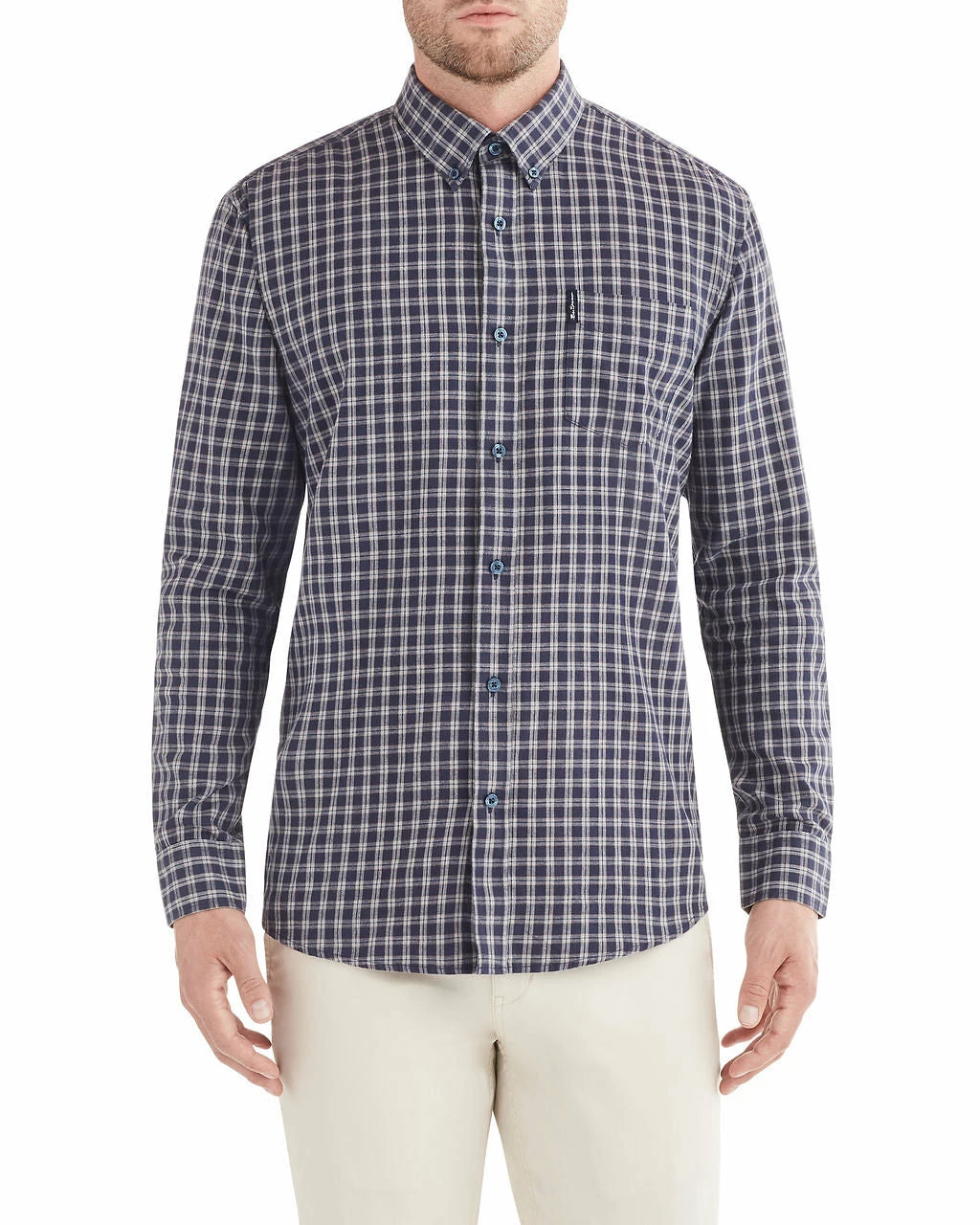 This long-sleeved shirt features a brushed, mini-check print for a classic look with denim or trousers. Wear with sleeves rolled up for a laid-back vibe.