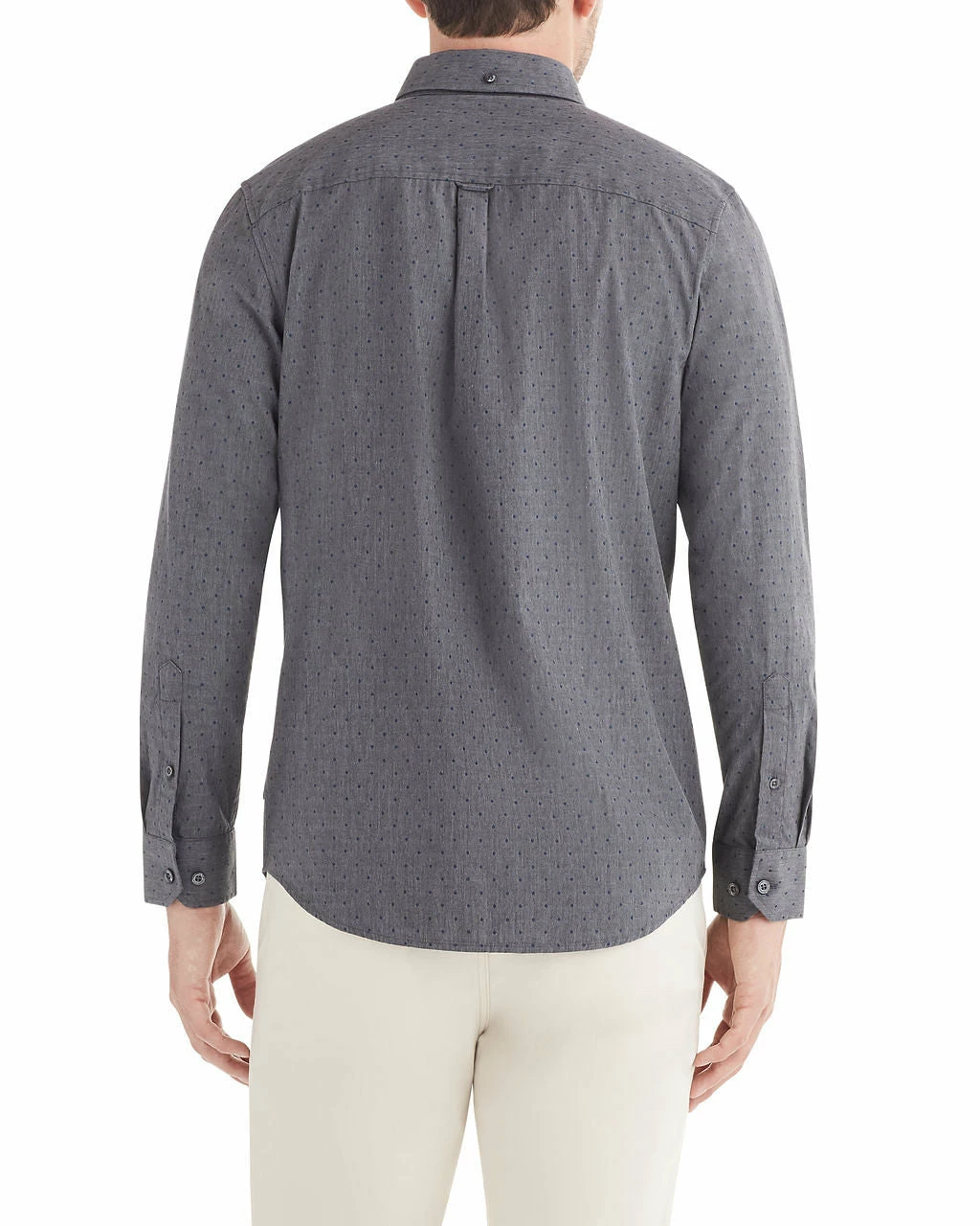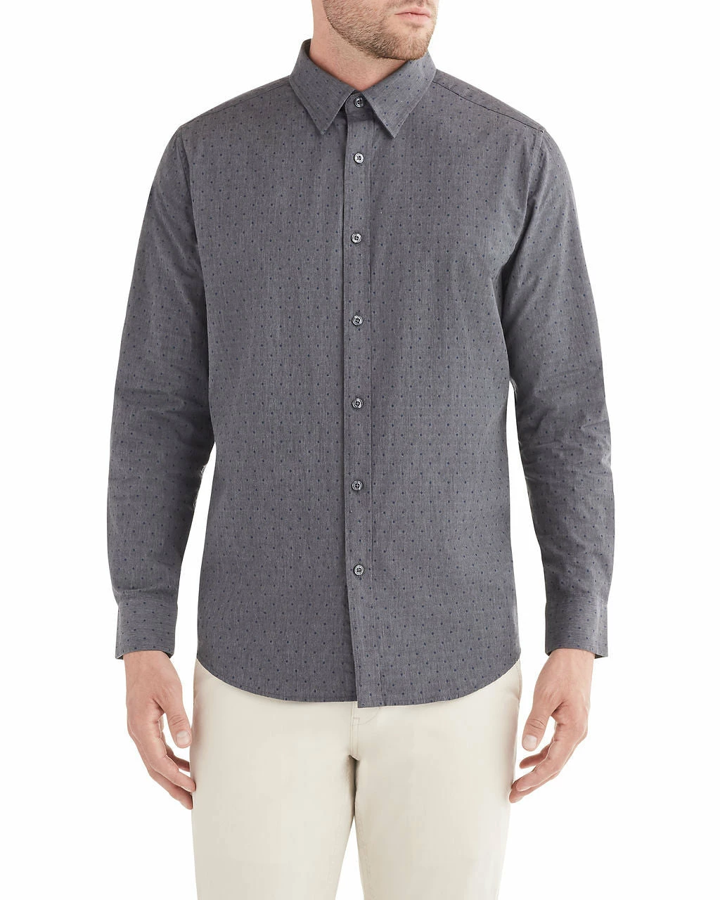 The long-sleeved diamond clip shirt is a sophisticated-yet-casual wardrobe staple. Fine diamond print adds to an otherwise simple background.