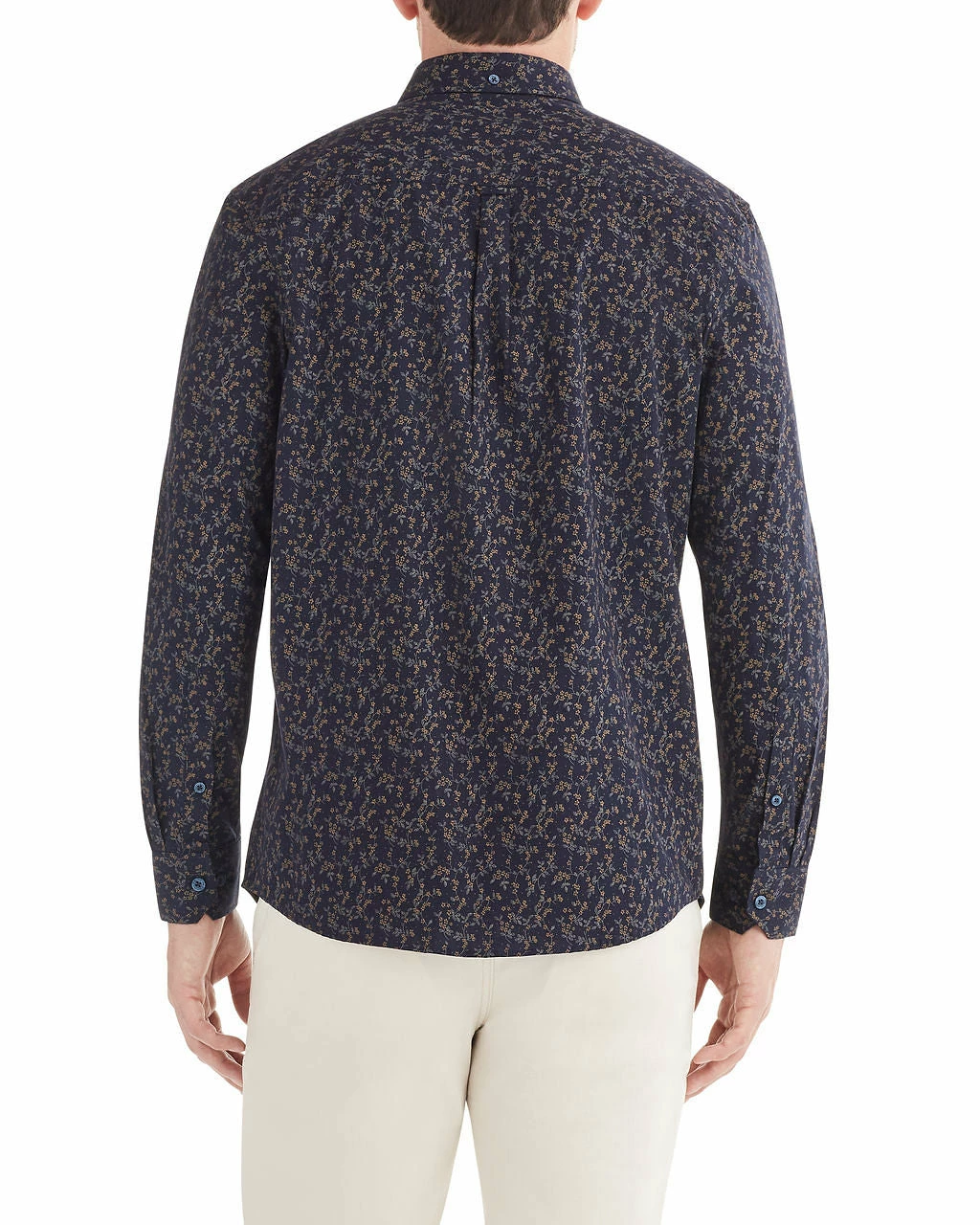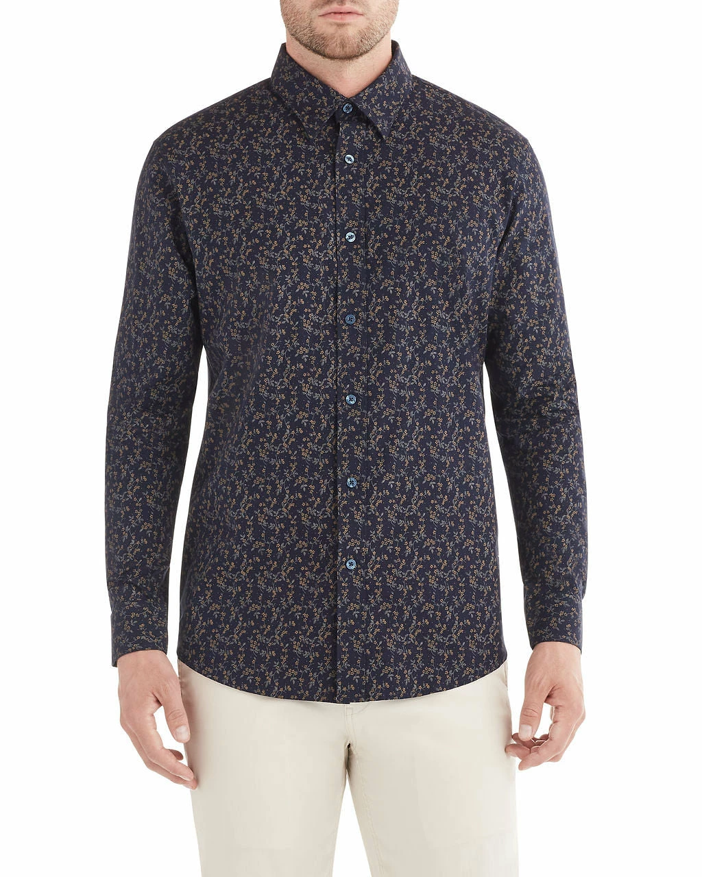 This long-sleeved shirt features a unique floral and dot print. Pair it with light-colored jeans or chinos for a smart-casual look.