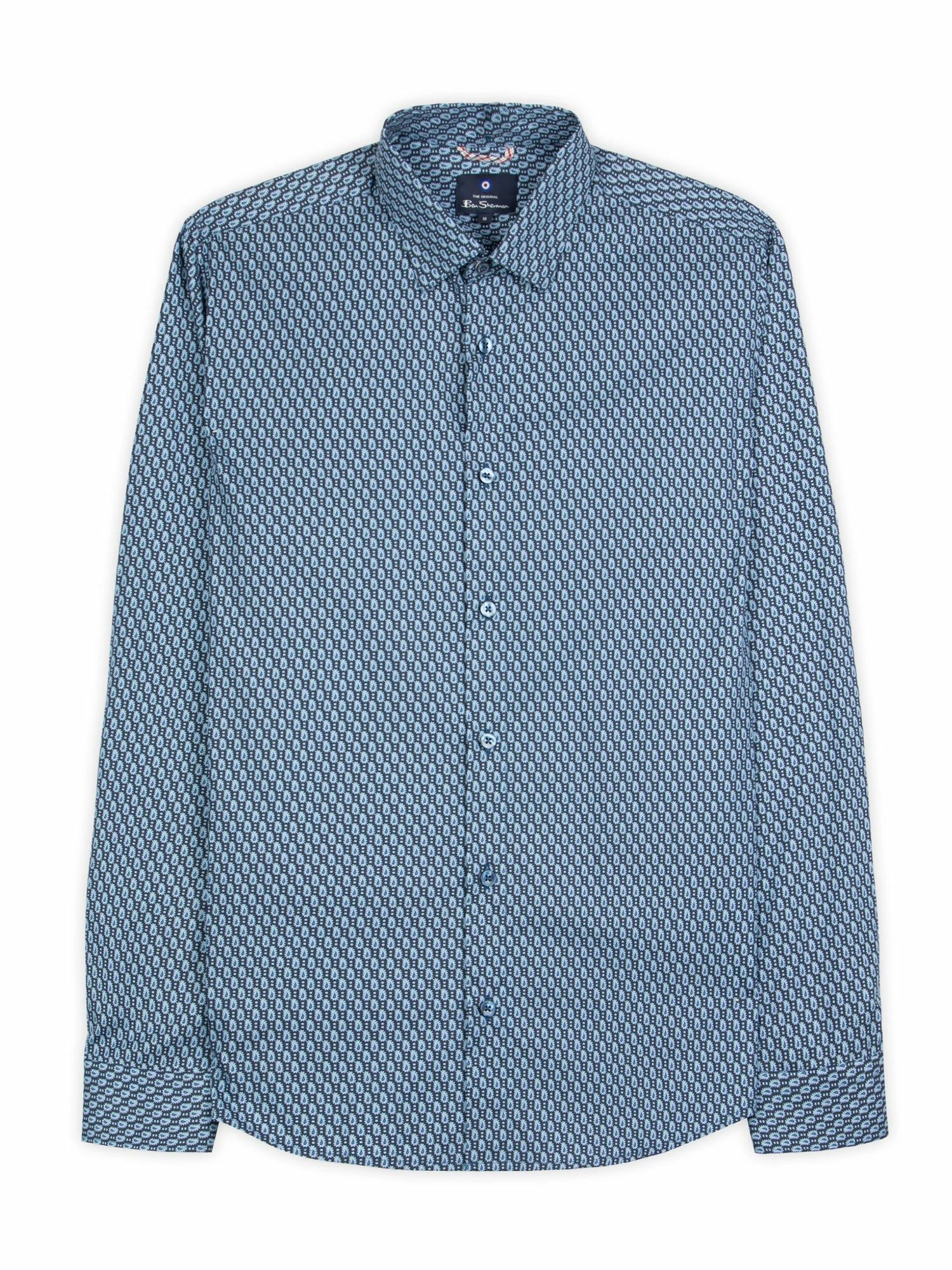This long-sleeve shirt with an all-over fine geo print is styled with a classic point-concealed, button-down collar and Ben Sherman branding.