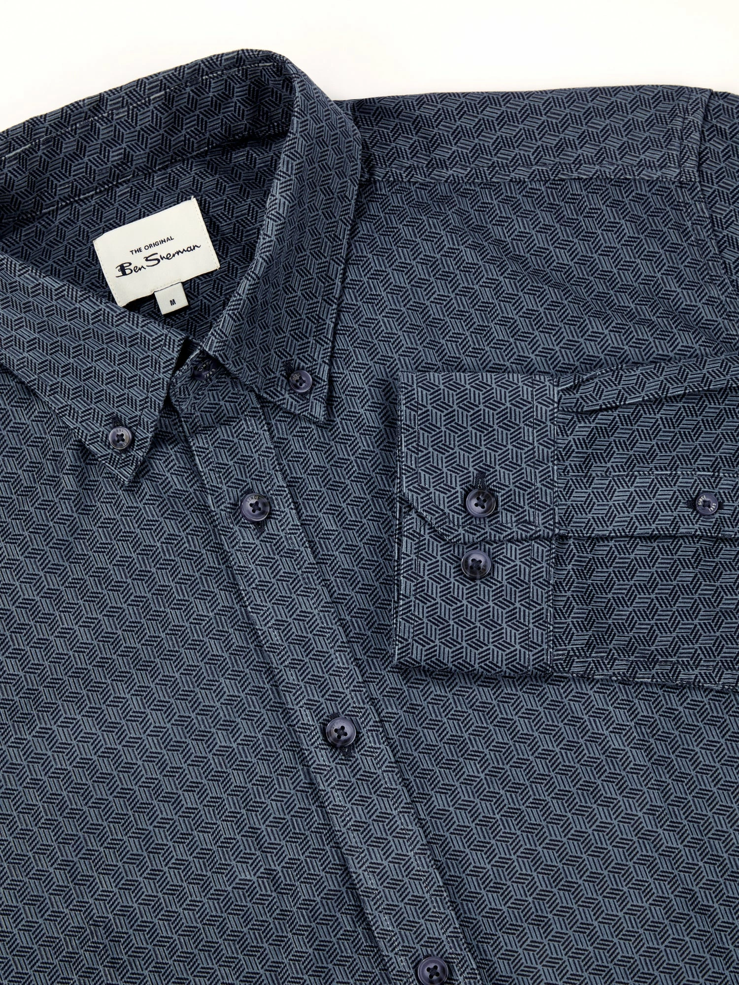 In corduroy, this long-sleeved geo-print shirt has comfortable texture that’s perfect for fall. The juxtaposition of cord with a modern geo print makes this style unique. Pair it with chinos or jeans for a polished look.