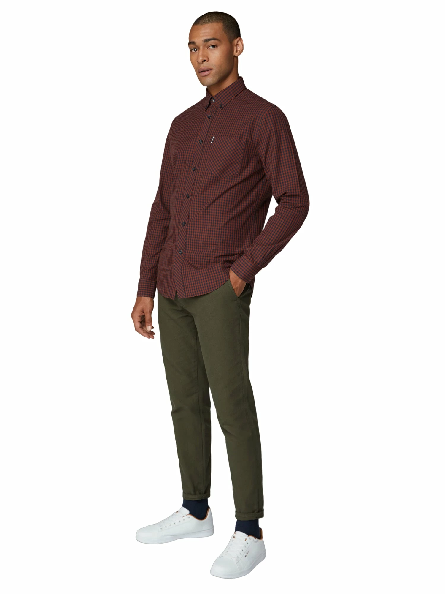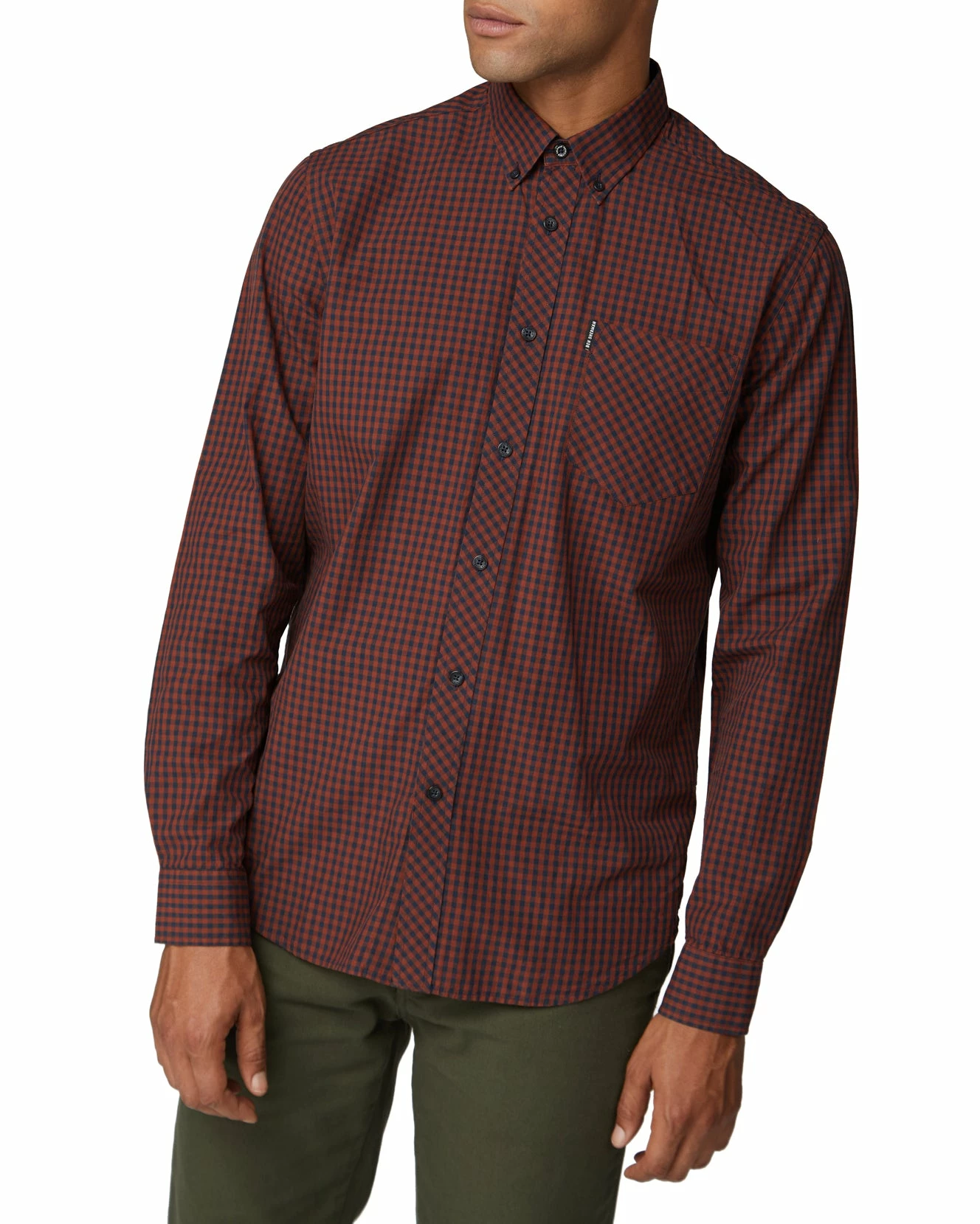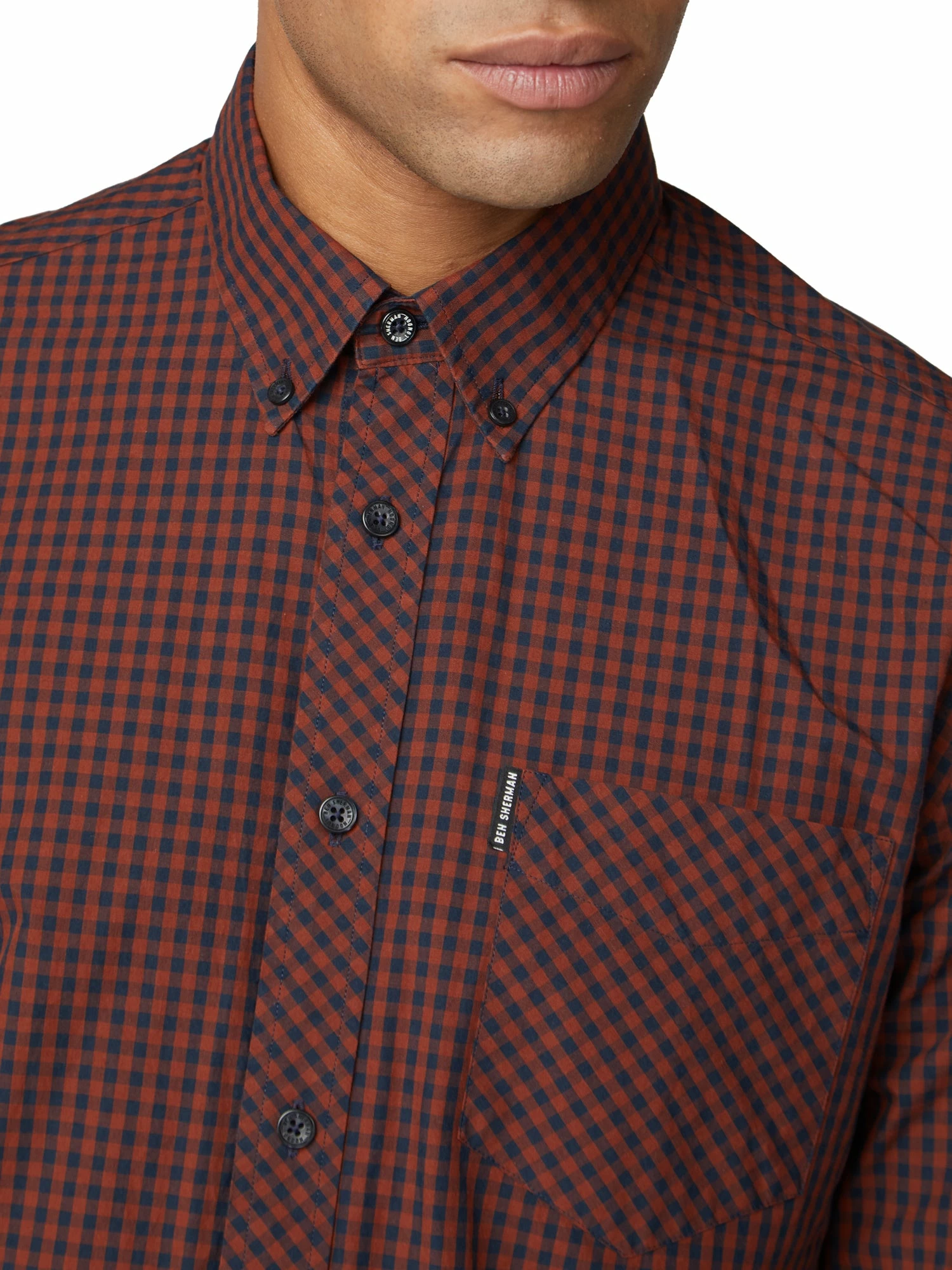 Our long-sleeved gingham shirt is an icon of men’s fashion. In an eye-catching Sherman house gingham, this men’s Oxford shirt is a statement for any wardrobe. With a regular mod fit in premium cotton, the legendary shirt features iconic branding, a two finger button-down collar, locker loop and a back box pleat, with a generous spade chest pocket.