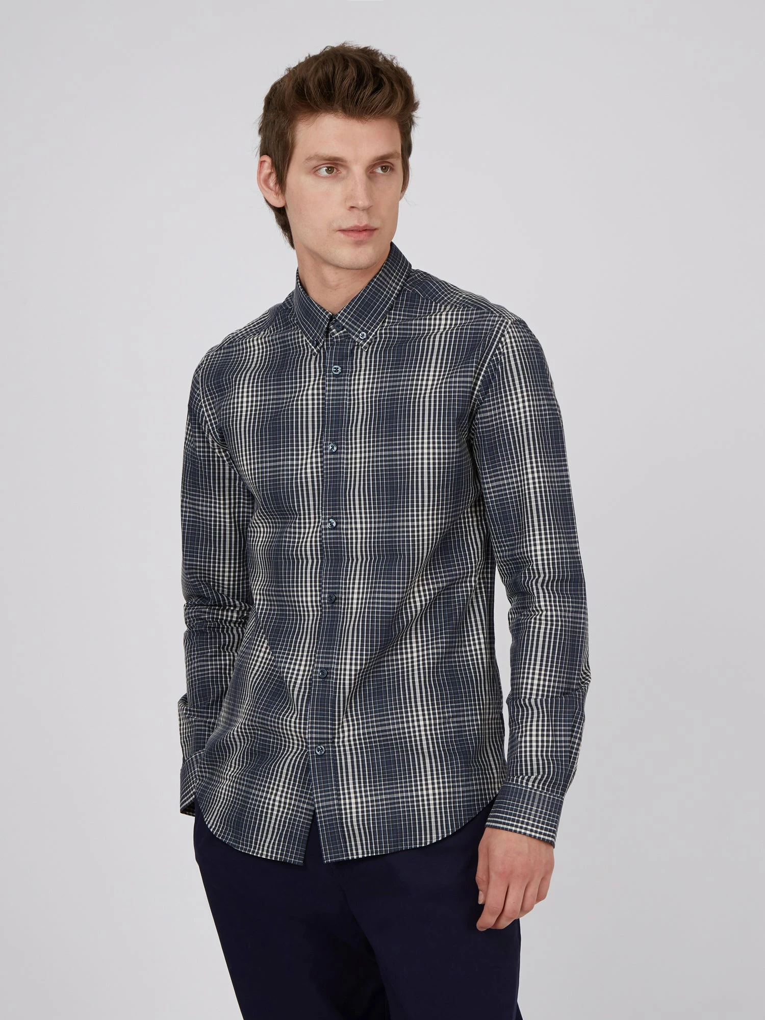 This gradient check long-sleeve shirt comes in a regular fit and features the classic two-finger button-down collar.