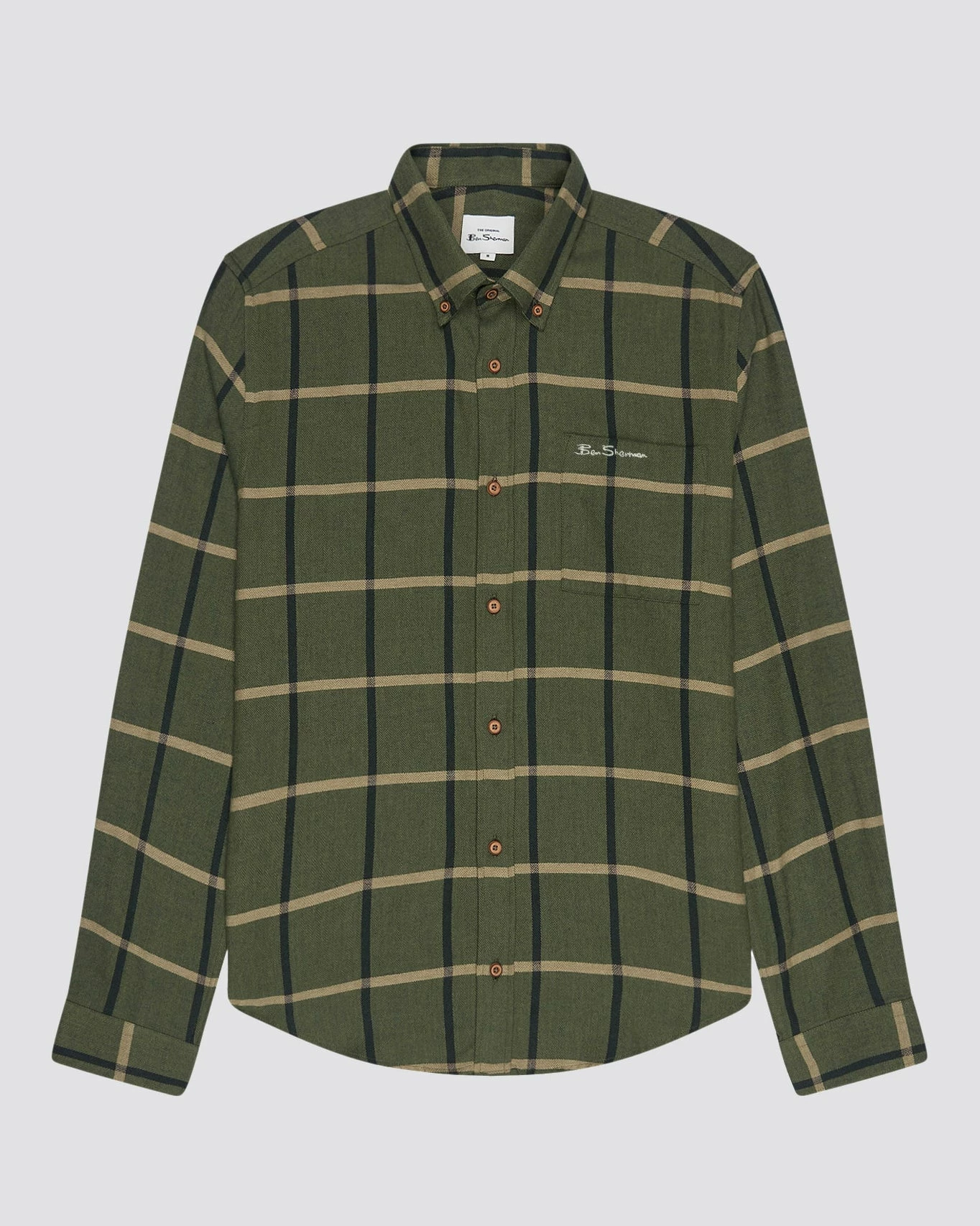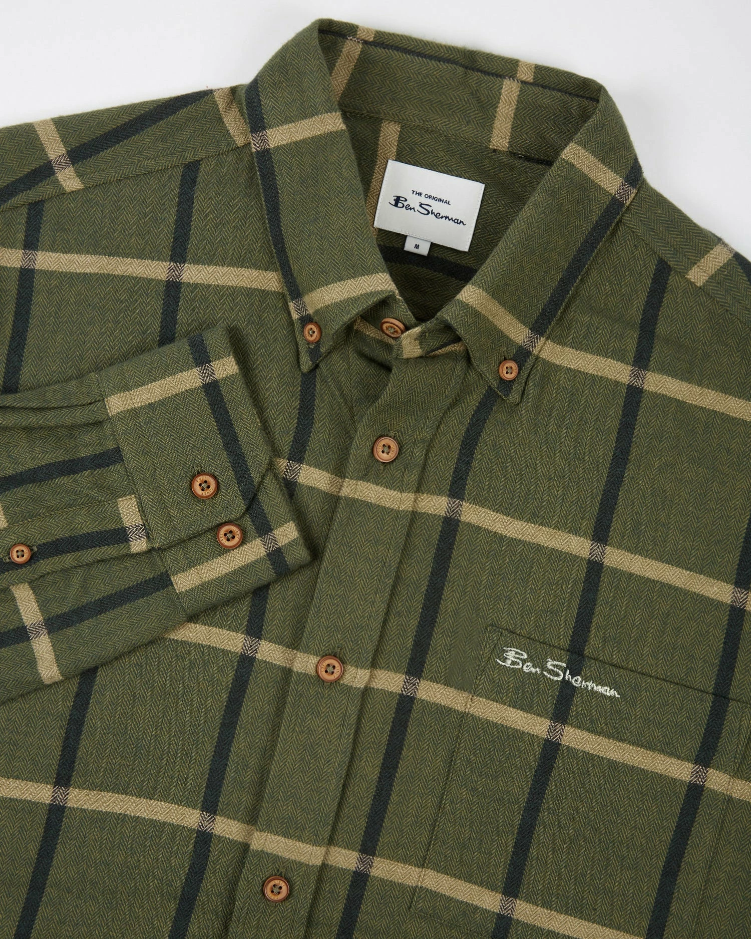 A new addition to our fall clothing collection, this button-down oversized shirt comes in a heathered-navy check-print and offers a regular fit. With a chest pocket and button-down collar, wear over your favorite graphic tee as an overshirt or pair with your favorite classic chinos.