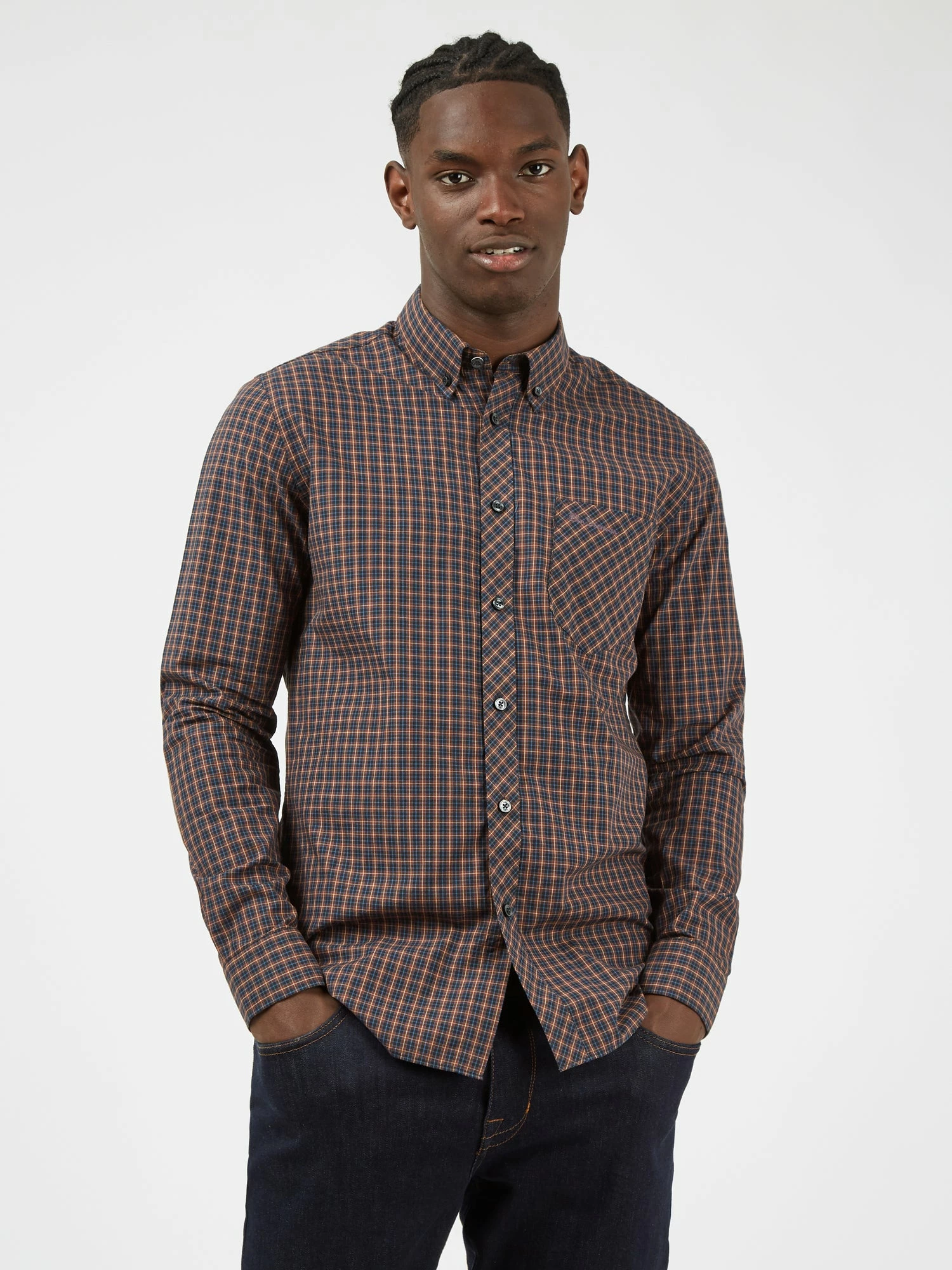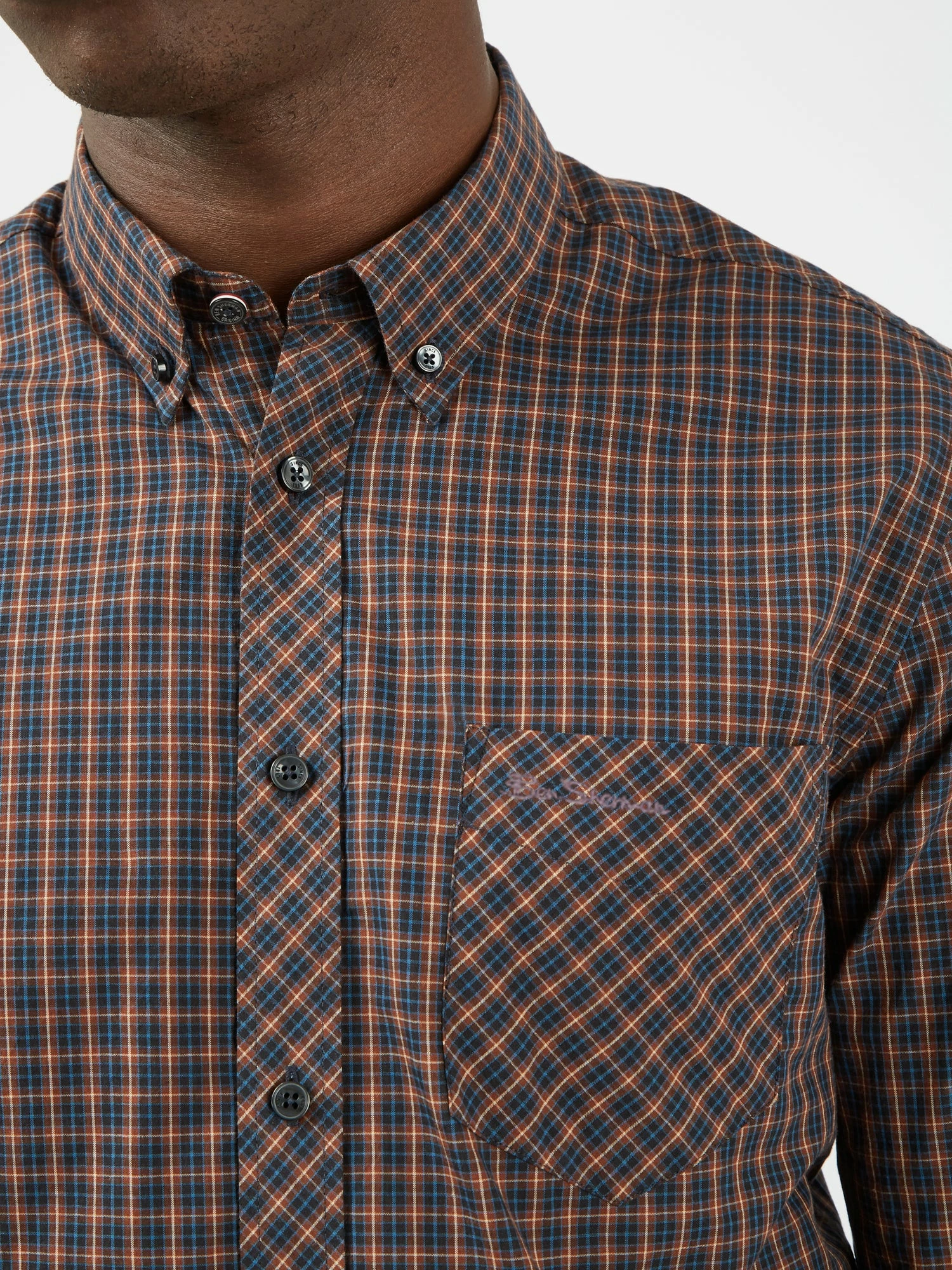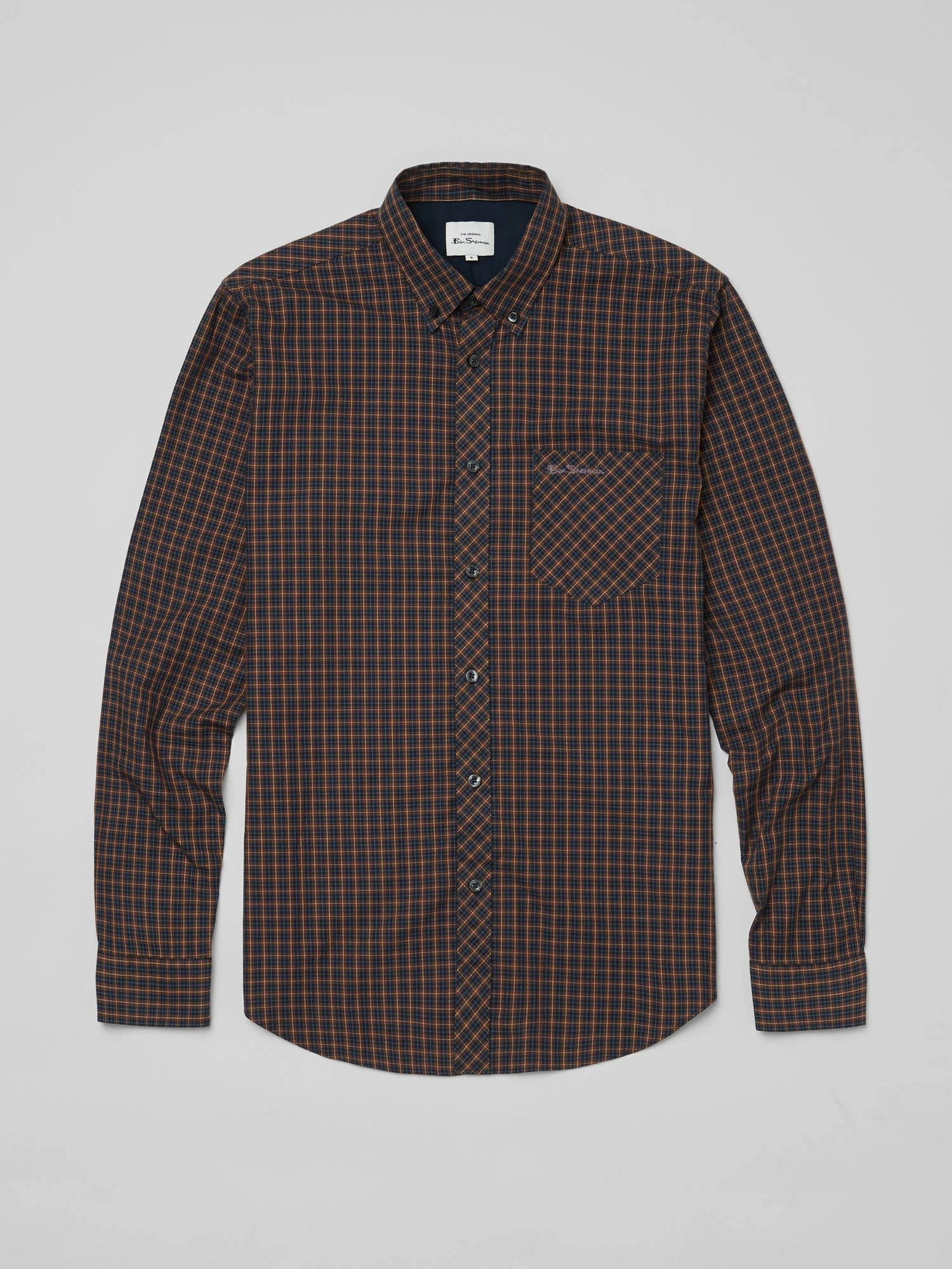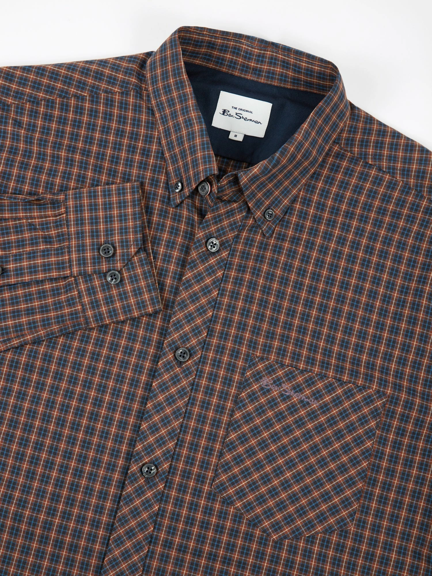 This contemporary mini-check shirt comes in a regular fit with long sleeves and features a two-finger button-down collar. Made from 100% cotton.