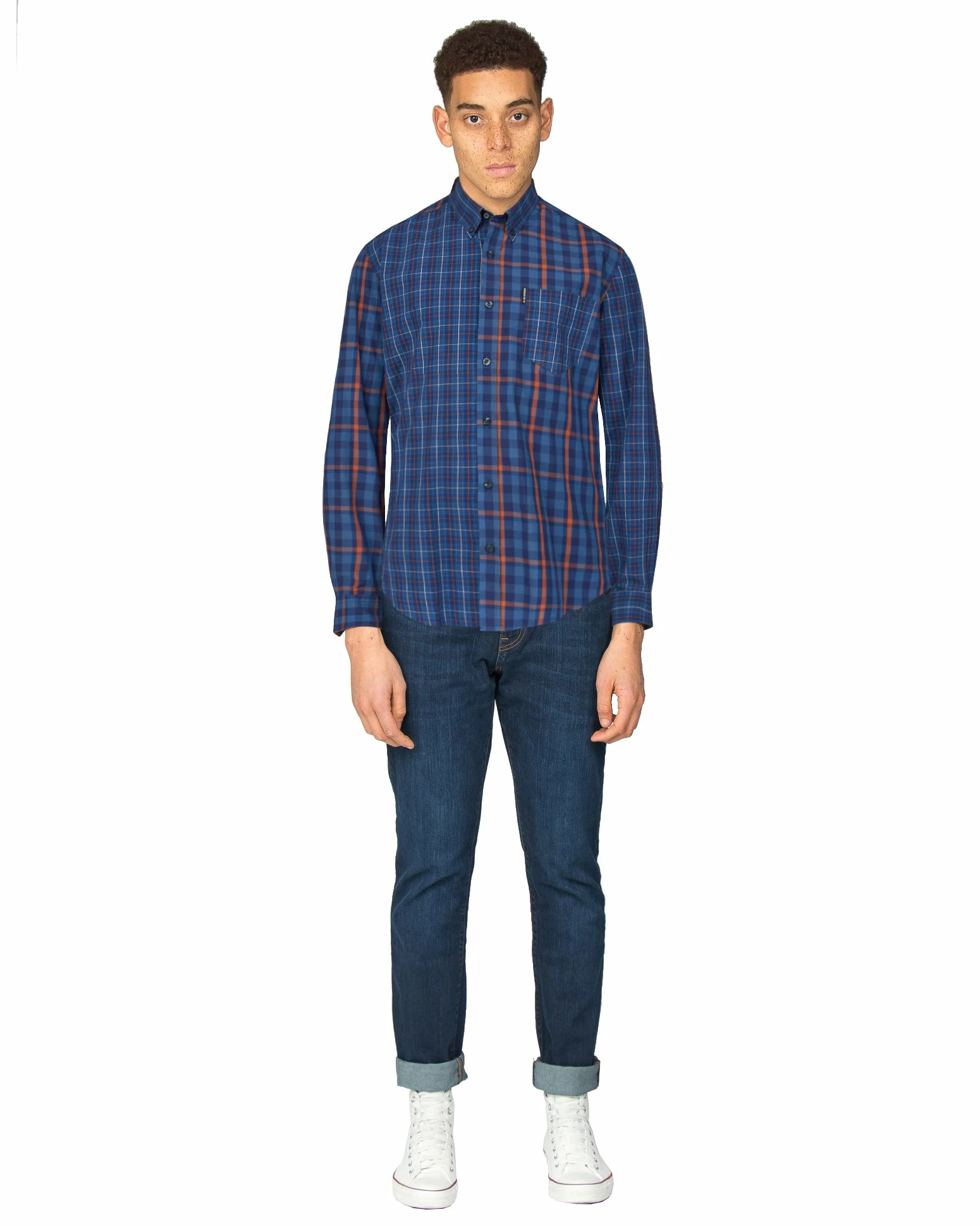 A long-sleeved shirt in a contrast check, this style features classic Ben Sherman features such as a concealed button-down detail collar and a tab-branded front chest pocket. Our regular mod fit style is finished with a back box pleat for comfort.