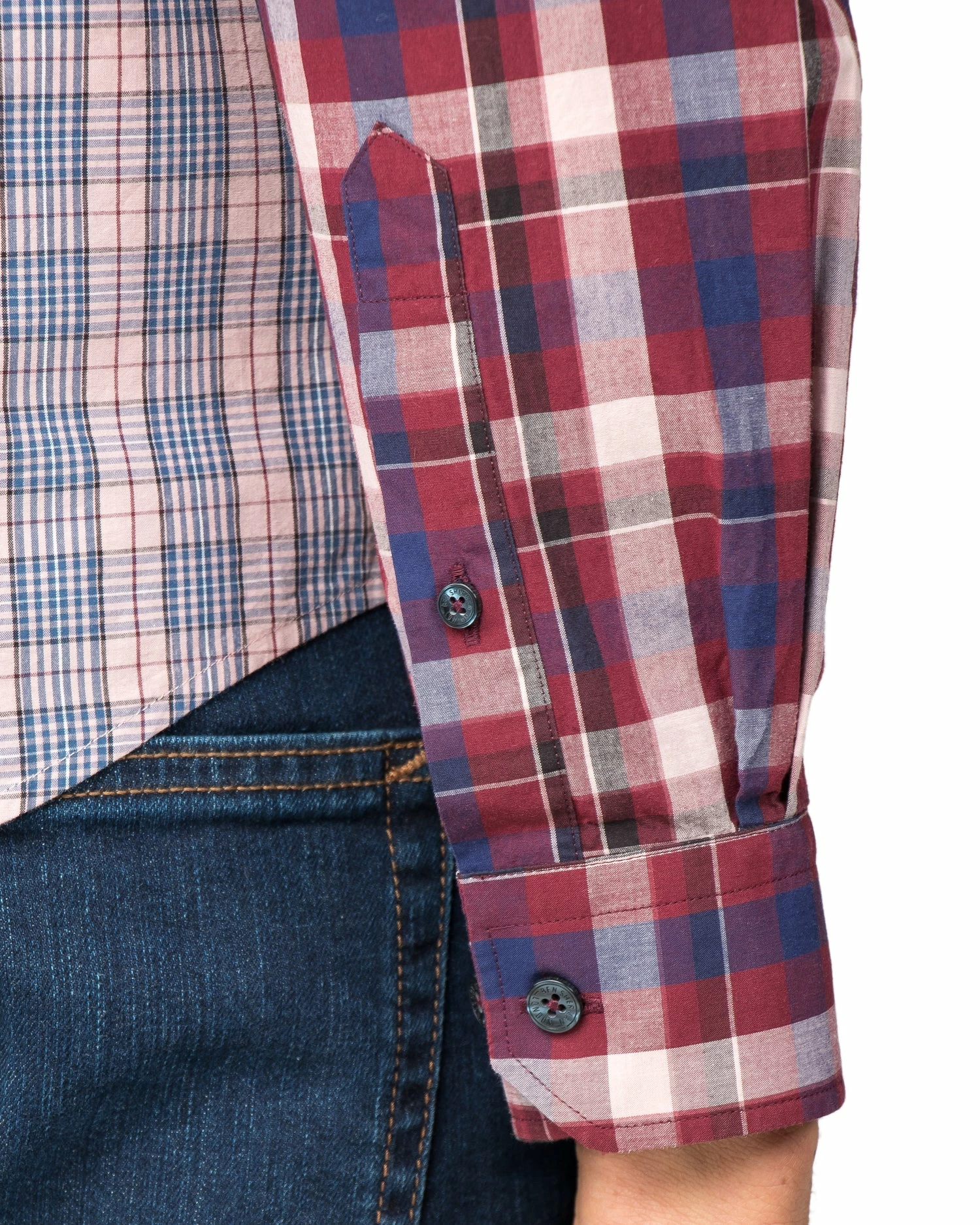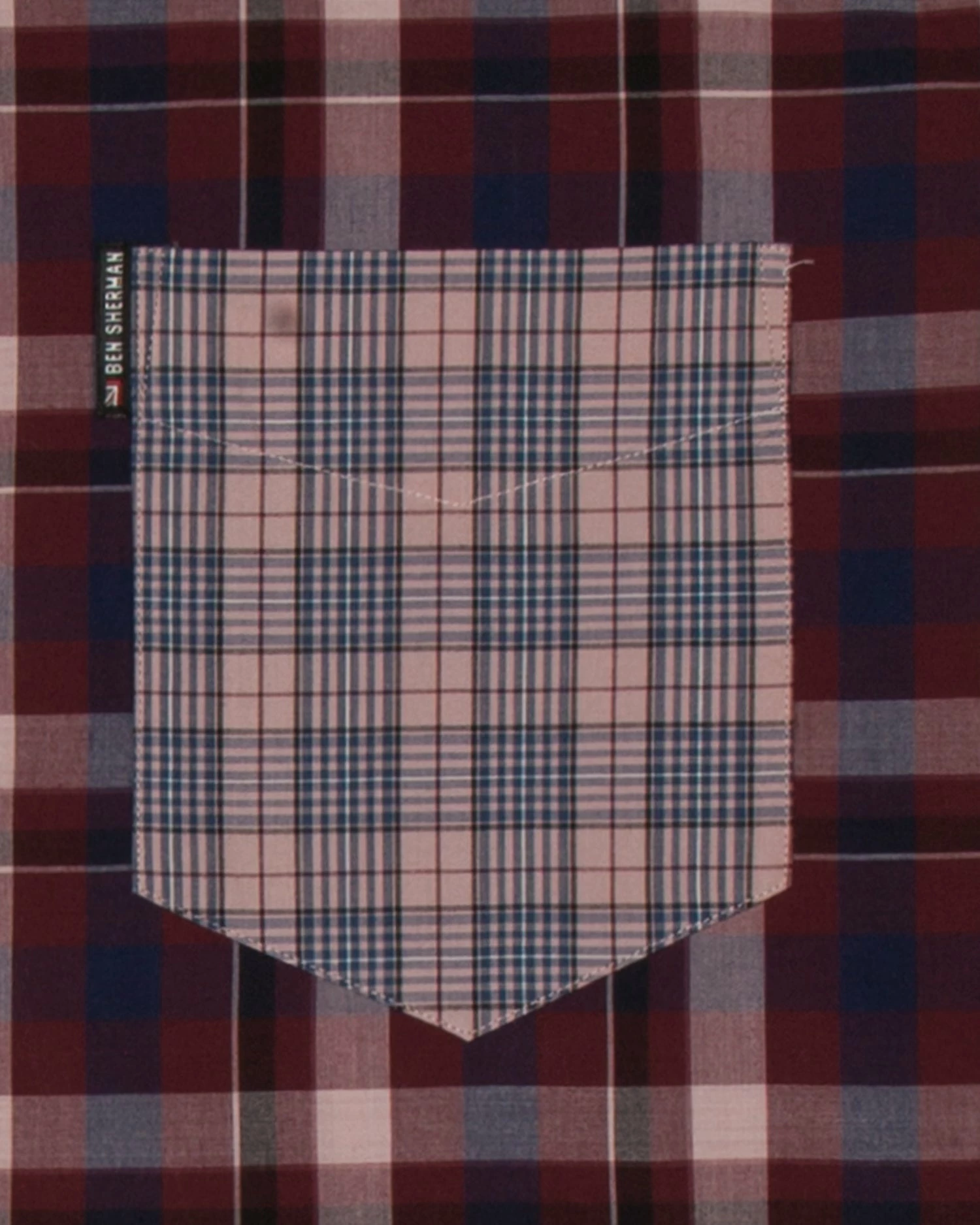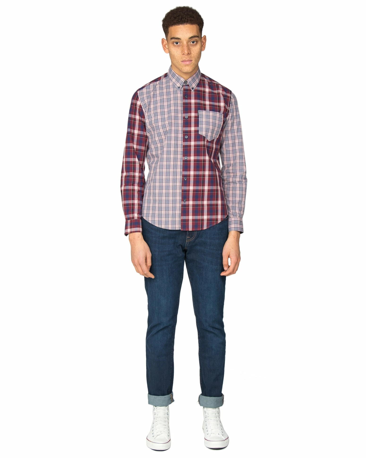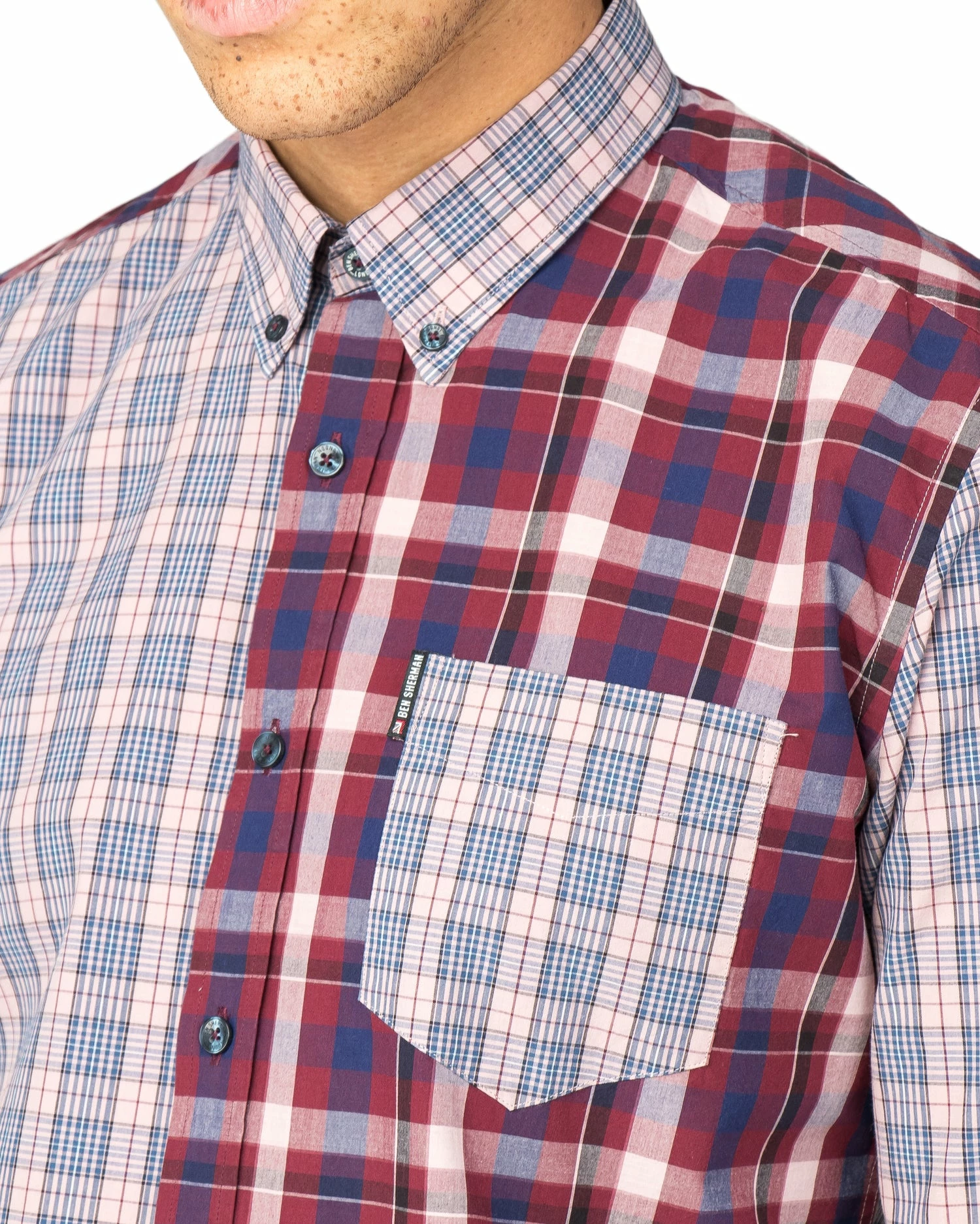 A long-sleeved shirt in a contrast check, this style features classic Ben Sherman features such as a concealed button-down detail collar and a tab-branded front chest pocket. Our regular mod fit style is finished with a back box pleat for comfort.