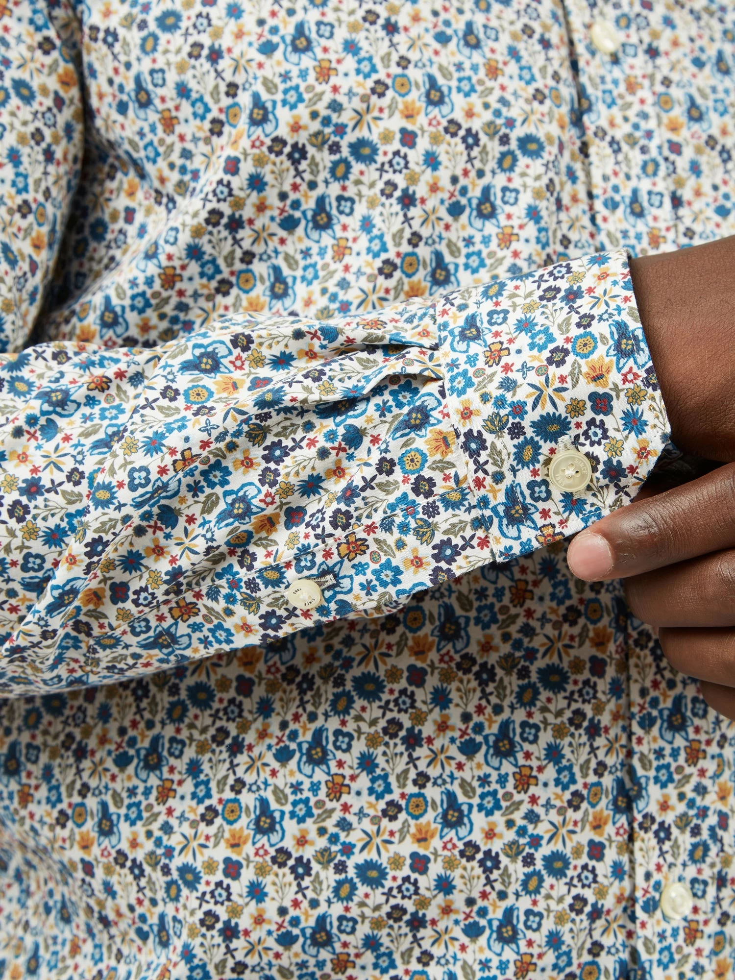 This long-sleeved shirt features a unique floral print. Pair it with light-colored jeans or chinos for a smart-casual look.