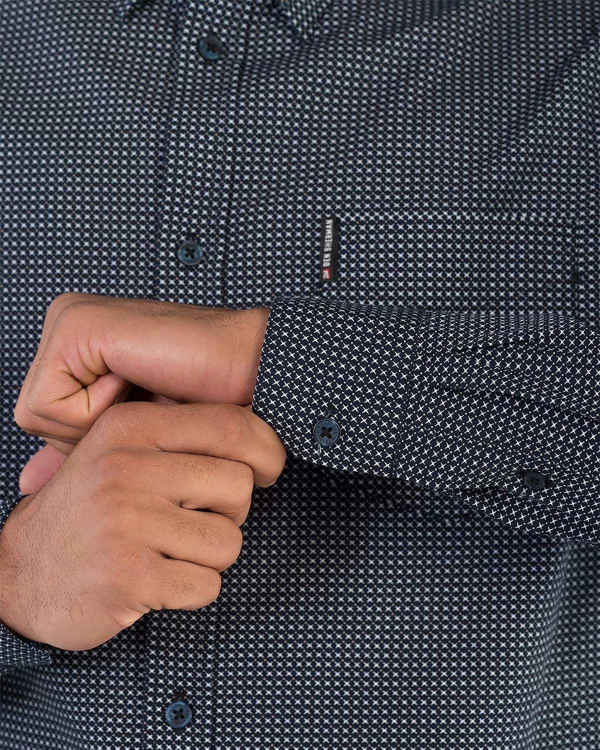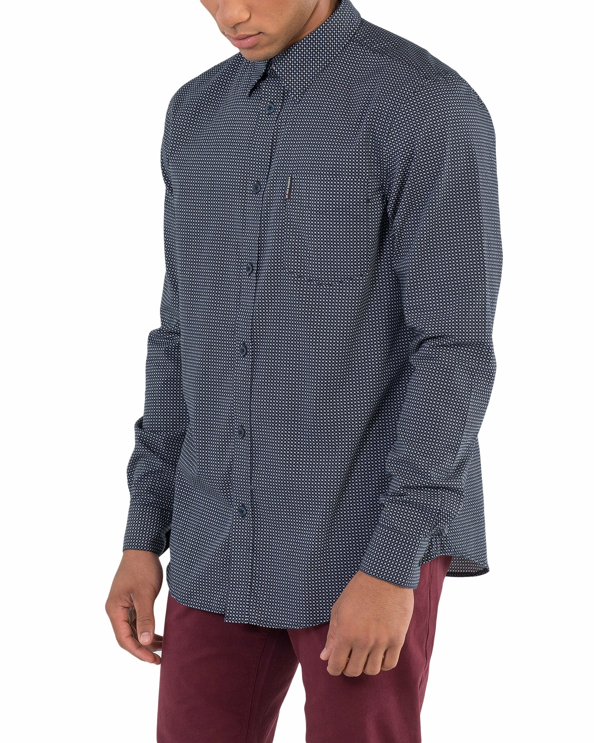 The sketch geo micro-print is a Ben Sherman take on the seasonal geo pattern. WIth a spade pocket and mitered cuffs, this long-sleeve shirt is guaranteed to be a standout. Mod fit.