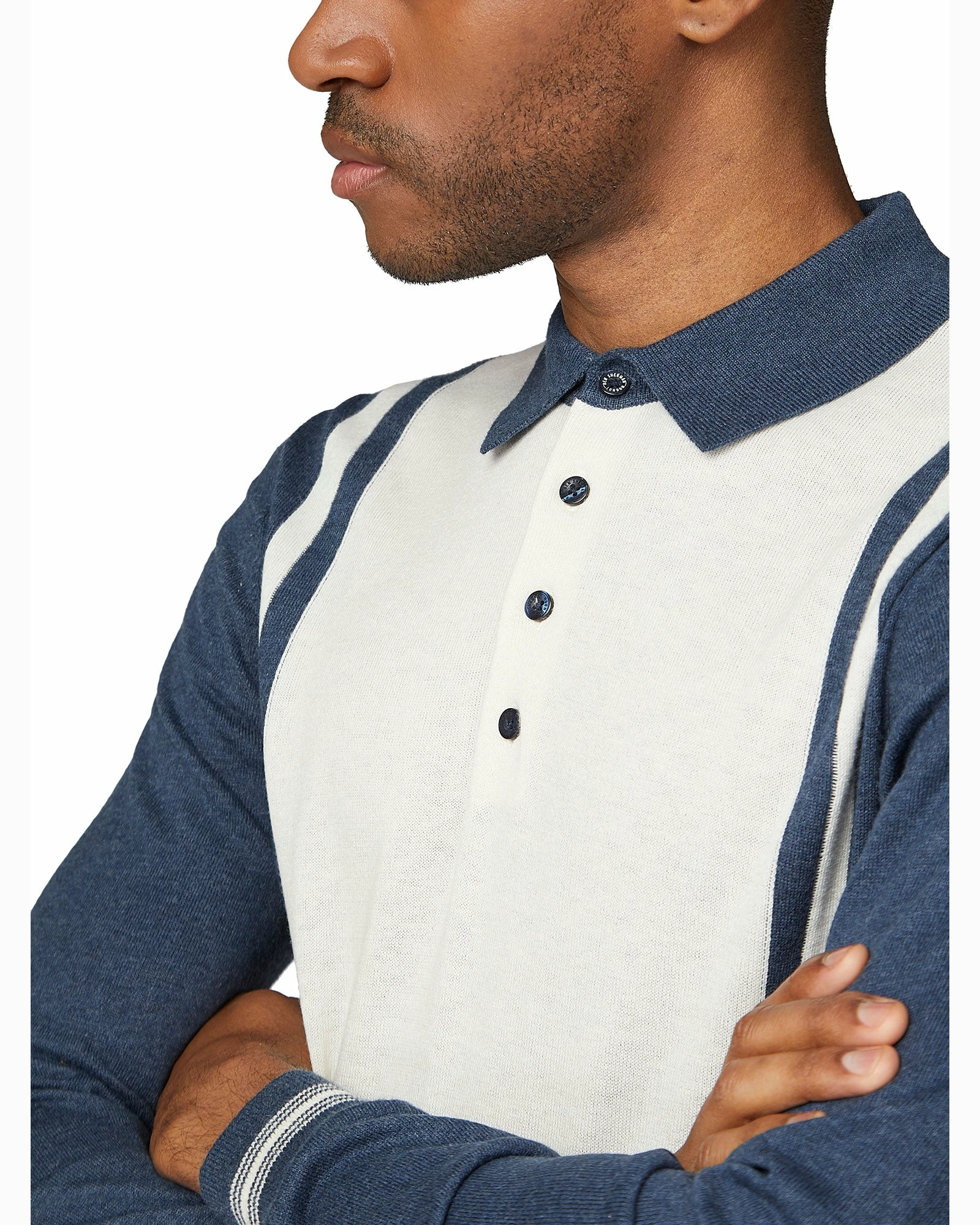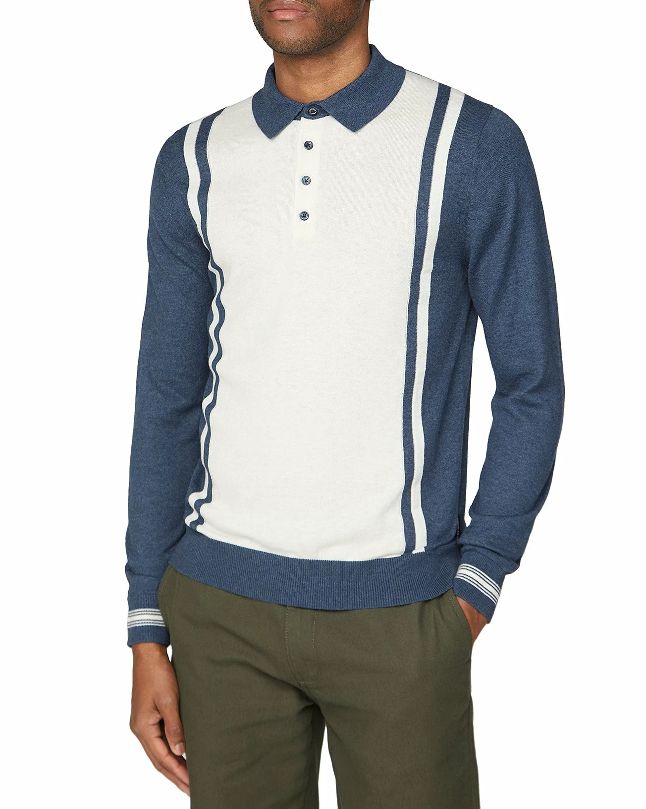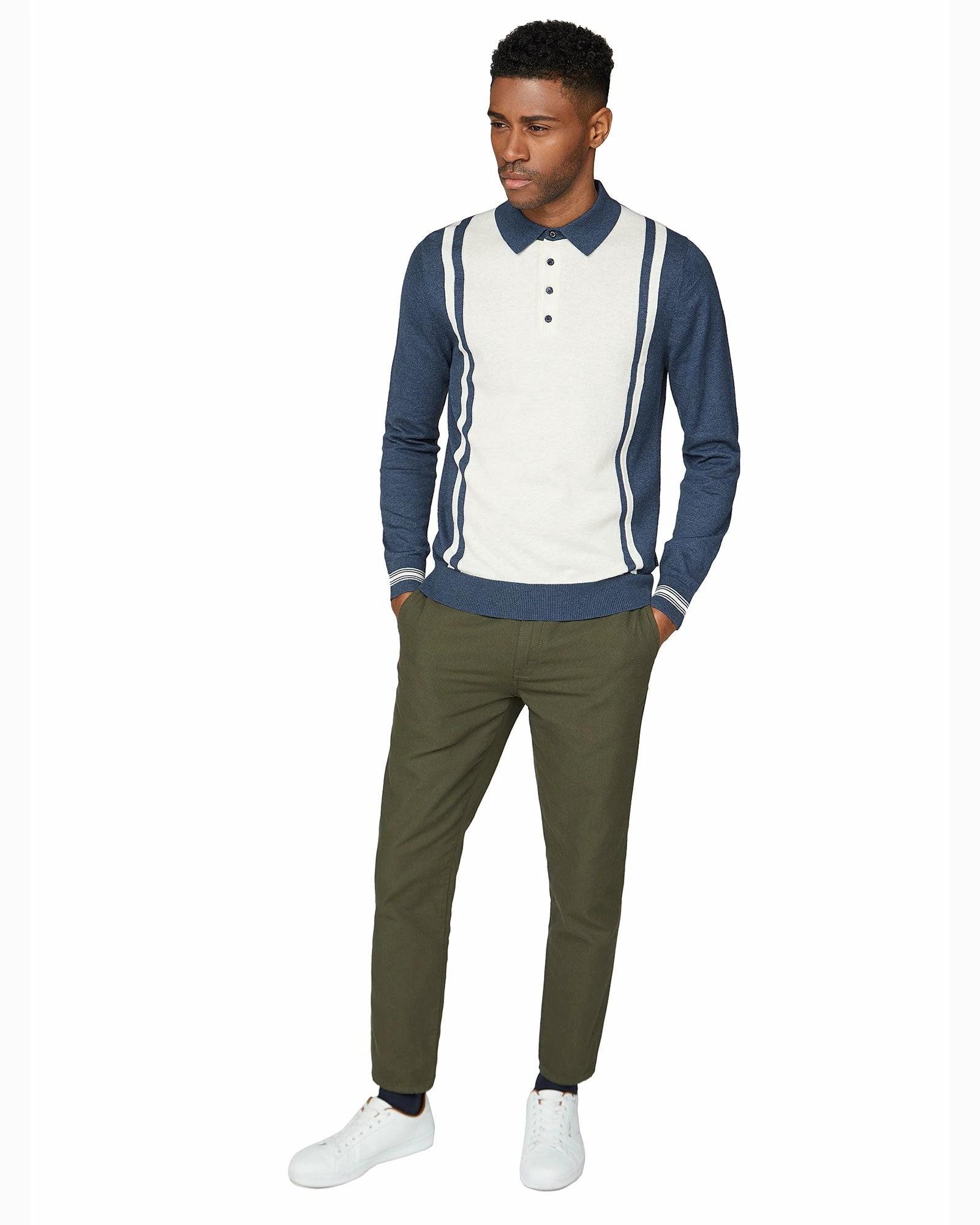 With retro-inspired design and modern styling, this long-sleeve knitted polo is a wardrobe must-have. The style stands out with an engineered vertical stripe design.