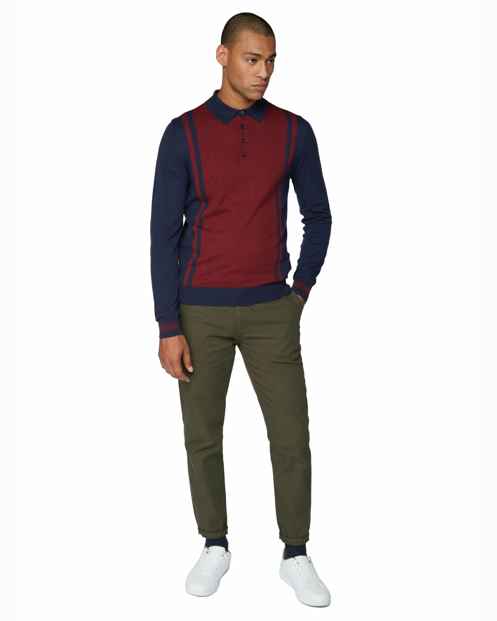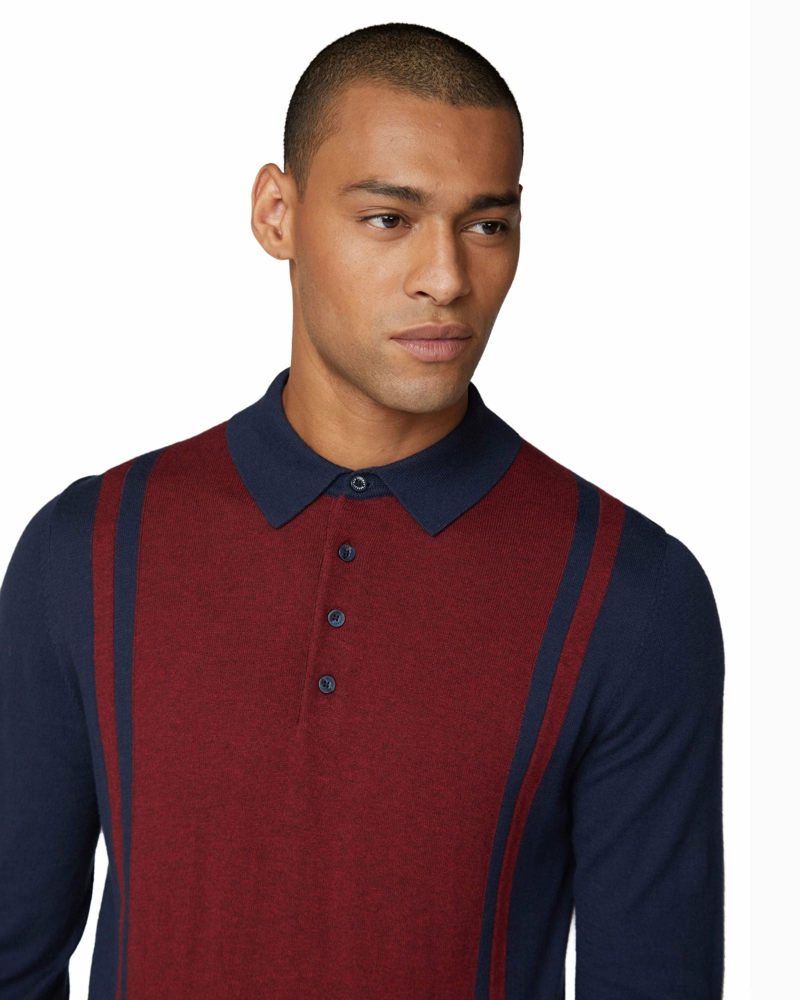 With retro-inspired design and modern styling, this long-sleeve knitted polo is a wardrobe must-have. The style stands out with an engineered vertical stripe design.