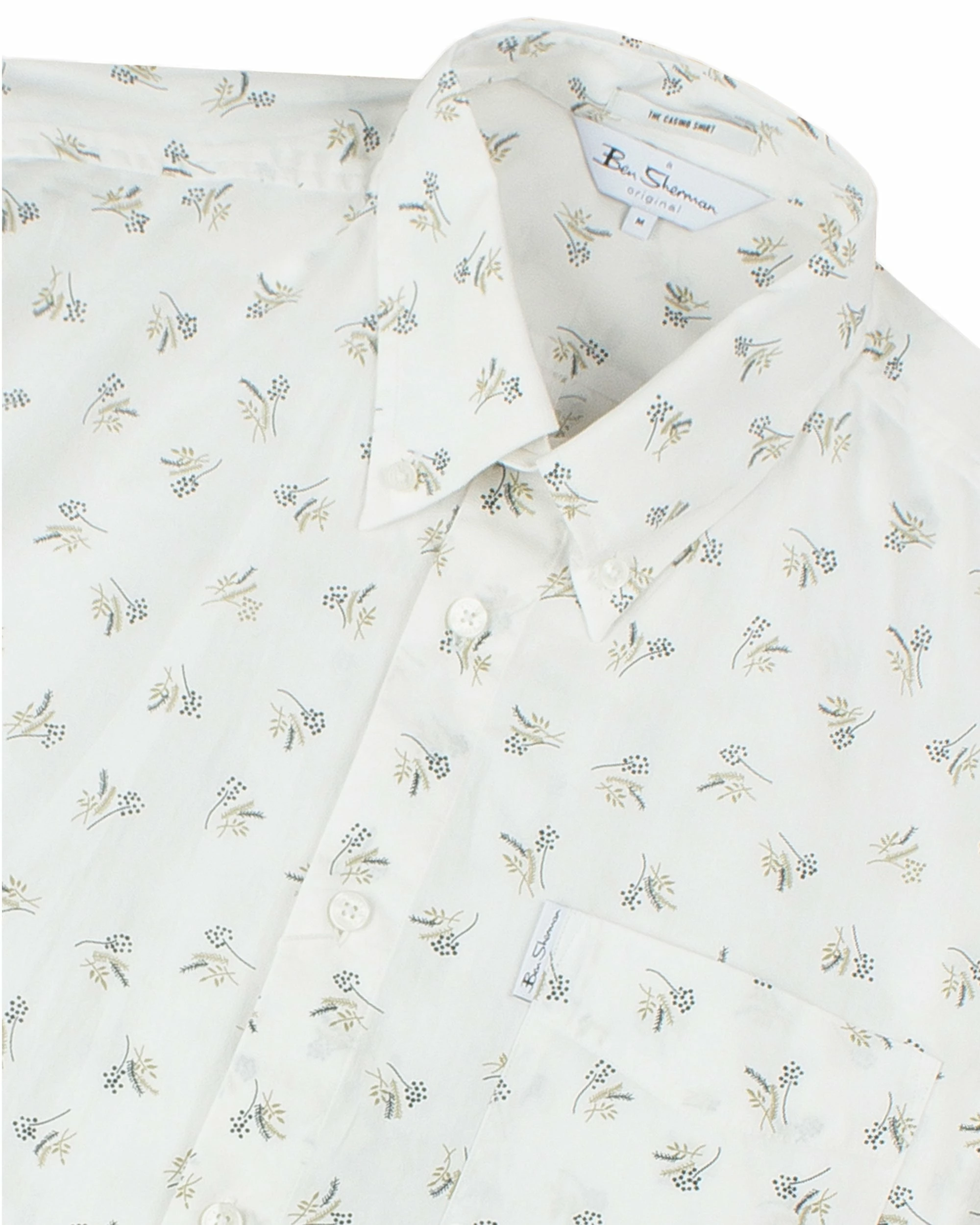 Inspired by our unique heritage, we open up our original shirt archives to showcase Ben Sherman originals taking you back to where it all started. A floral print adds interest to a classic shirt style. Three finger button down collar and tab branded spade pocket and mod fit details all add to the traditional style. Features include a three finger button down collar and a tab branded classic spade pocket. This shirt is a timeless classic that will never go out of style.
