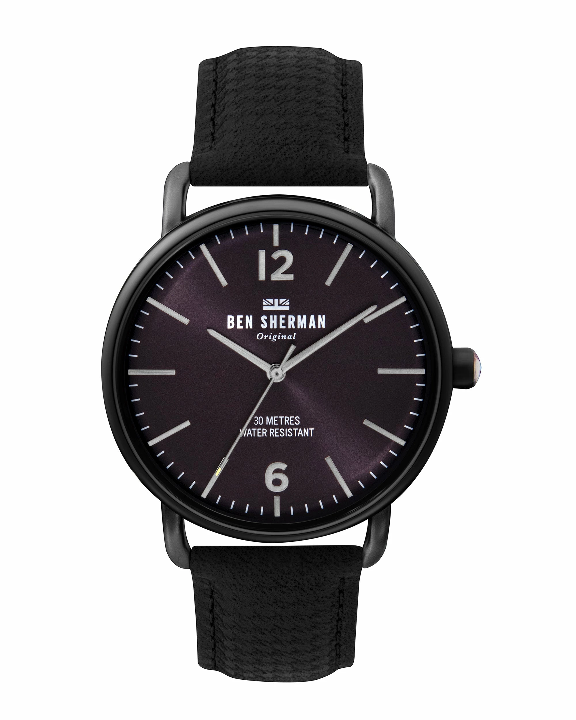 Our Brighton Dogtooth men’s watch is a sleek and stylish watch with a black sunray dial and black case. The hoodstooth-patterned black leather strap makes a subtle statement.